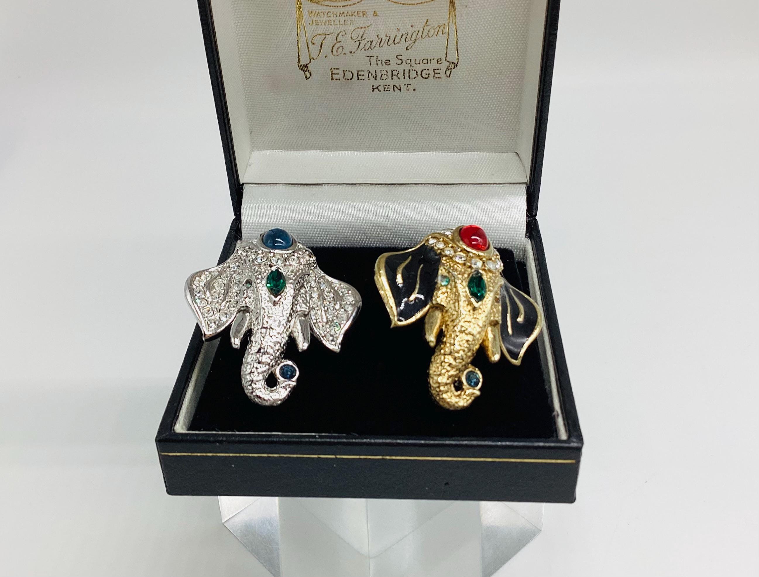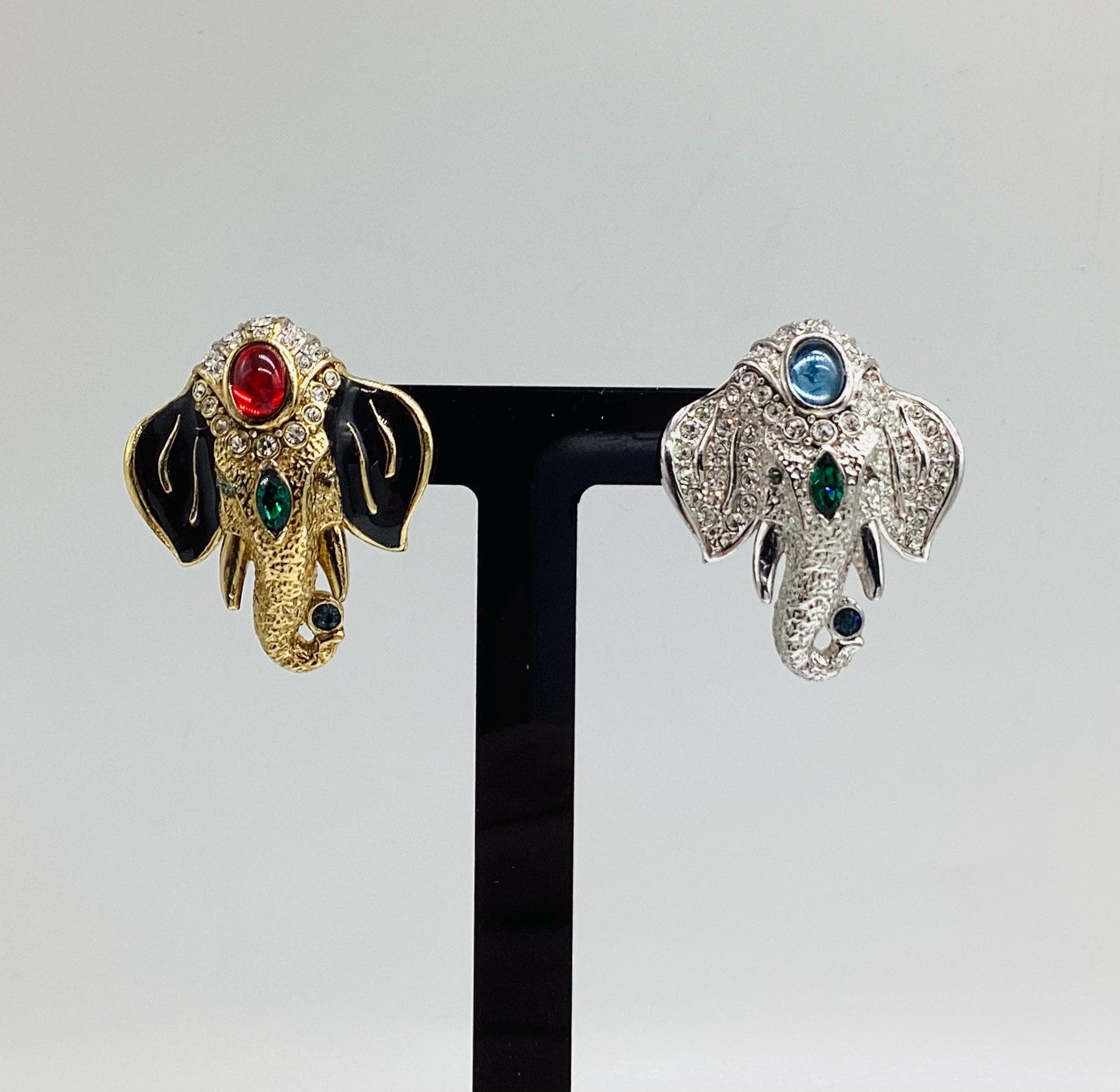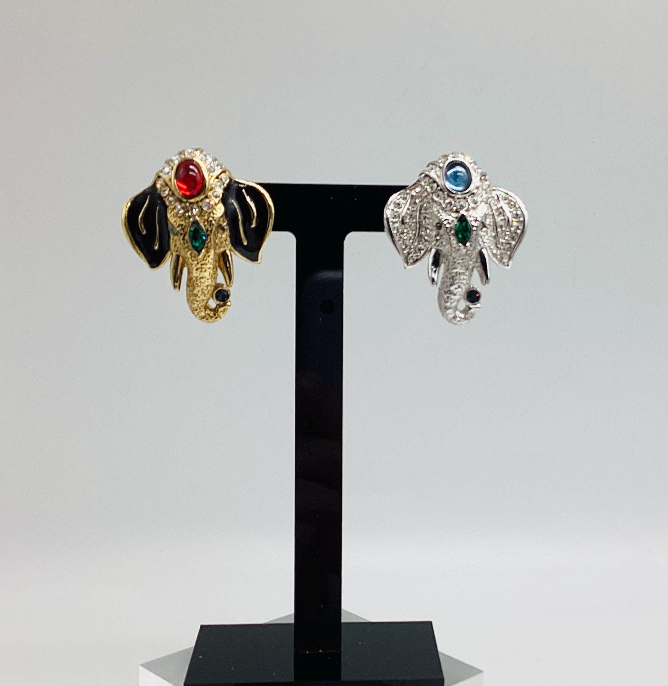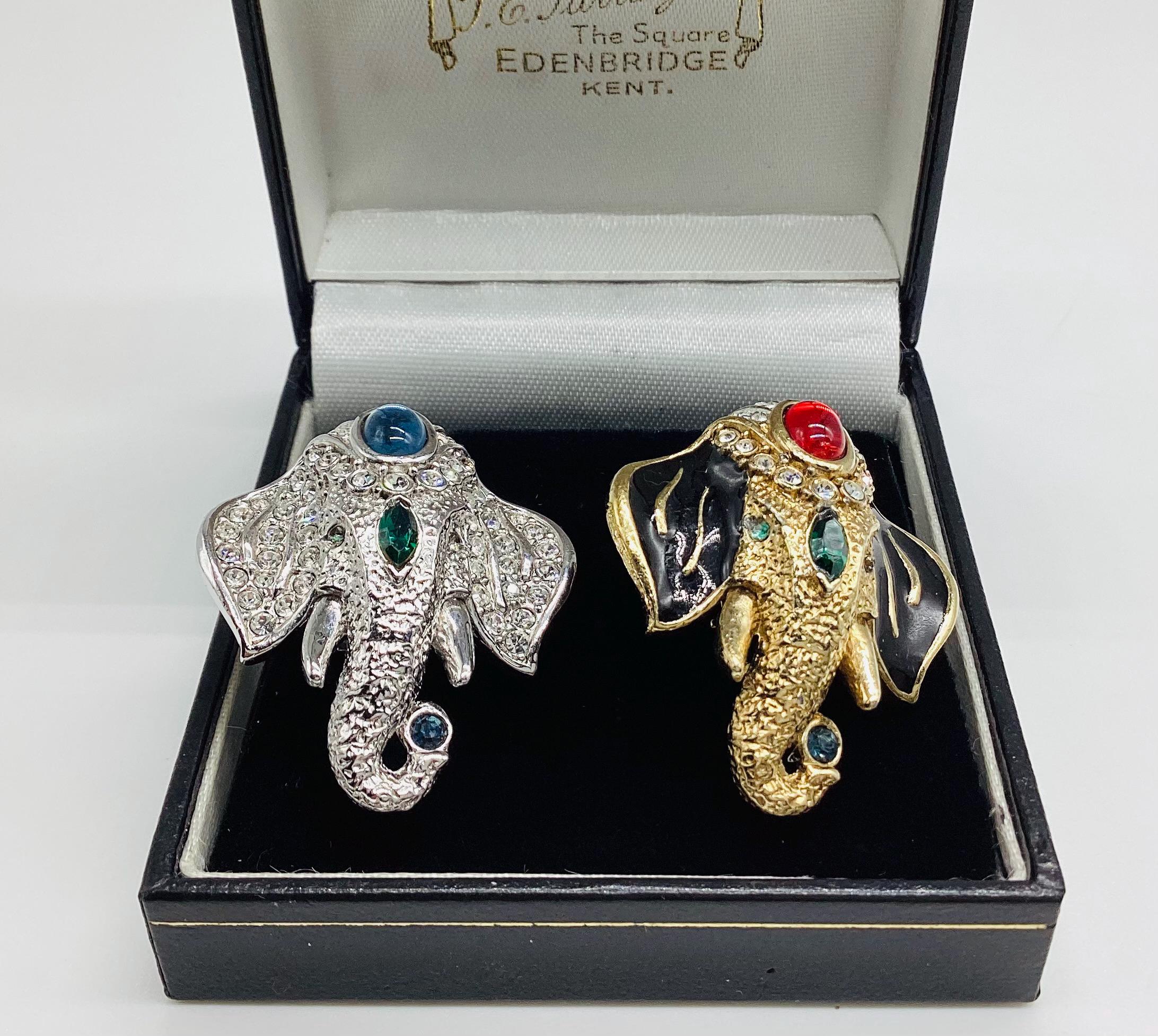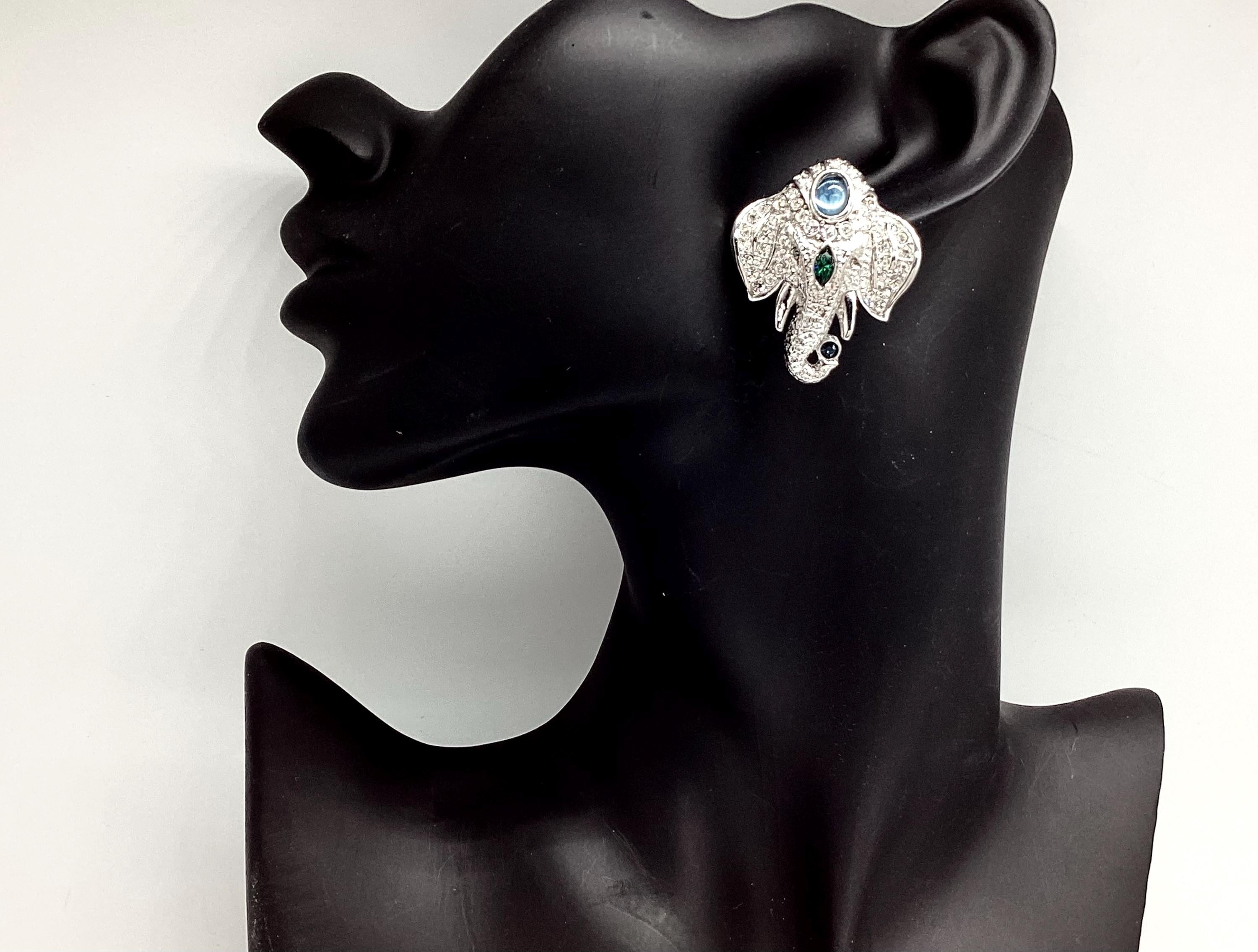 Fabulous glamour in these beautiful, rare and unusual Attwood and Sawyer Swarovski crystal earrings. Stunning clear blue and green crystals in silver tone setting with a match to the pair but in 22ct gold plating, enamel and multicoloured Swarovski crystals. The piece is signed and still in great condition, perfect for any special occasion. I have a particular love for this maker, well known for the superb quality and attention to detail. Founded in Wales in 1956 by Horace Atwood, Atwood and Sawyer produced copies of precious ornaments from the 18th to 19th centuries. Many pieces were made for the television series “Dallas” and “Dynasty”, as well as exclusive compositions for the beauty contest “Miss World”. The firm produced high-end imitation jewellery and sold their decorations at prestigious retail outlets across the UK, Europe and other countries around the world, as well as on cruise ships and Airliners. A special recognition was given to their historical collection of exact copies of the jewellery of the Duchess of Windsor.