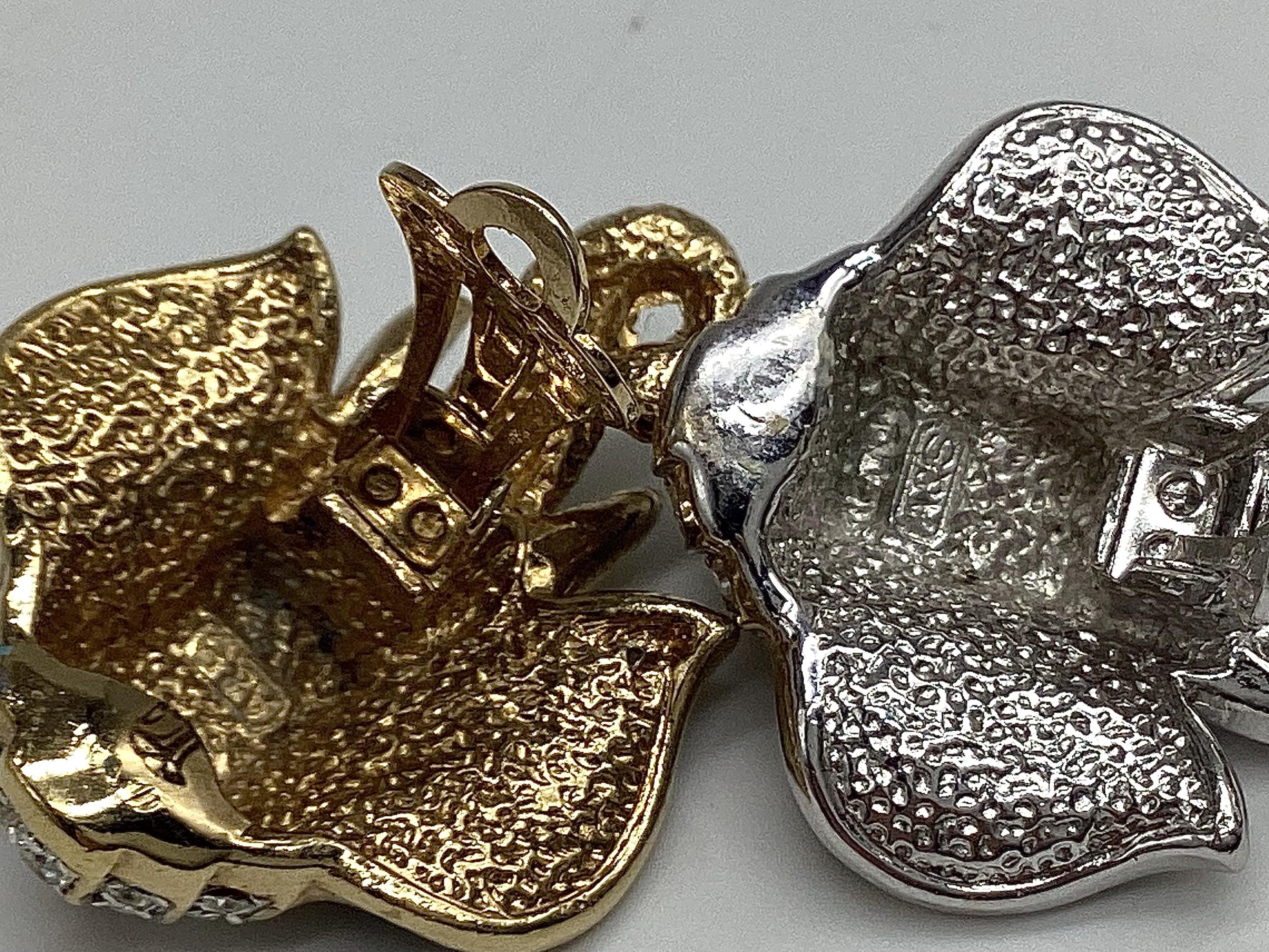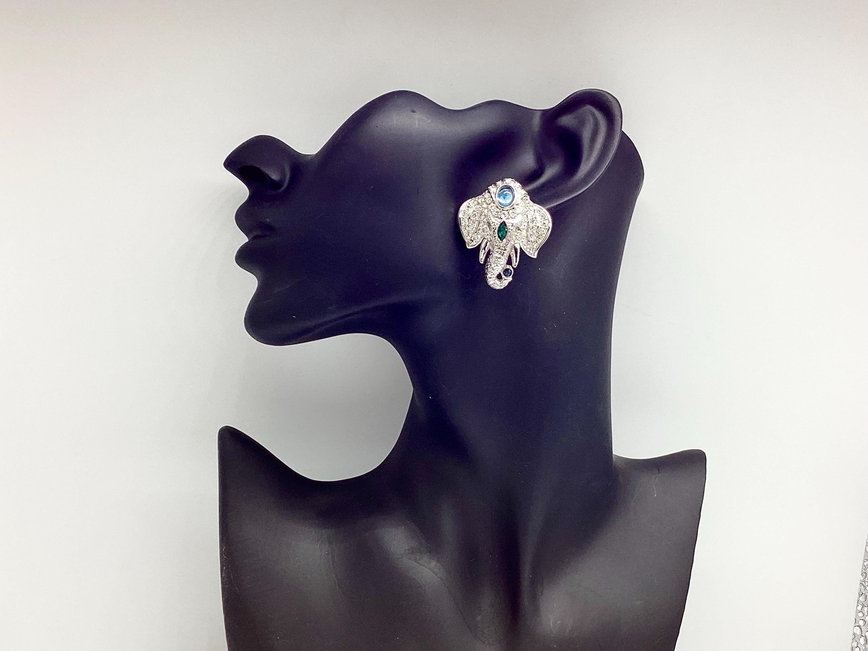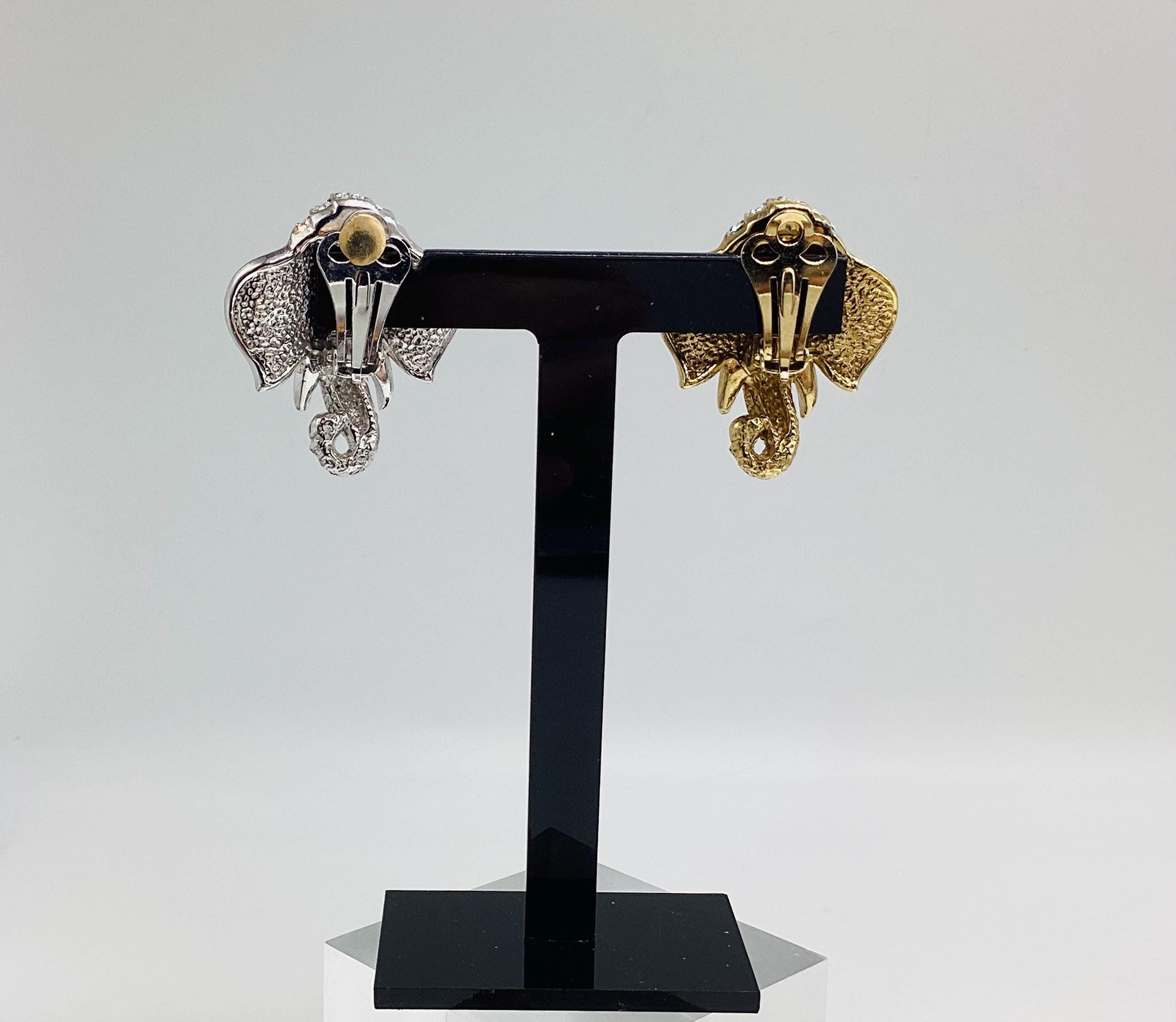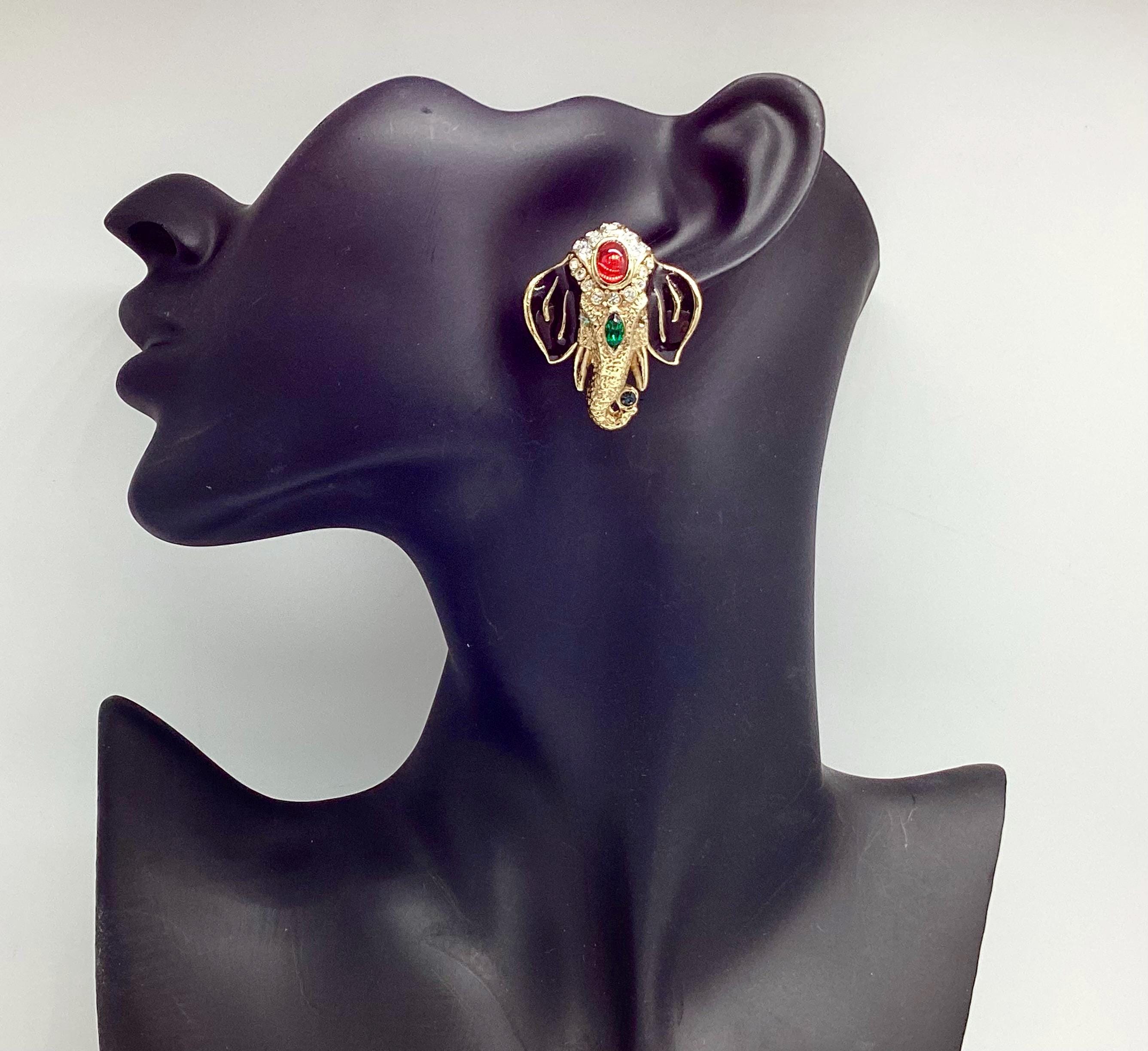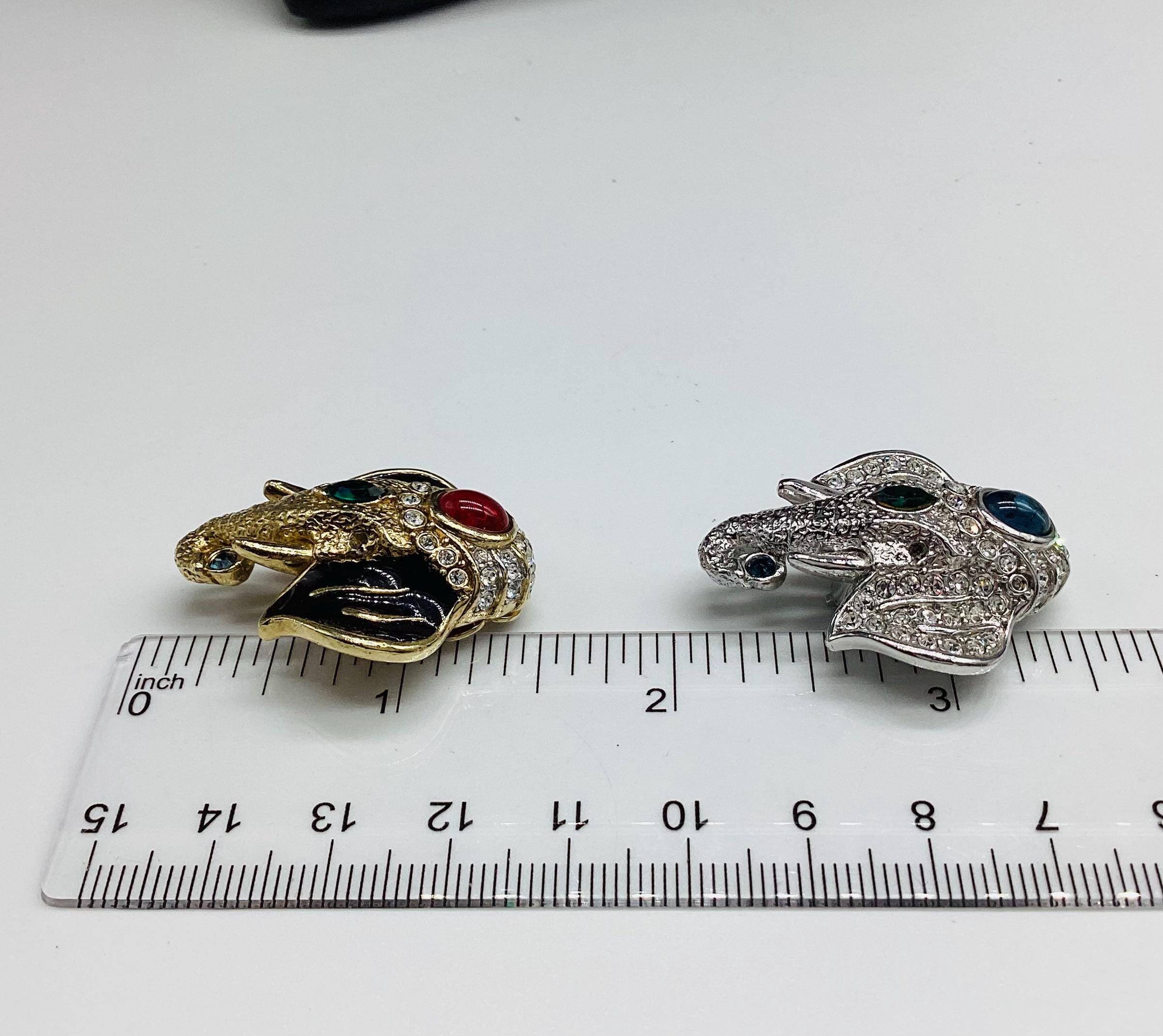 Fabulous glamour in these beautiful, rare and unusual Attwood and Sawyer Swarovski crystal earrings. Stunning clear blue and green crystals in silver tone setting with a match to the pair but in 22ct gold plating, enamel and multicoloured Swarovski crystals. The piece is signed and still in great condition, perfect for any special occasion. I have a particular love for this maker, well known for the superb quality and attention to detail. Founded in Wales in 1956 by Horace Atwood, Atwood and Sawyer produced copies of precious ornaments from the 18th to 19th centuries. Many pieces were made for the television series “Dallas” and “Dynasty”, as well as exclusive compositions for the beauty contest “Miss World”. The firm produced high-end imitation jewellery and sold their decorations at prestigious retail outlets across the UK, Europe and other countries around the world, as well as on cruise ships and Airliners. A special recognition was given to their historical collection of exact copies of the jewellery of the Duchess of Windsor.