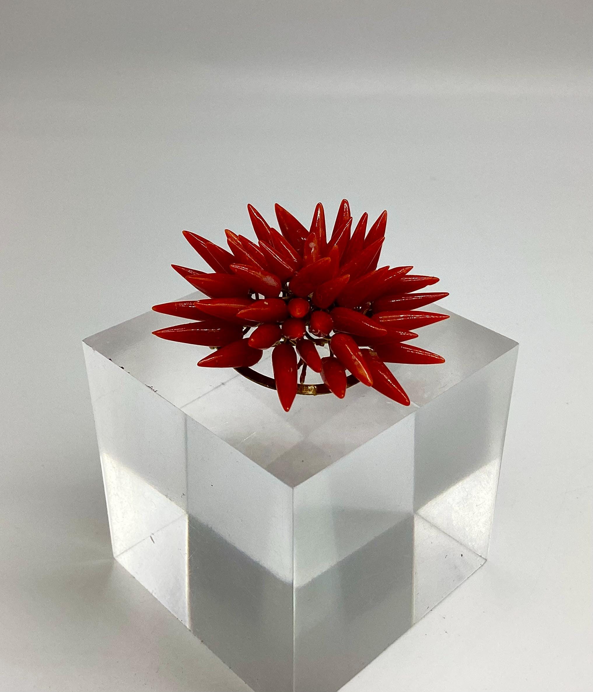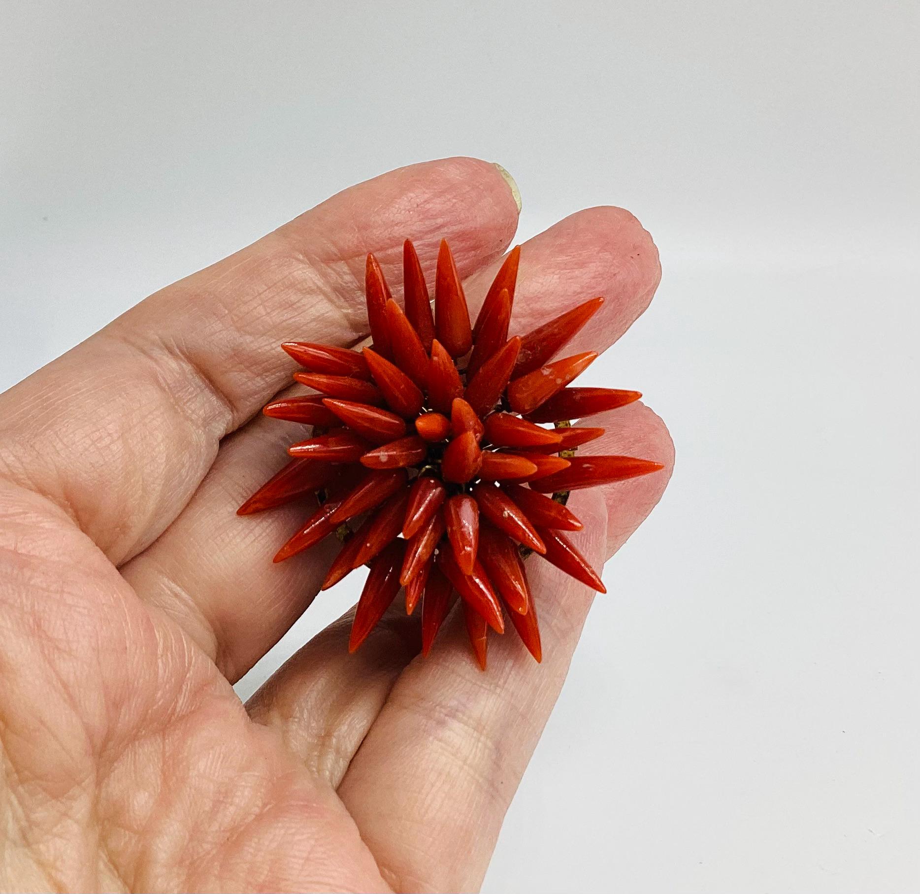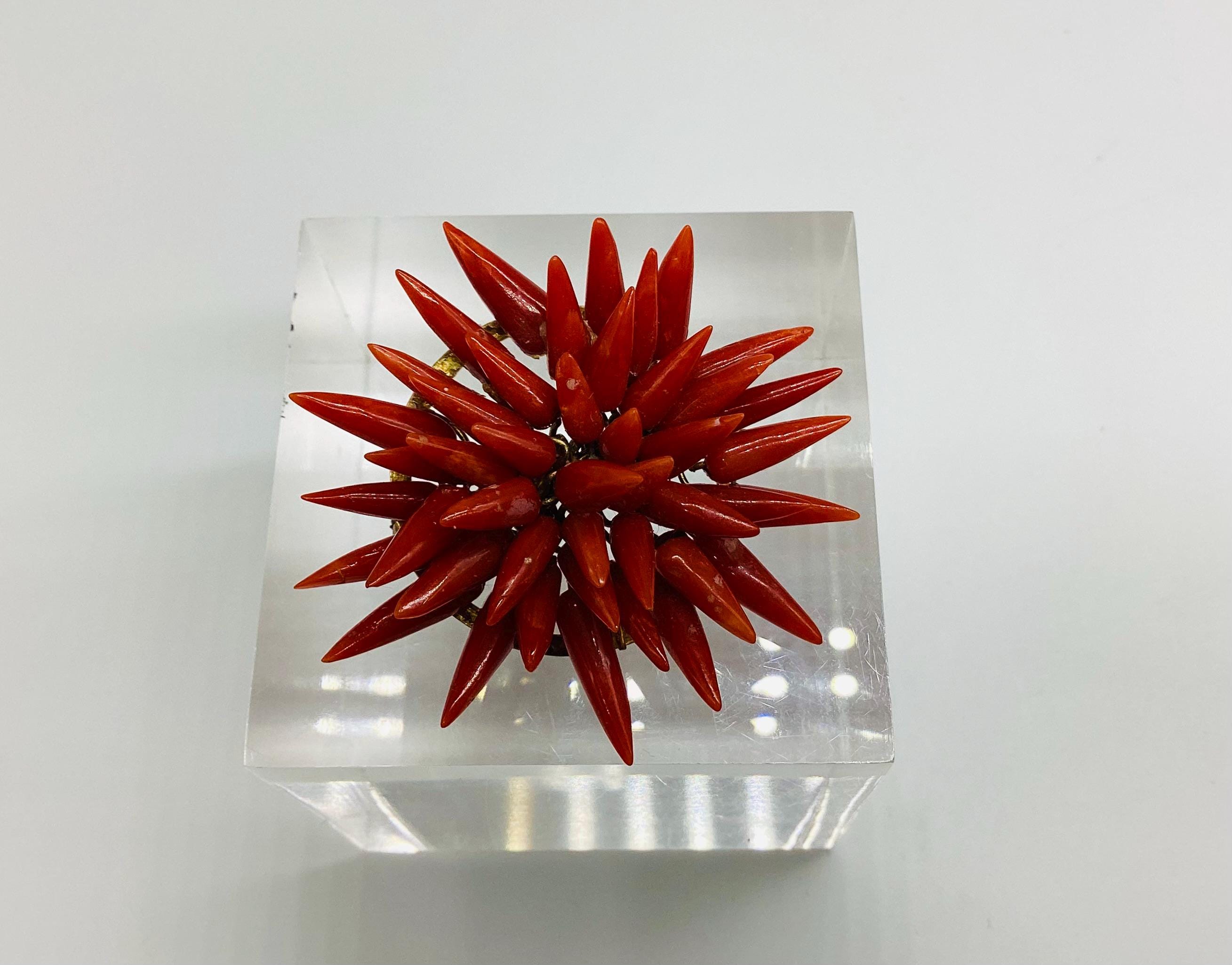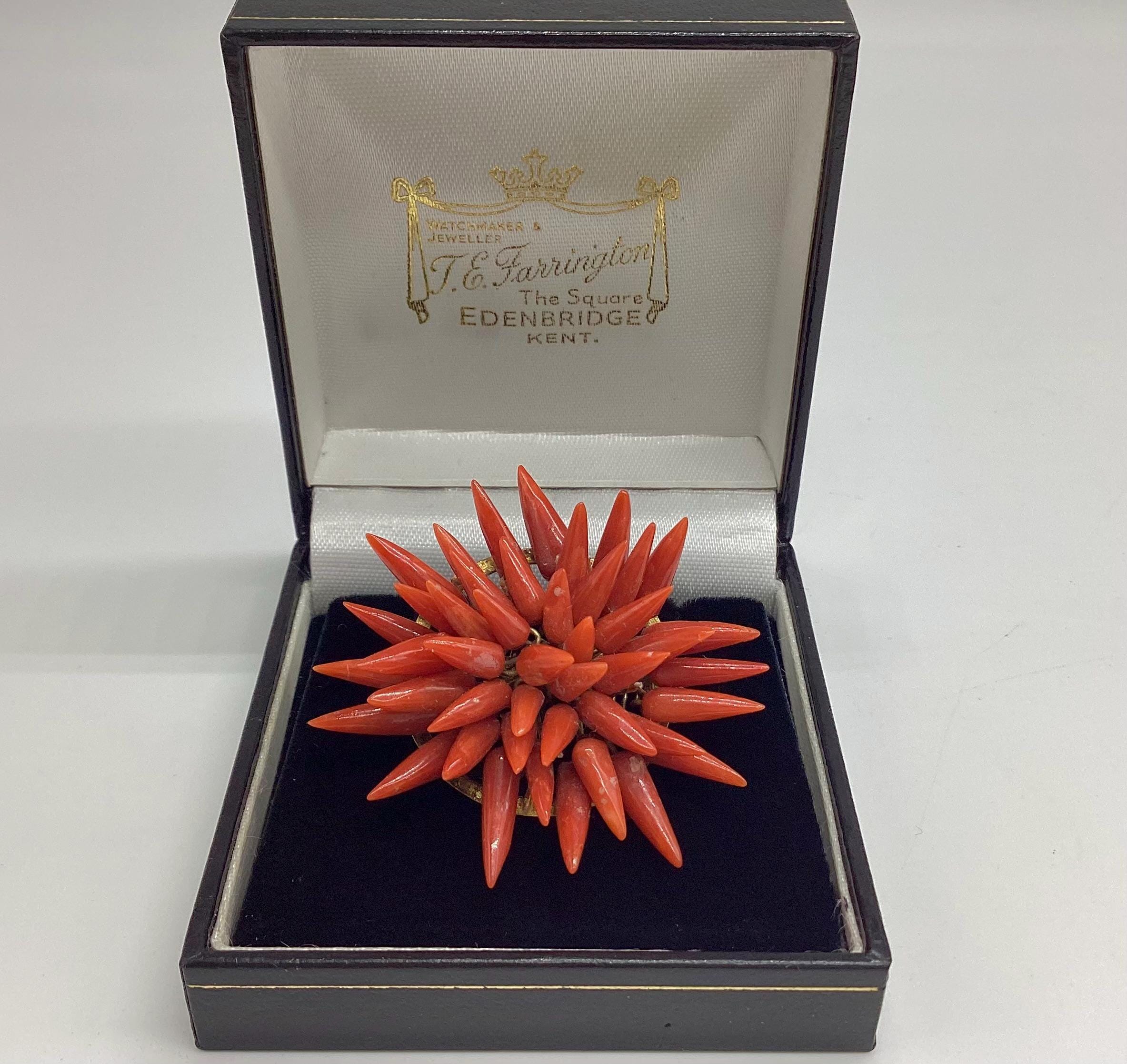 A beautiful piece of Victorian jewellery. Deep red carved Mediterranean coral of stunning quality.