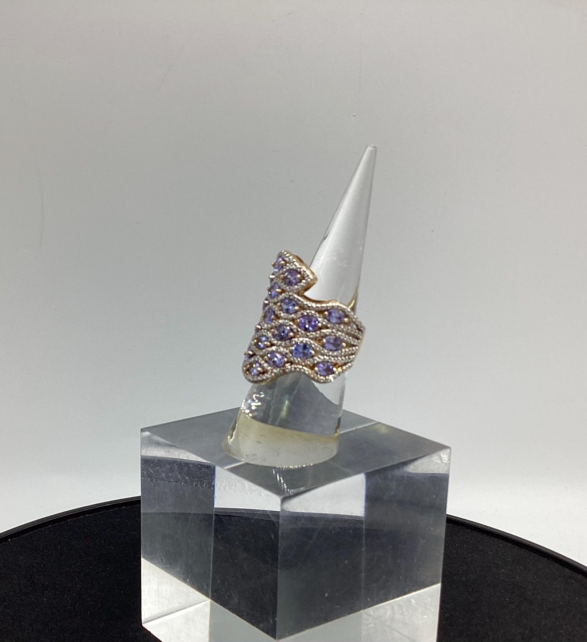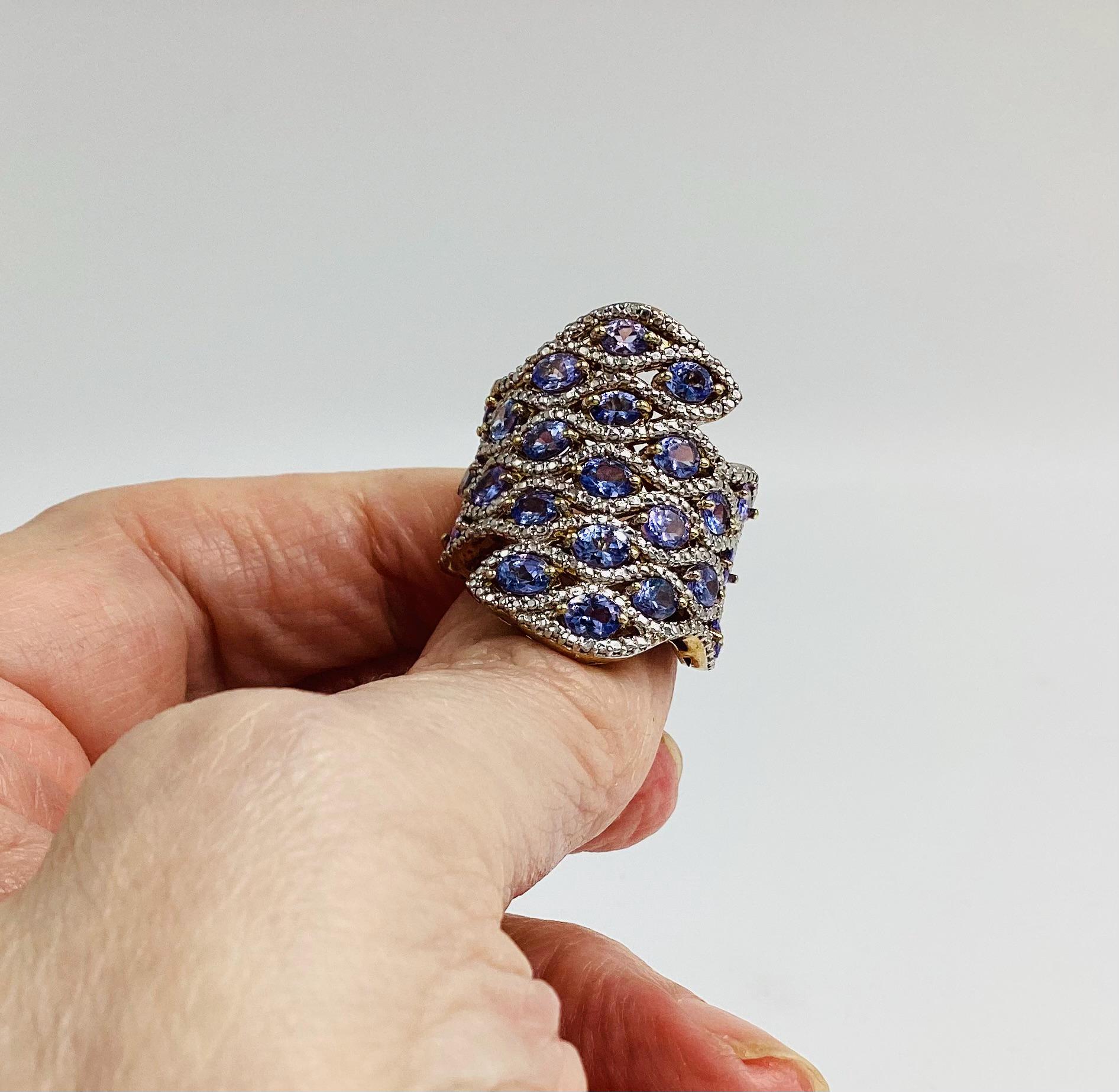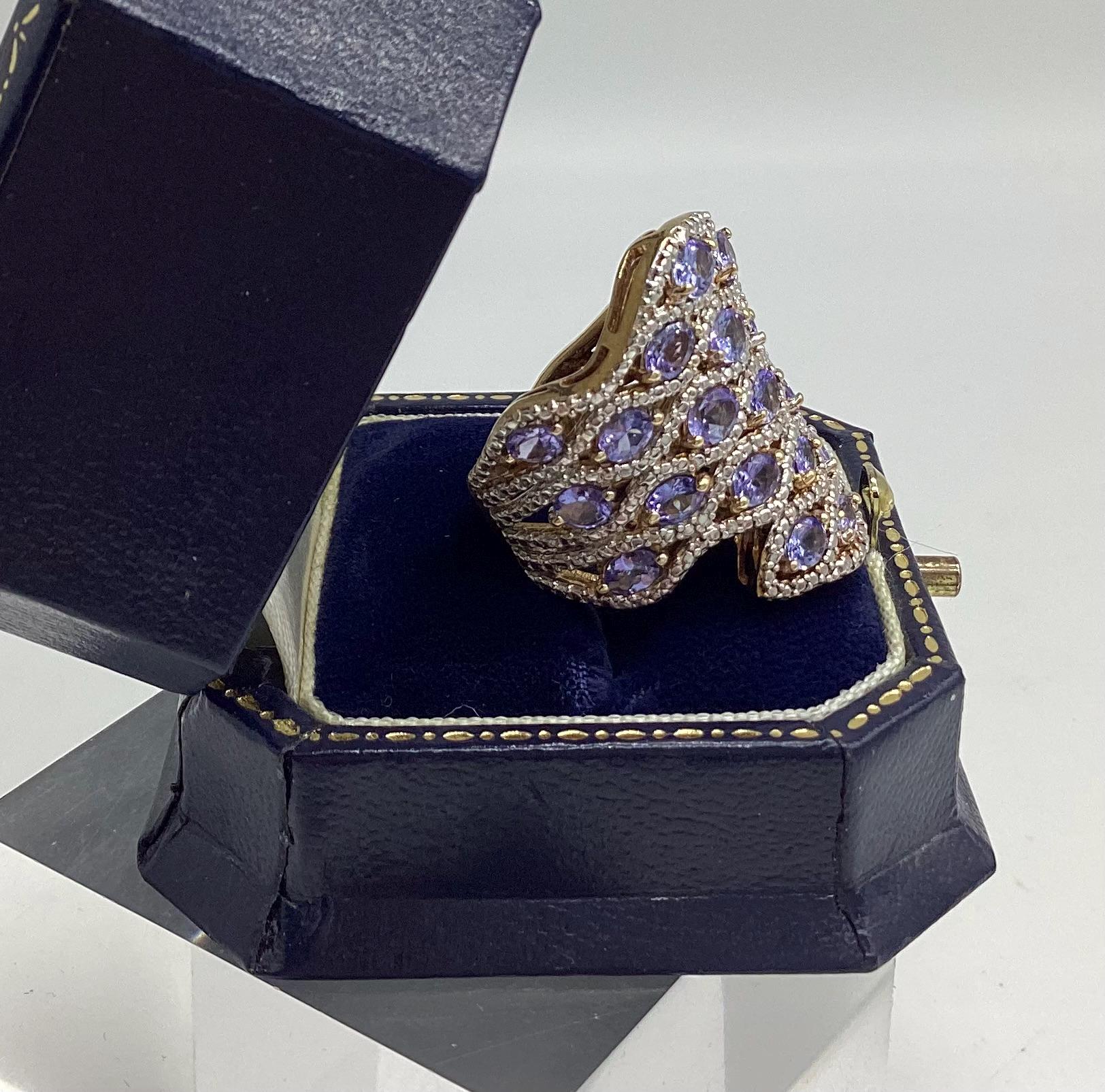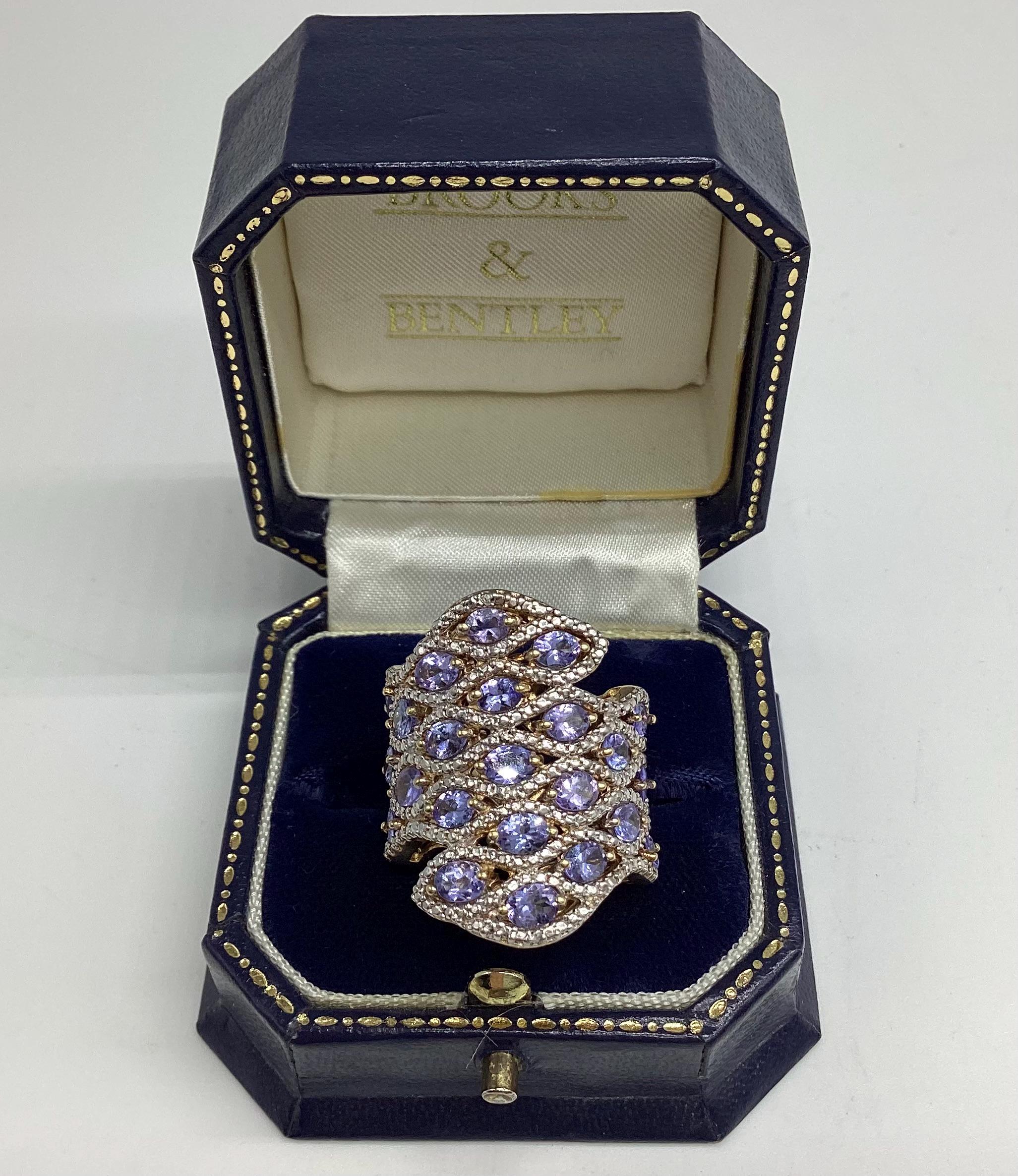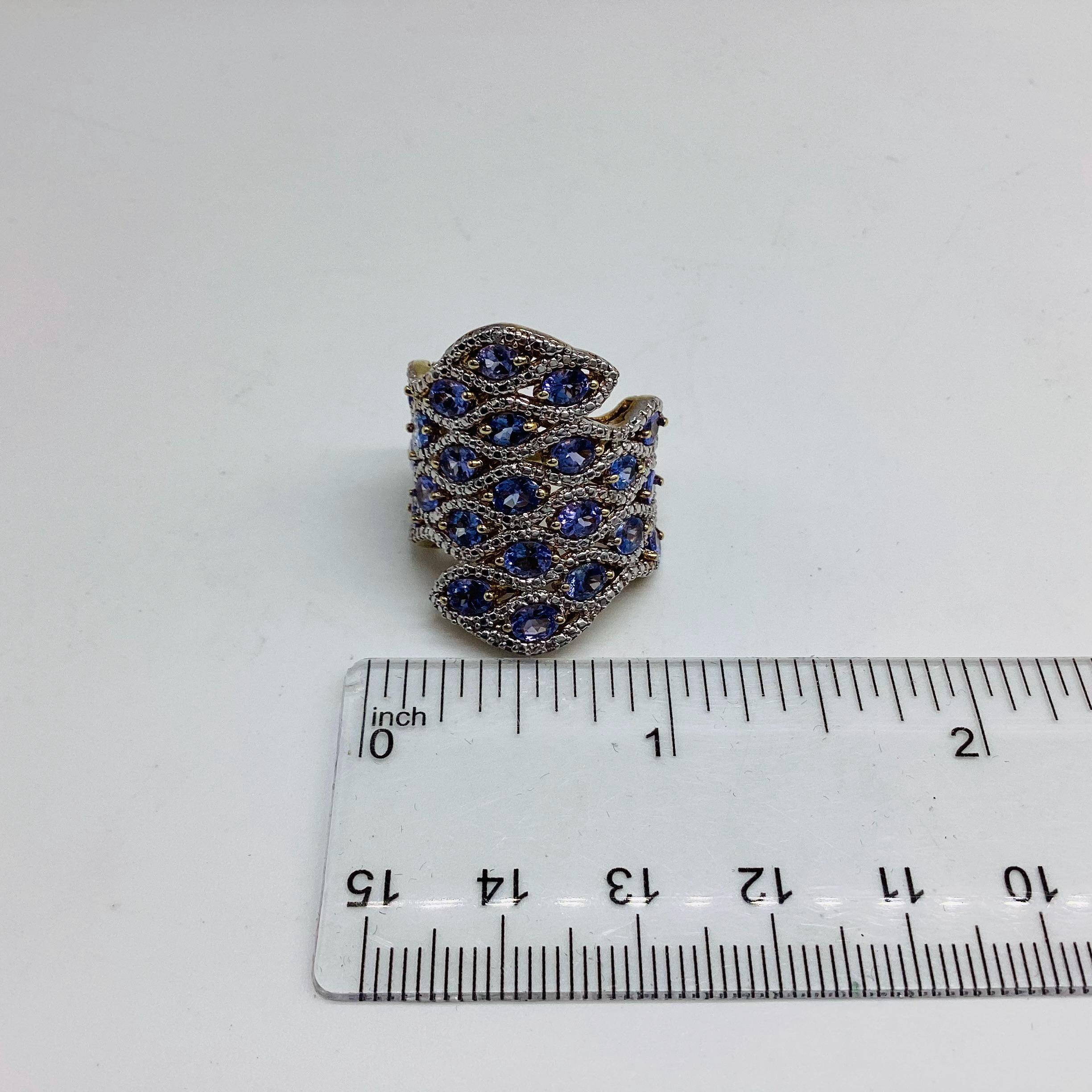 A spectacular ring in vermeil and set with very pretty marquise cut blue topaz. Sits beautifully on the finger and is an extremely eye-catching piece of vintage jewellery dating from the 1990's. In very good condition. Widest front of ring measures a full