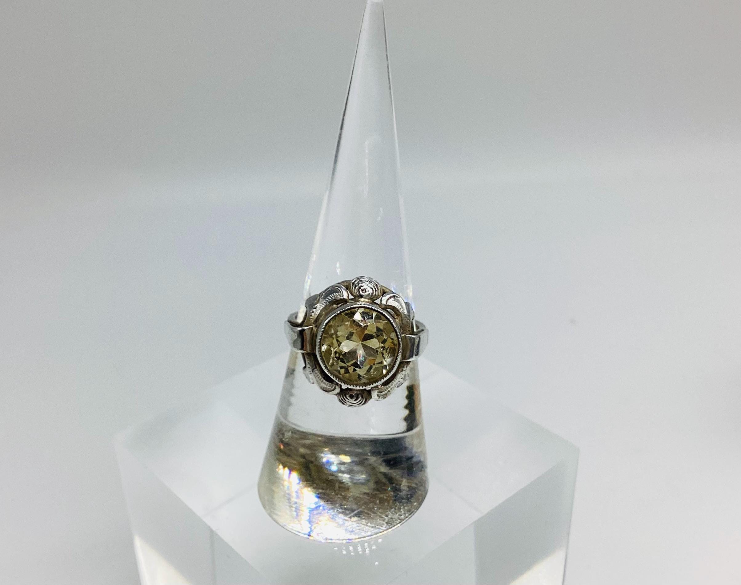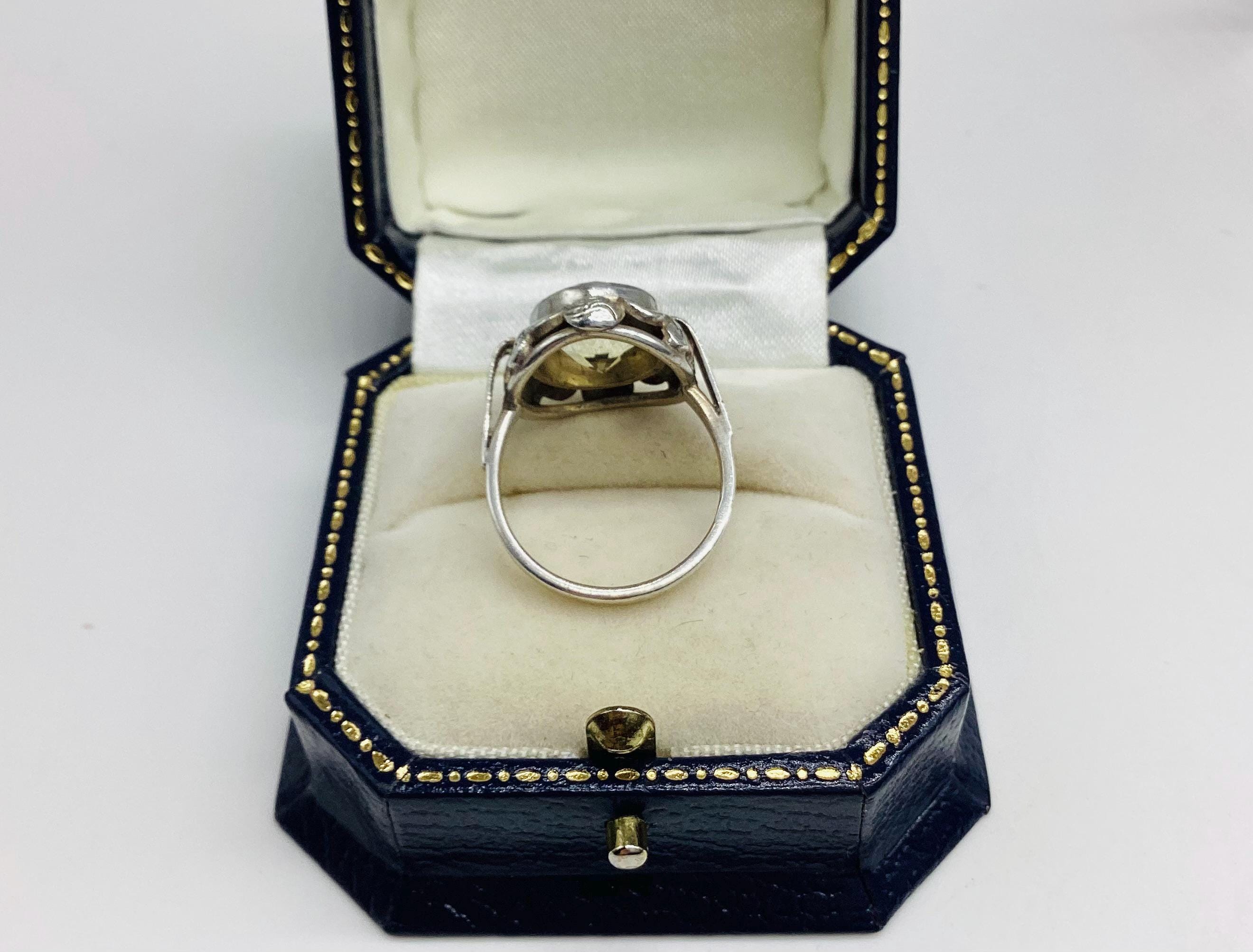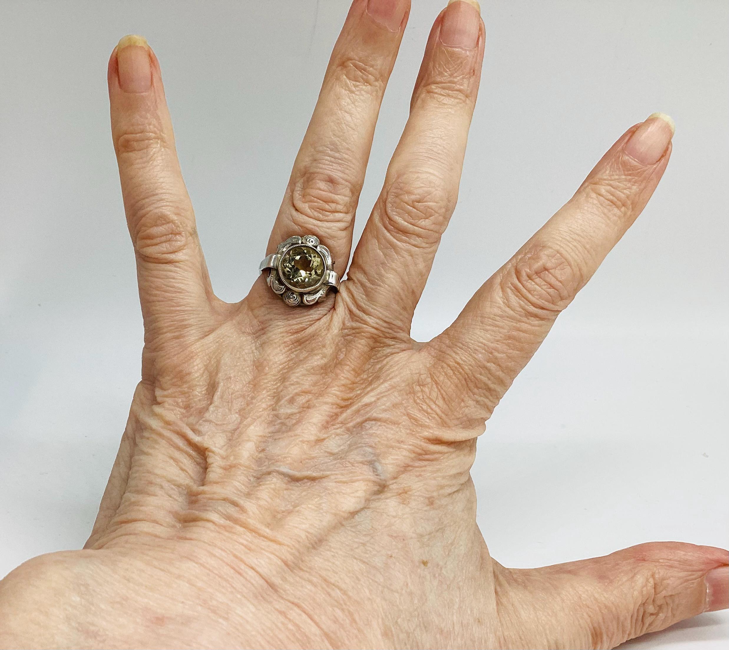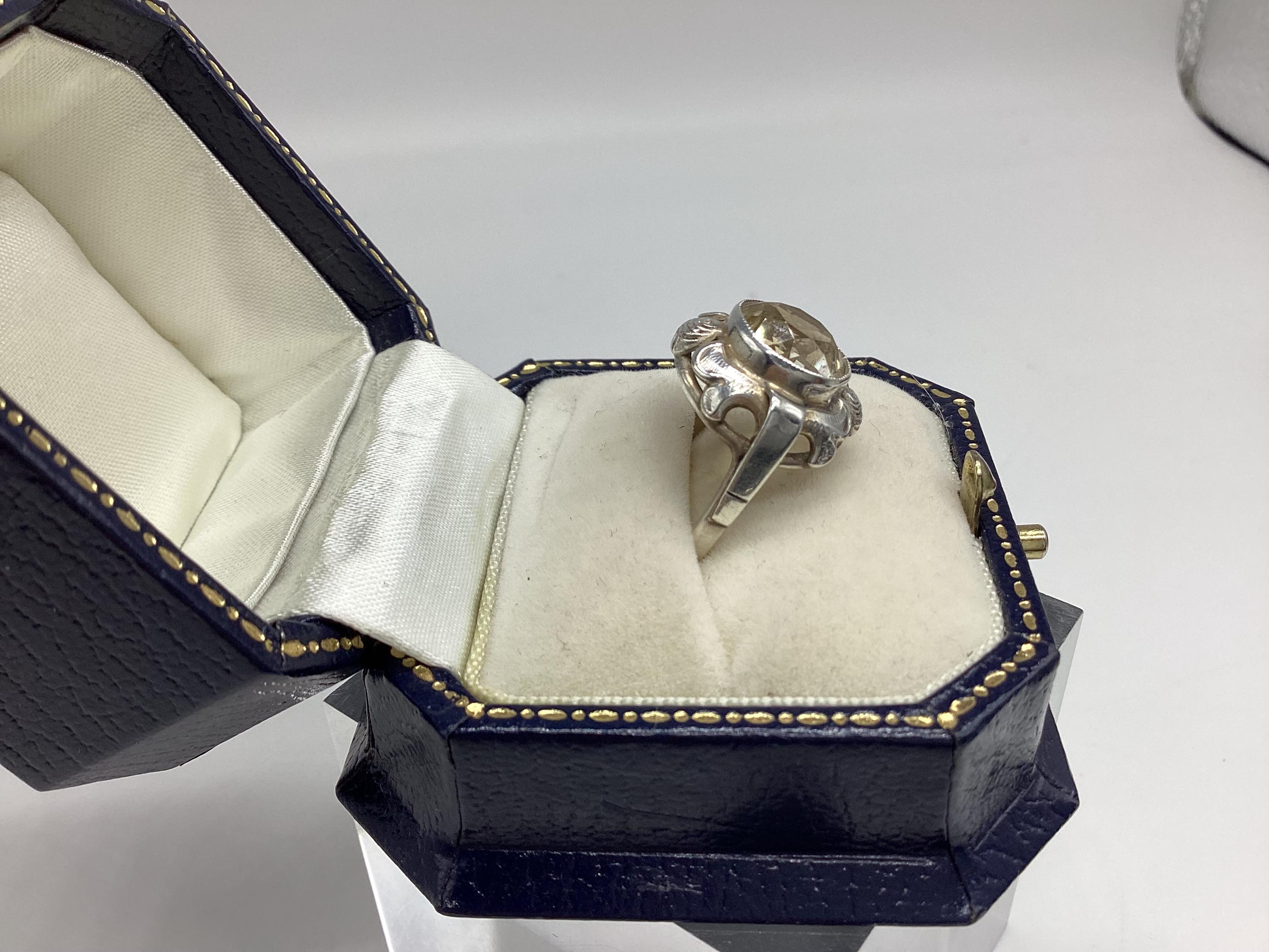 A stunning statement ring. Large pretty brilliant cut citrine in a solid silver flower and leaf setting with raised shoulders. Wonderful sparkle.