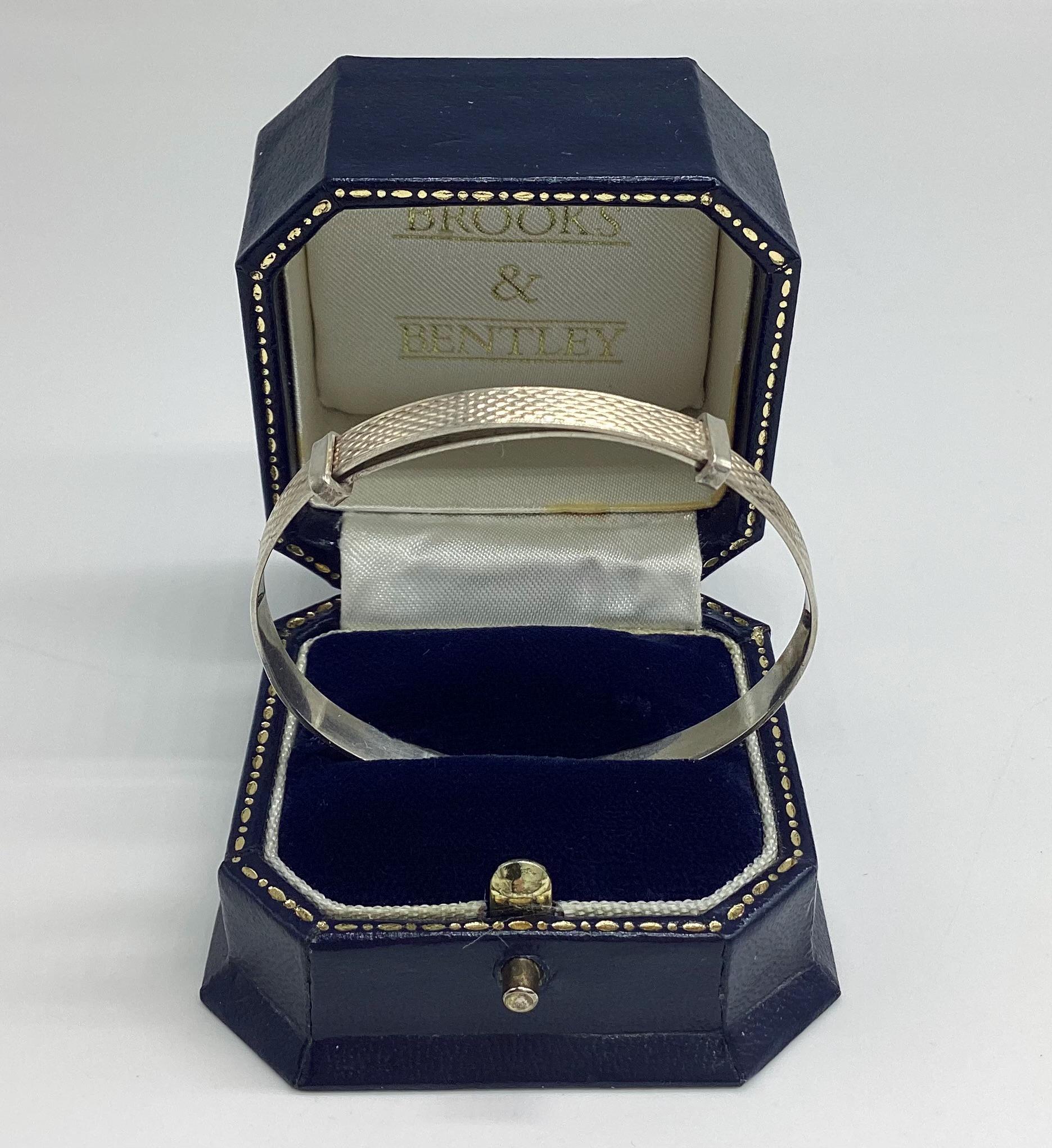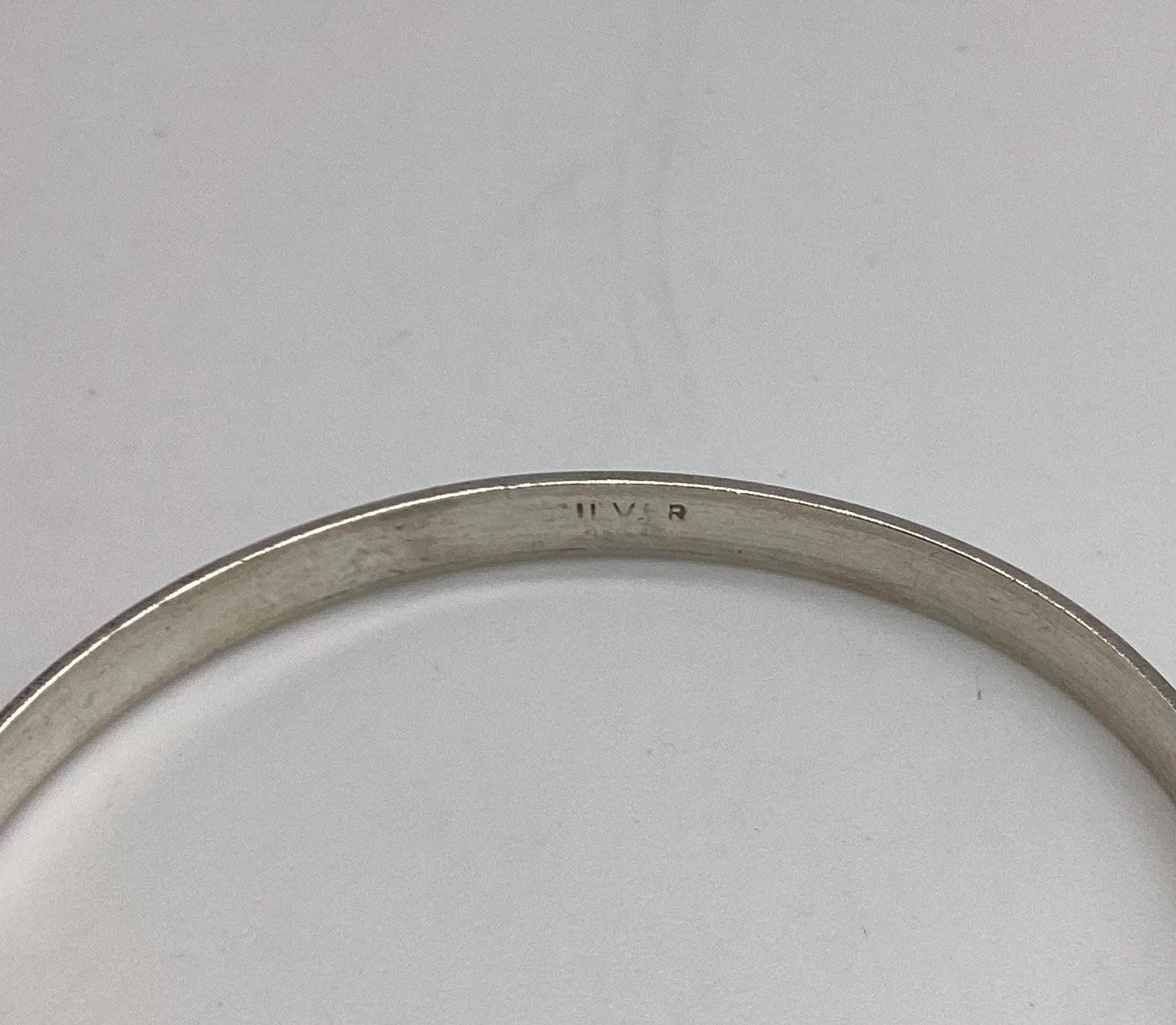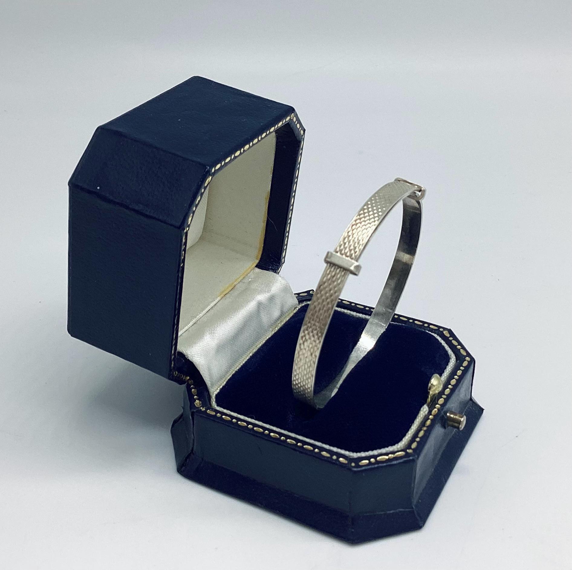 A delightful baby bangle stamped silver and quality machine cut finish. A super Christening gift or baby shower present. This size should be approx suitable for 12-24 month baby.