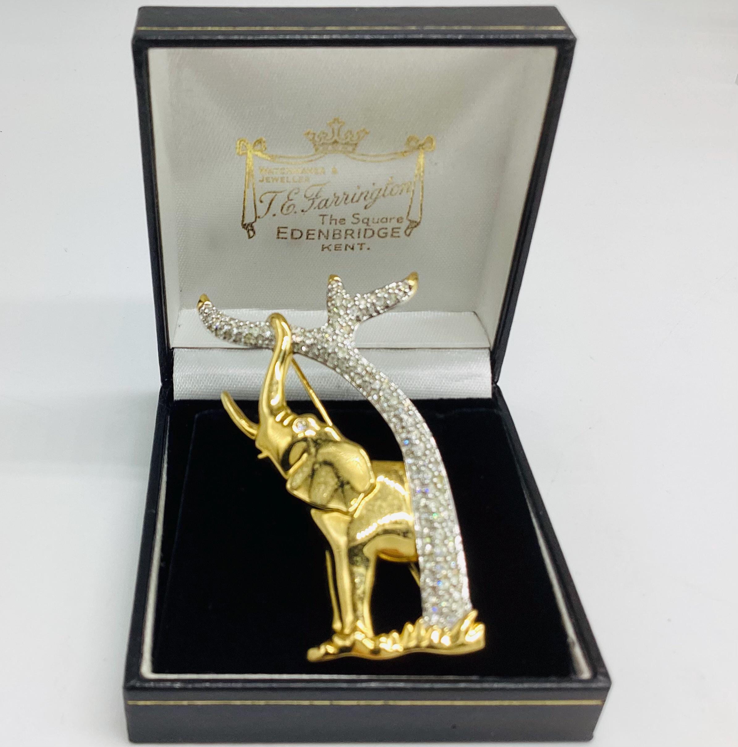 Beautiful original Swarovski brooch. Signed SCS for the official Swarovski collectors society and the particular to complement the "Inspiration Africa" elephant figurine released the same year. The raised trunk is a sign and indication of good luck.
