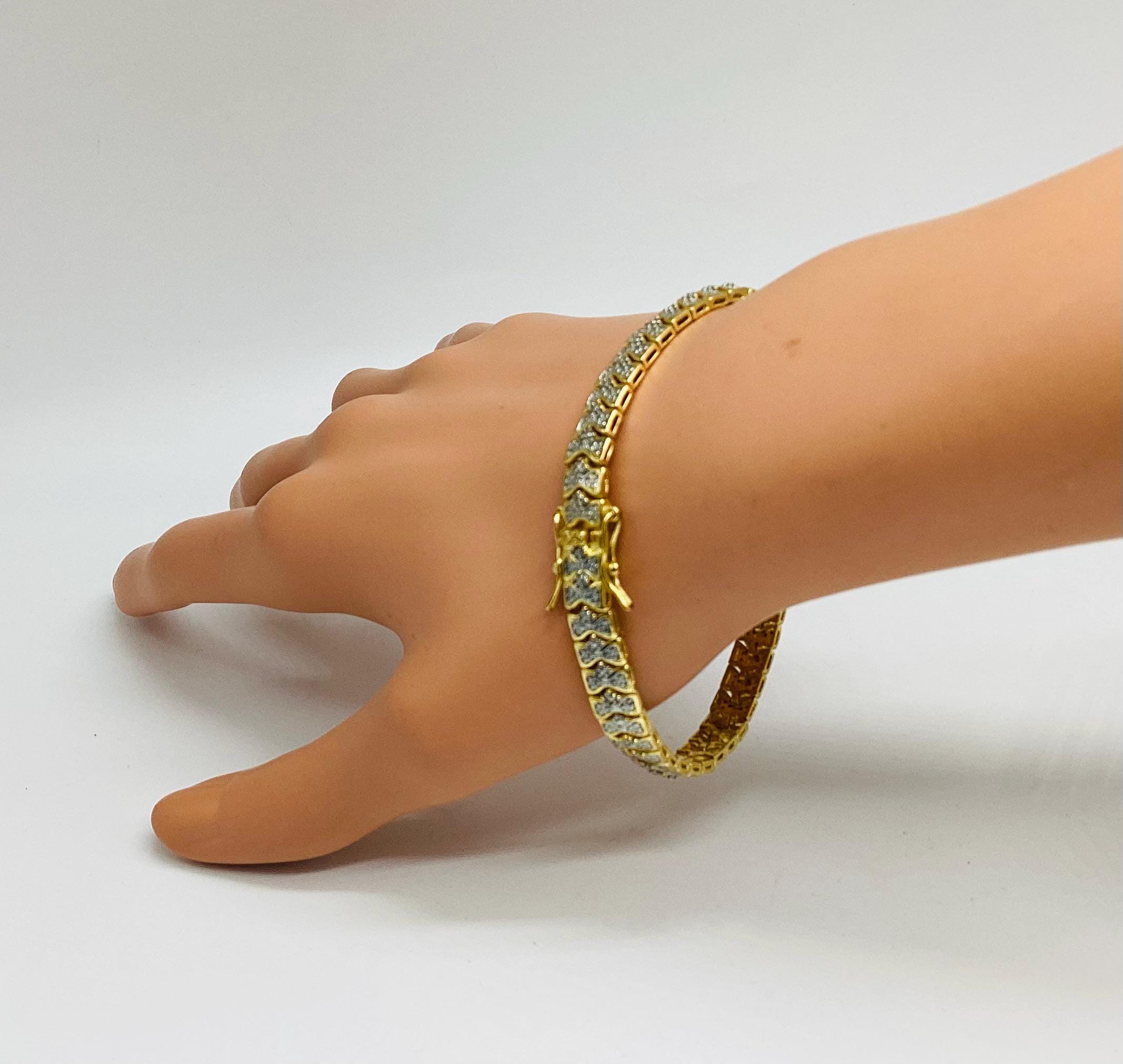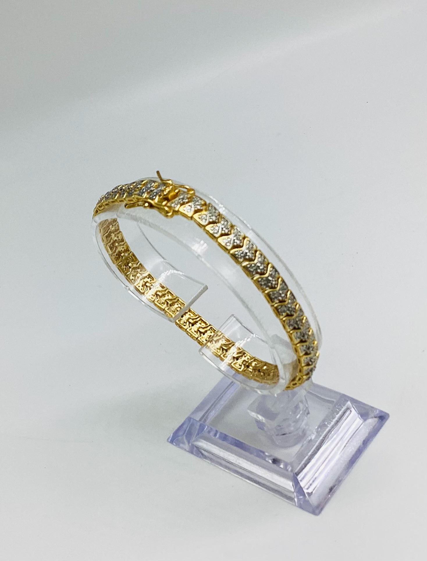 A lovely vintage bracelet. A stylised leaf effect in gold and silver tone metal And faux marcasite.
