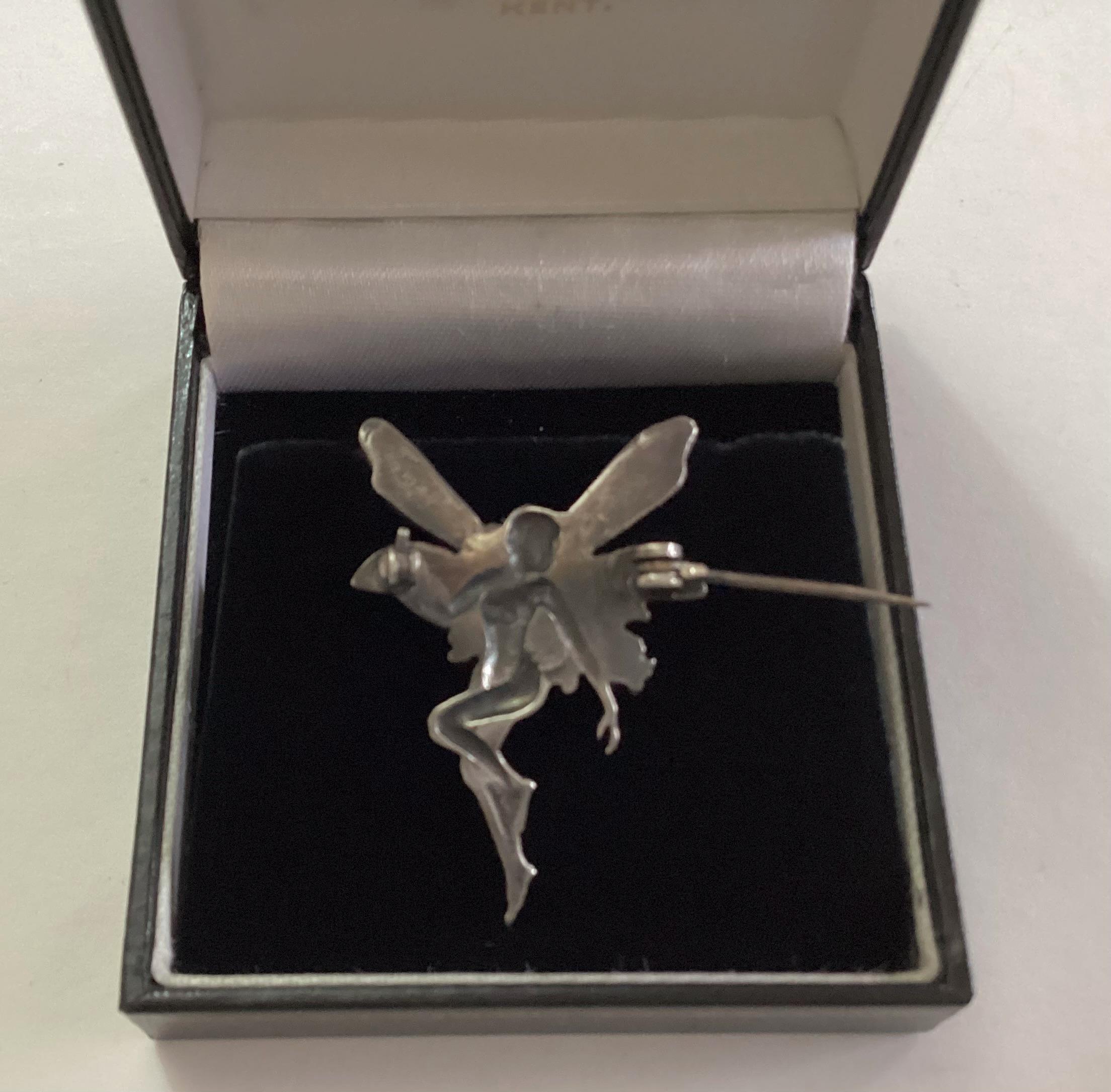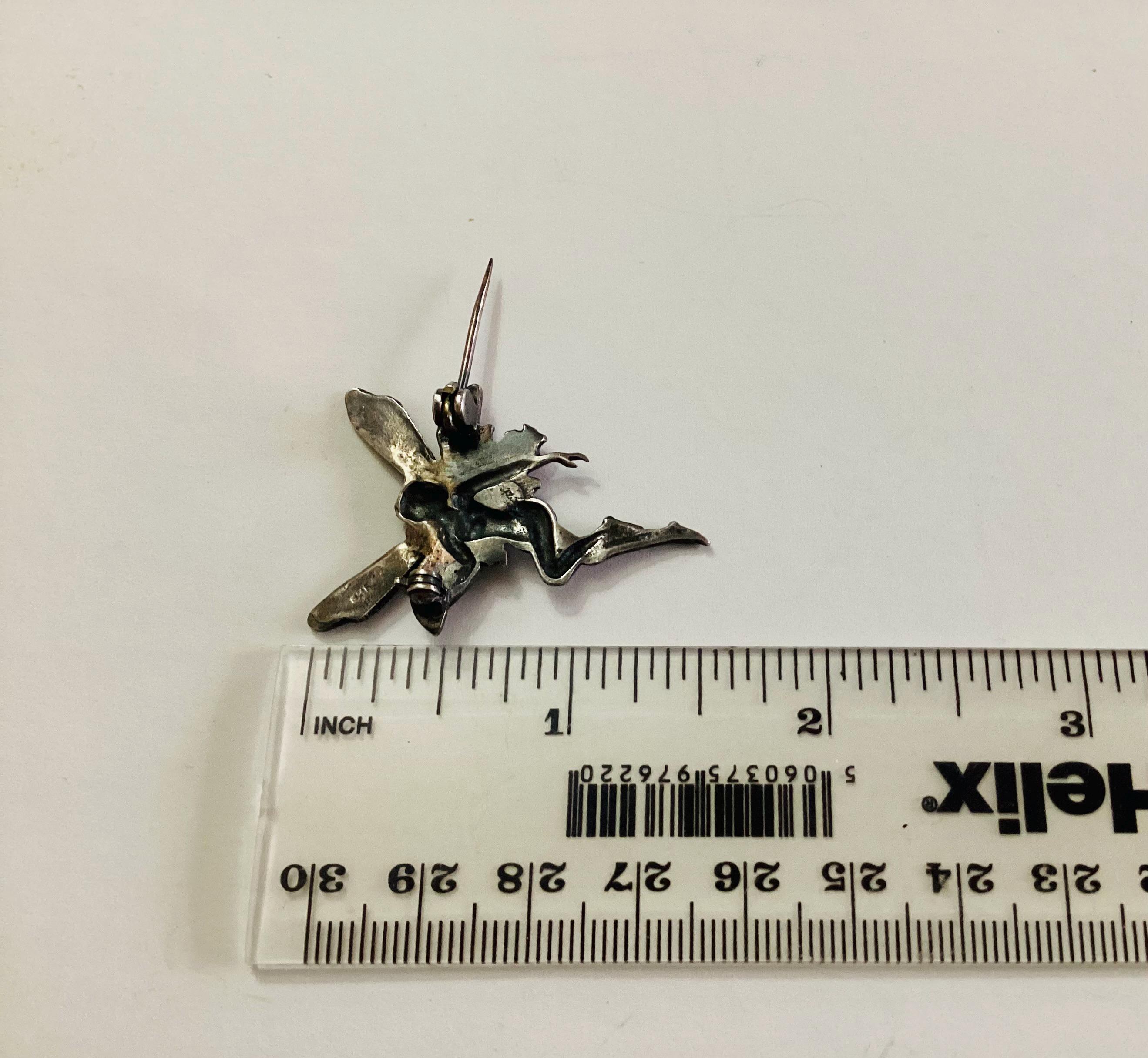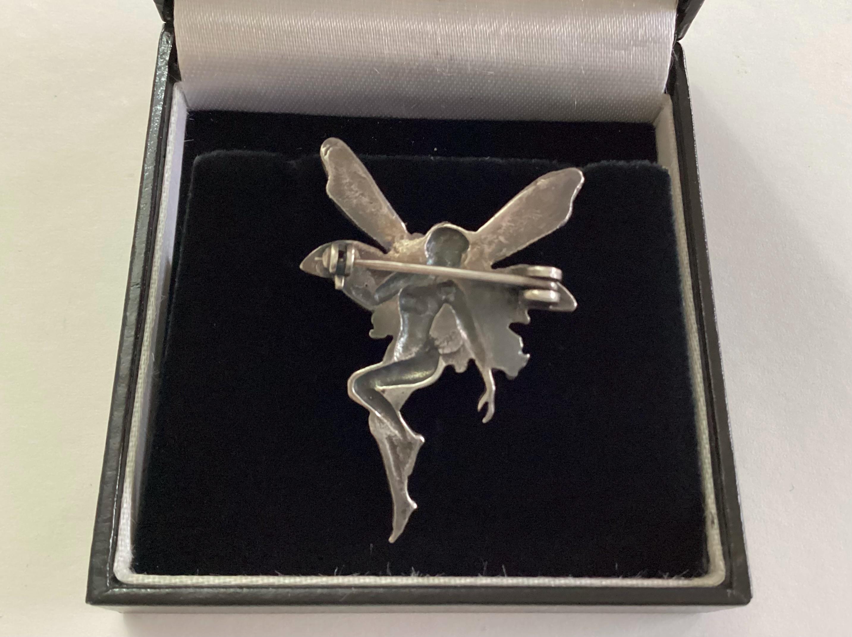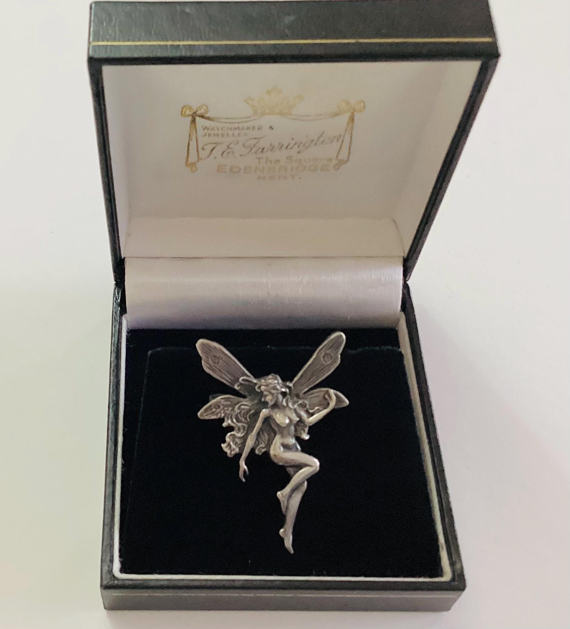 This is a fabulous brooch in the classic Art Nouveau style. In solid stamped 925 silver . Unusual to find an example of this particular fairy in such lovely detail and also modeled in silver. A super romantic piece of jewellery. I think this dates from the seventies when this style of rt Nouveau romantic style was popular but it could be earlier.