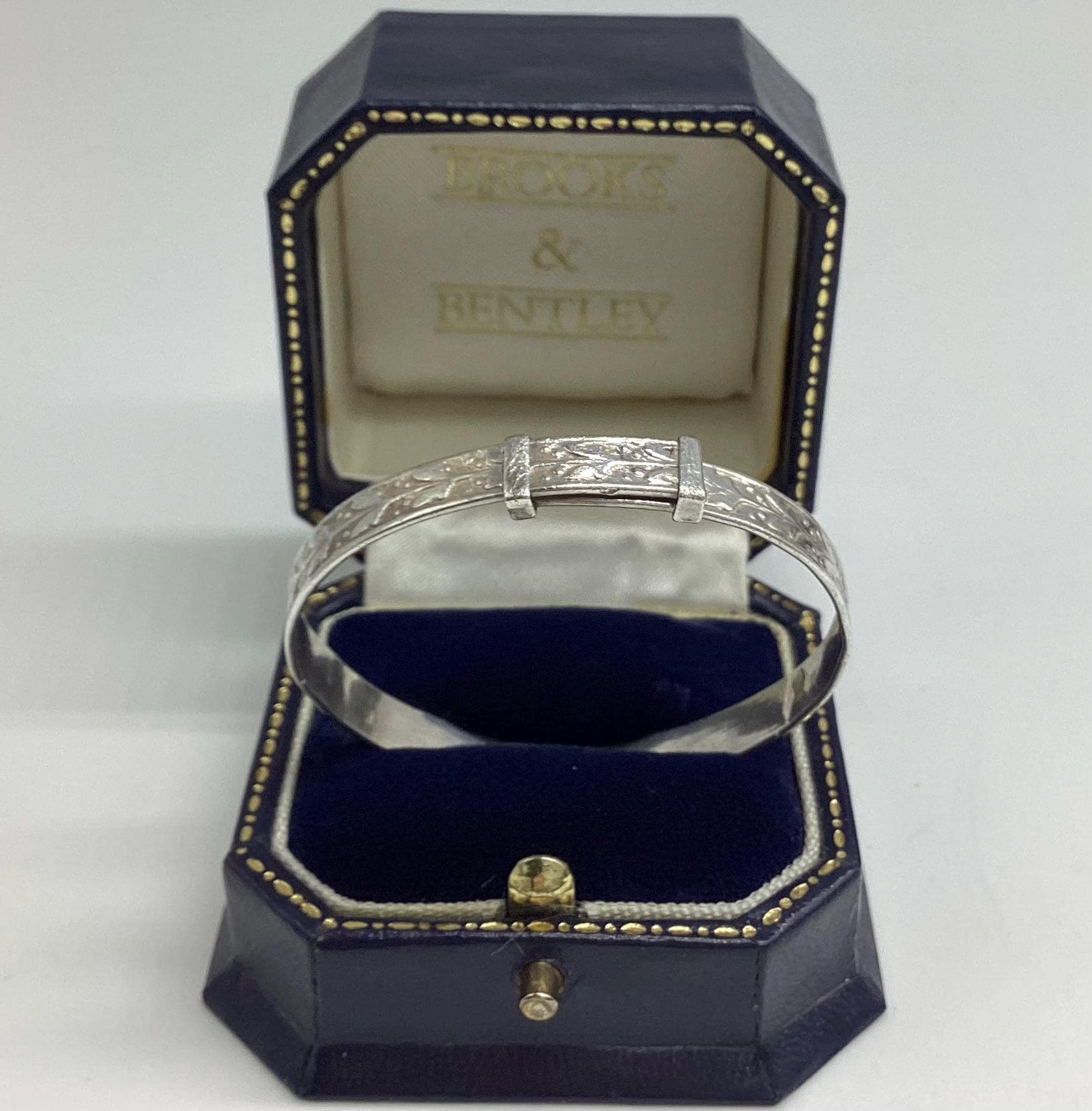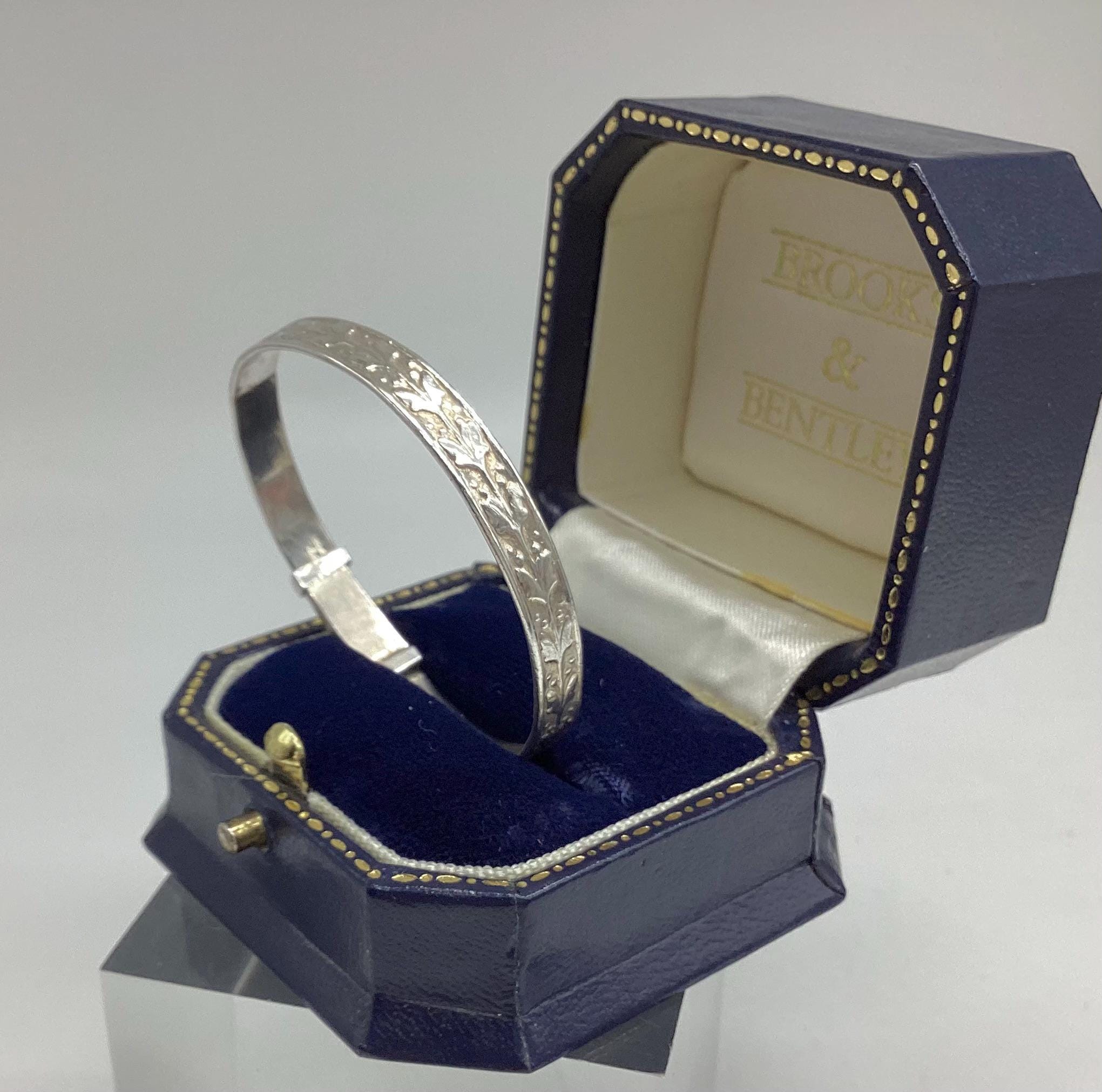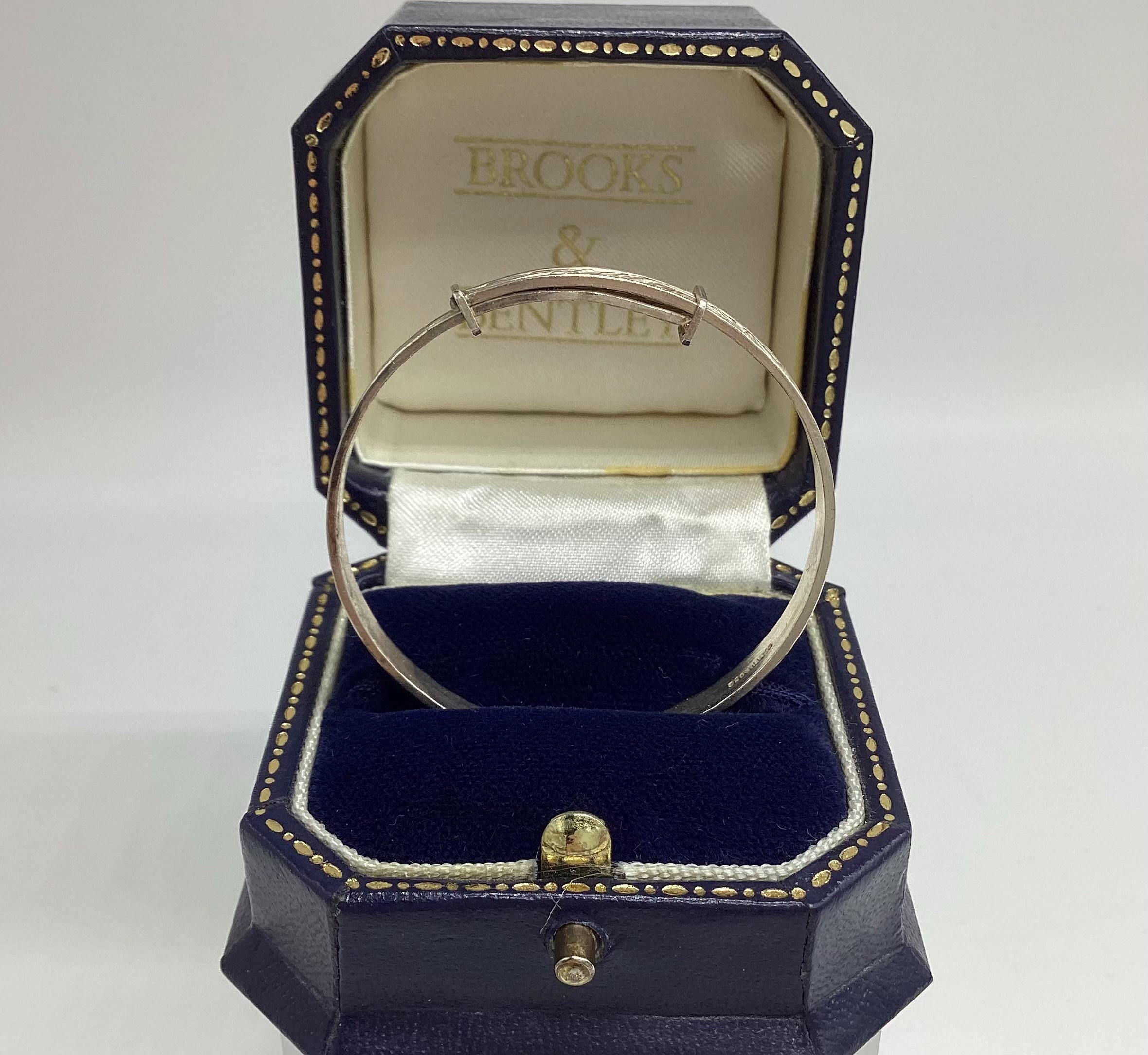 A delightful baby bangle hallmarked Sterling Silver. A super Christening gift or baby shower present. This size should be suitable for 6-12 month baby.
