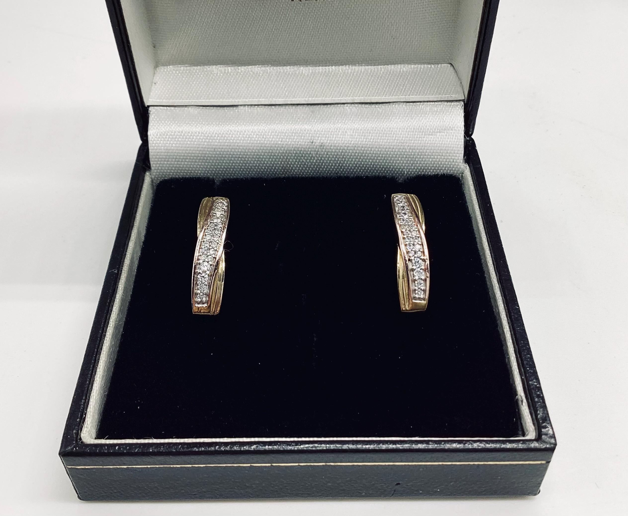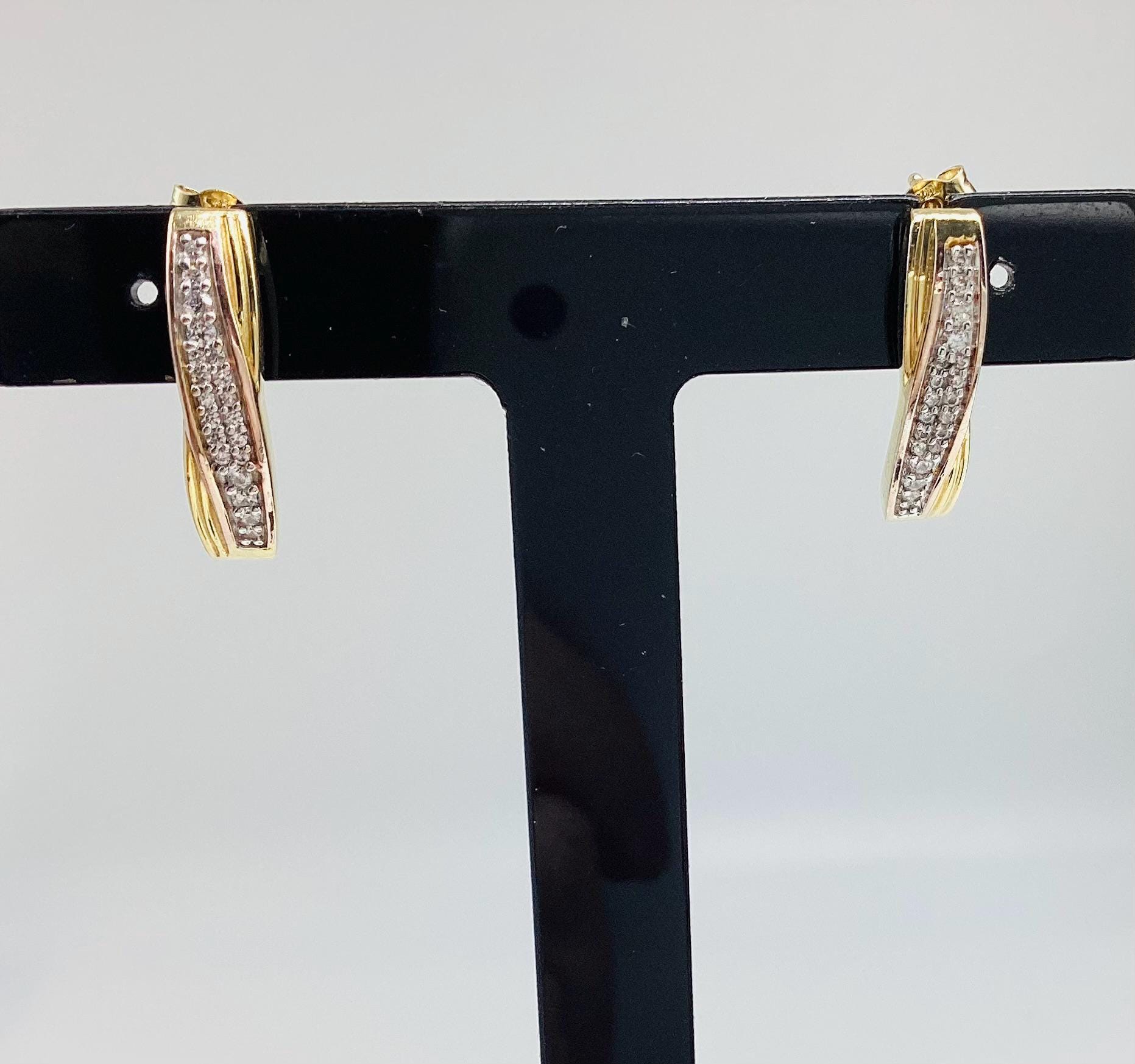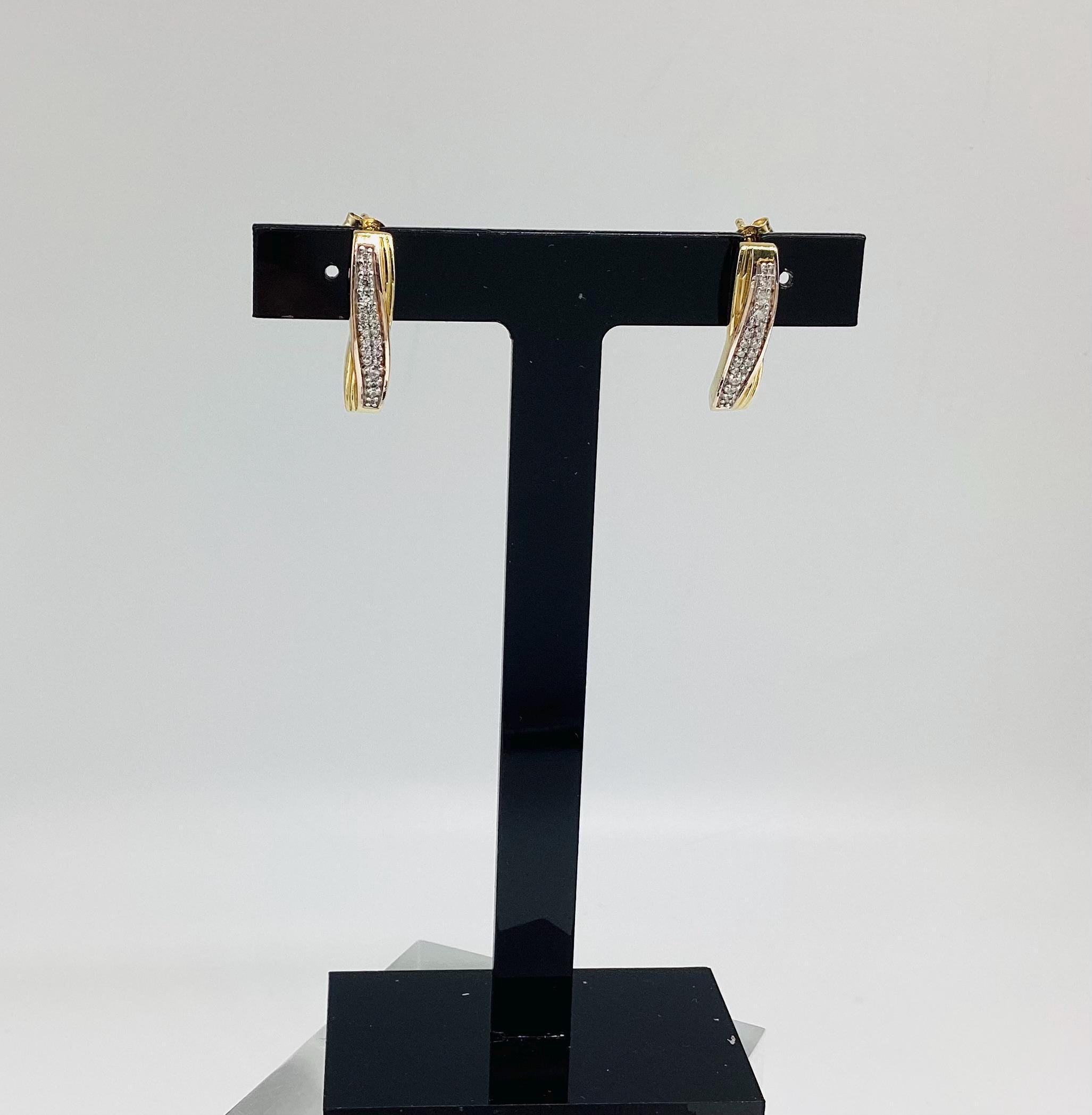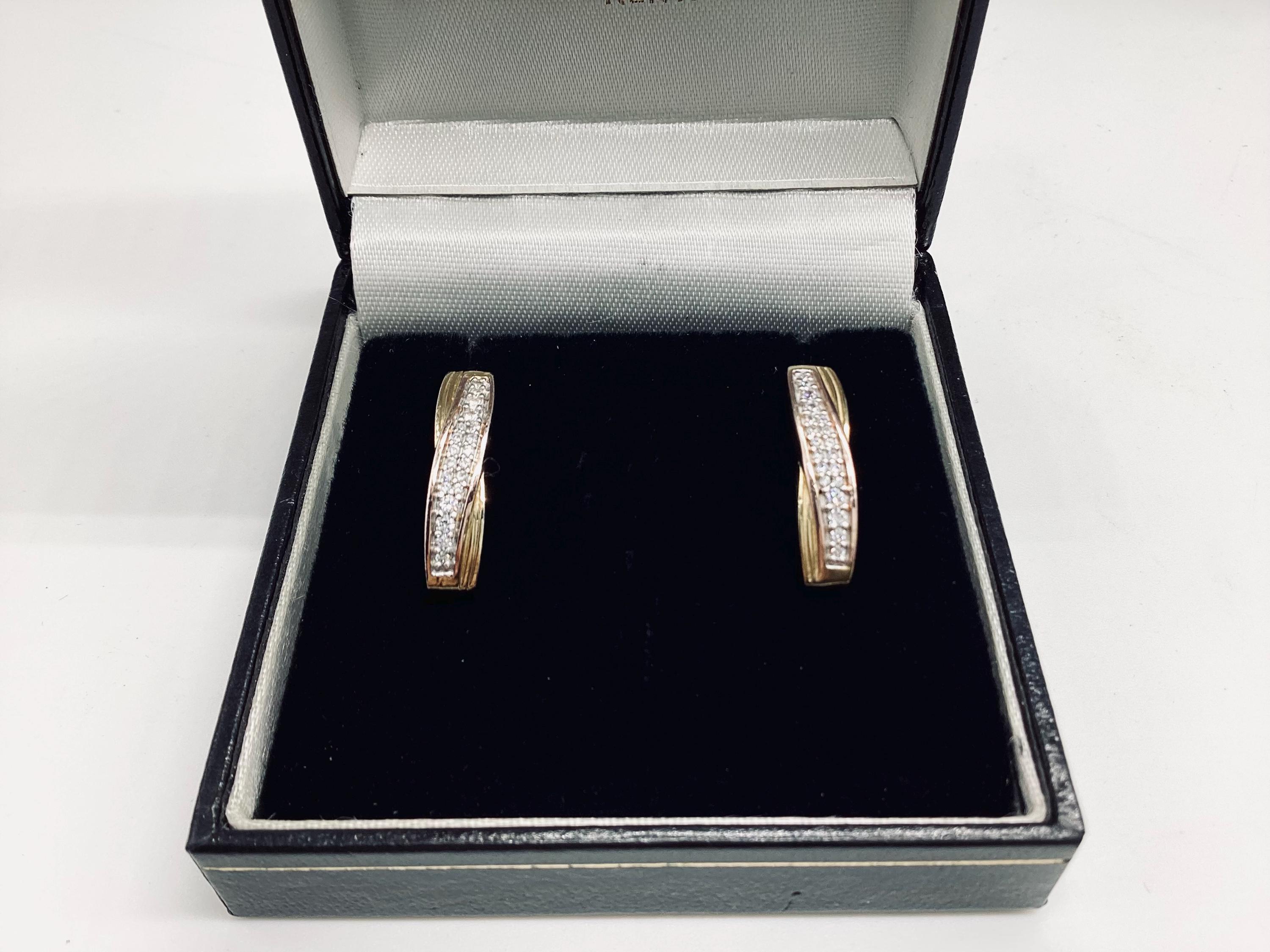 Very pretty half hoop earring in 9ct gold on 925 solid silver set with faceted white topaz. Latch backs in full working order. Beautiful gift or wedding jewellery.