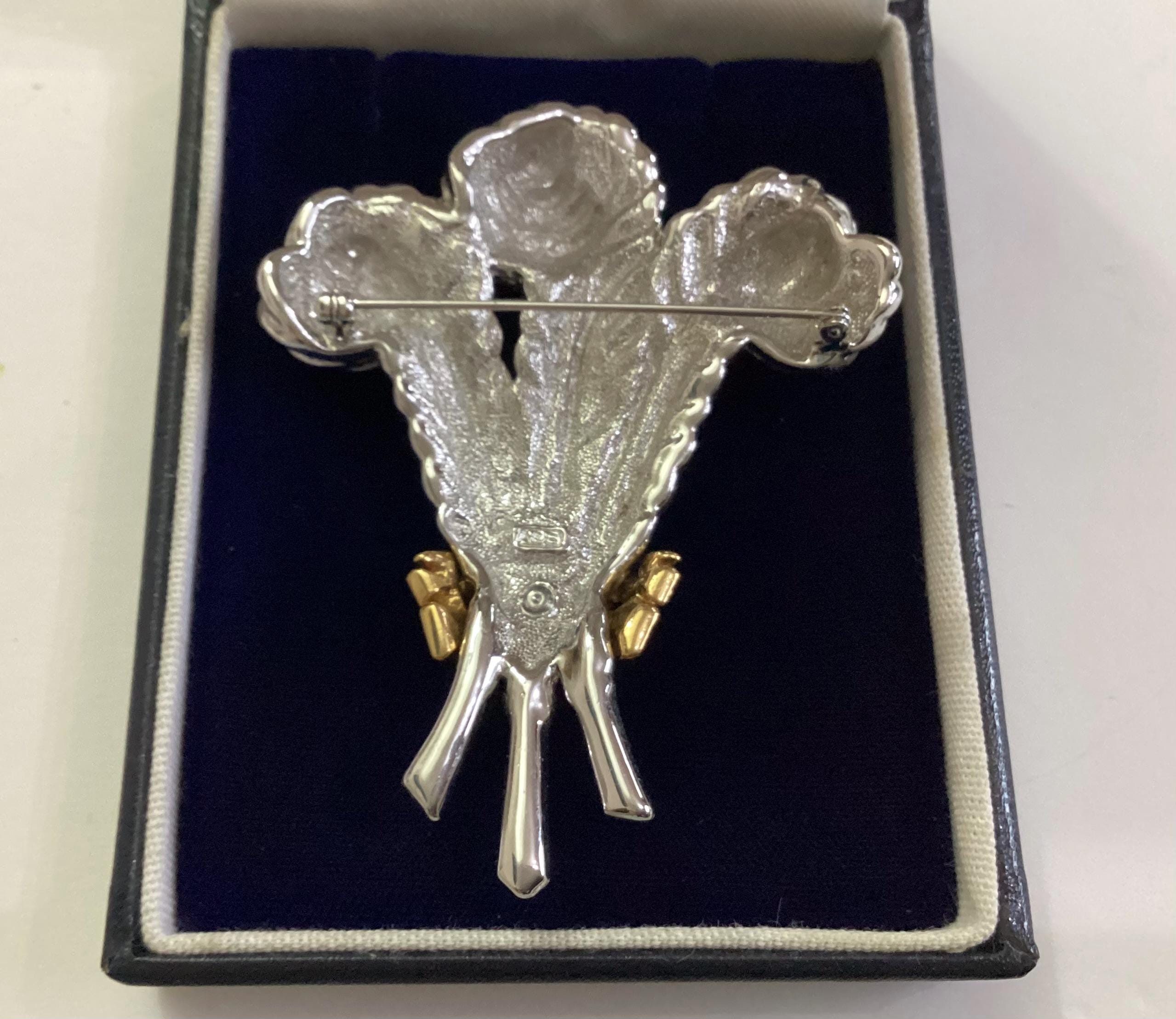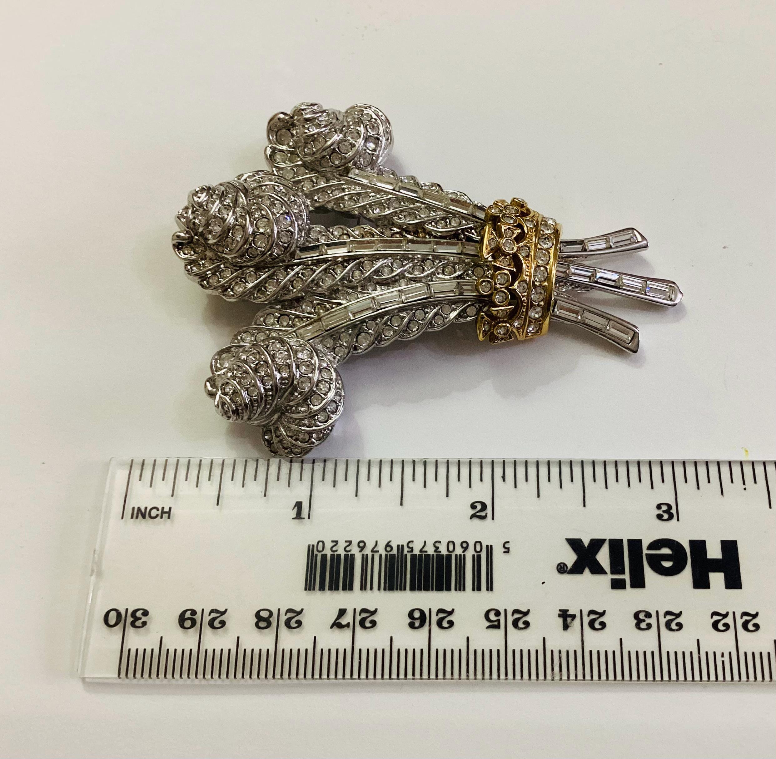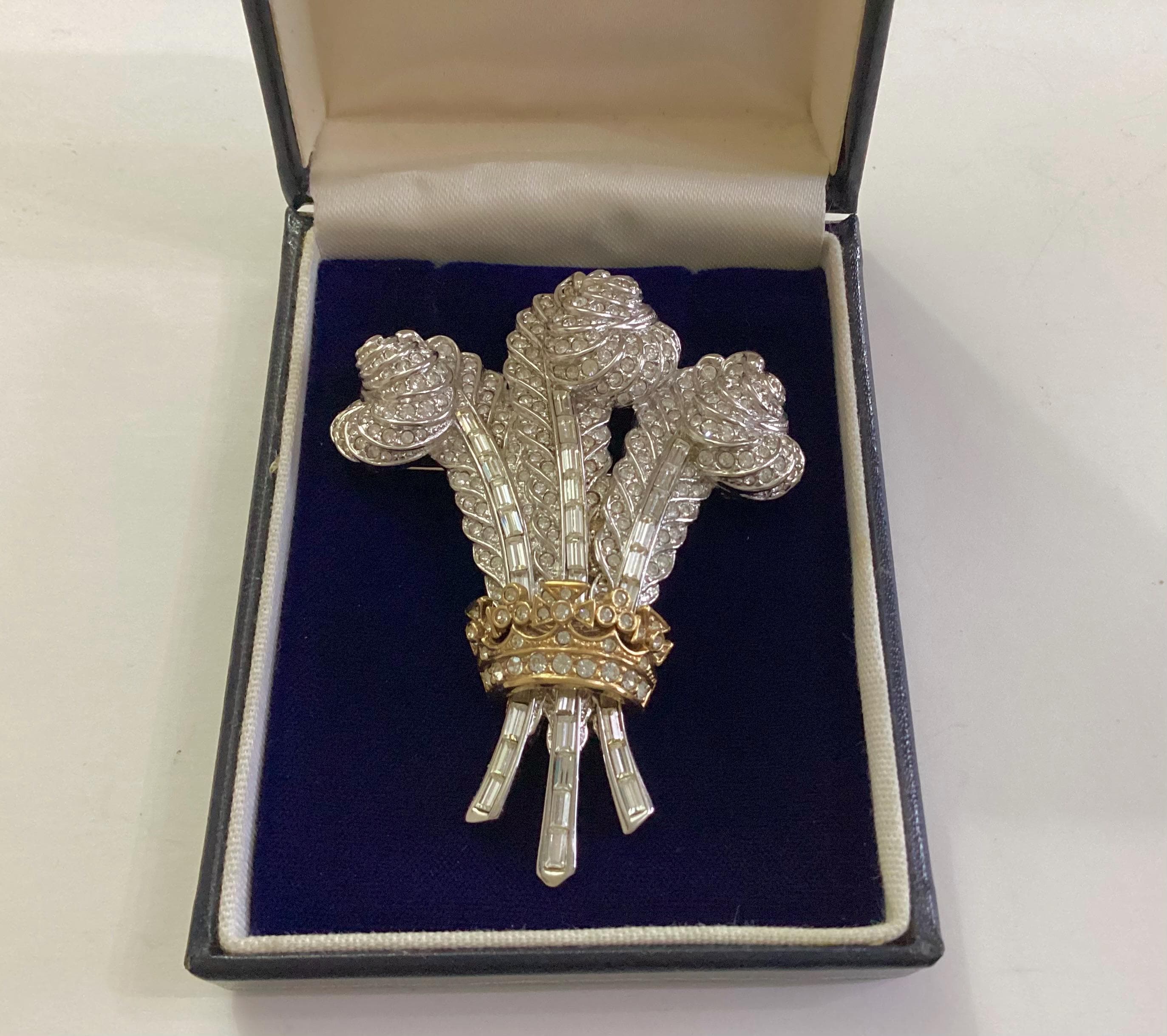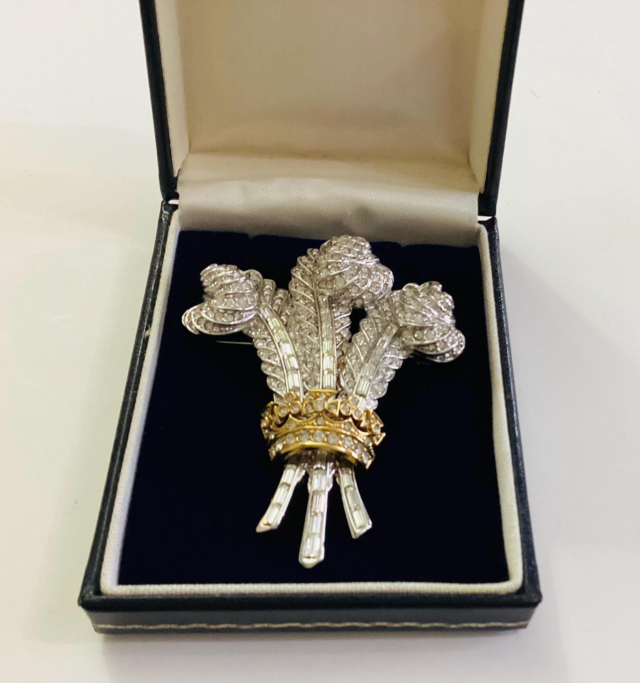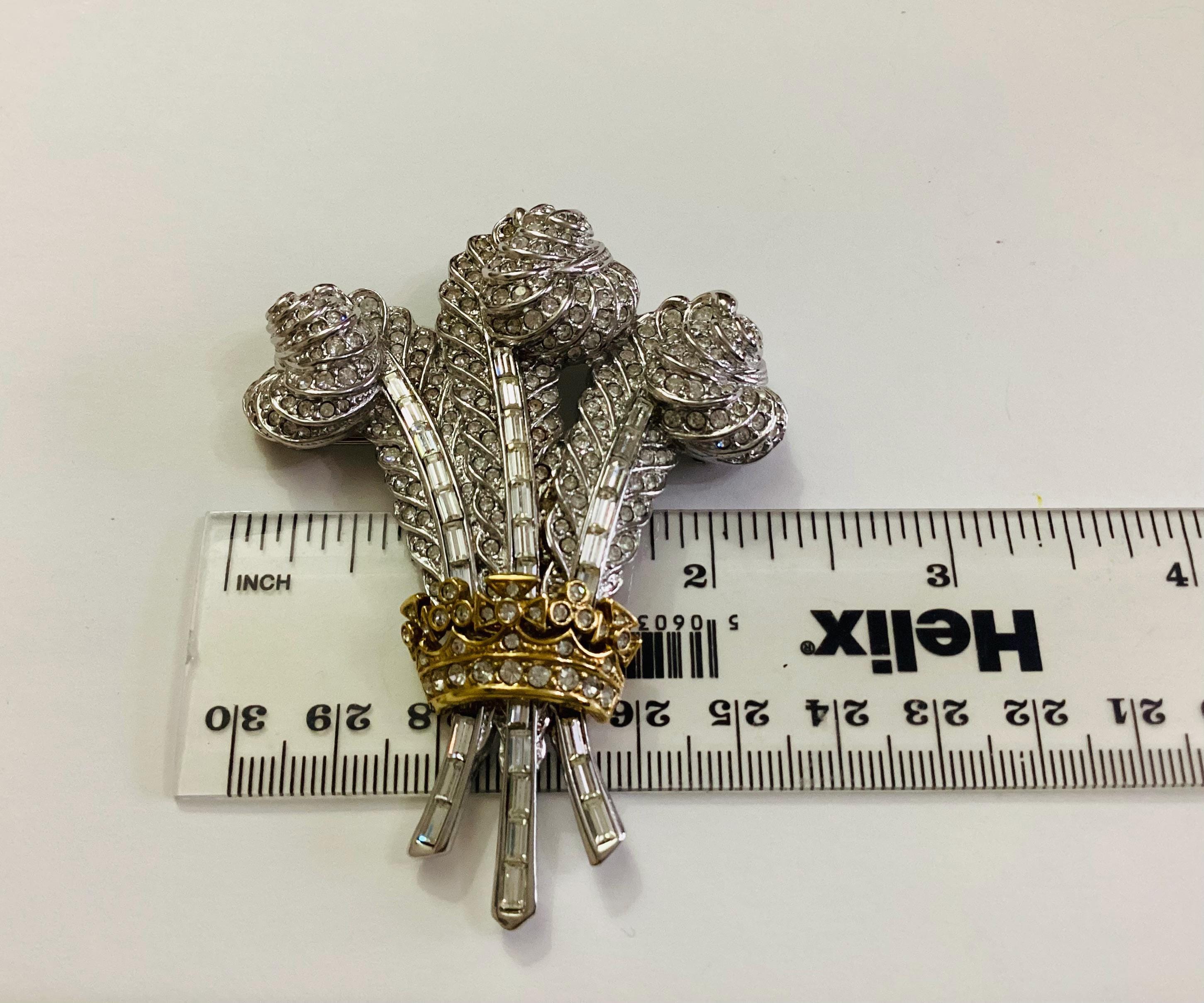 Huge Attwood & Sawyer Prince of Wales Feathers Brooch Vintage Swarovski Crystal. The larger of the two sizes of brooch measuring 3 inches long by 2 1/2 inches wide.