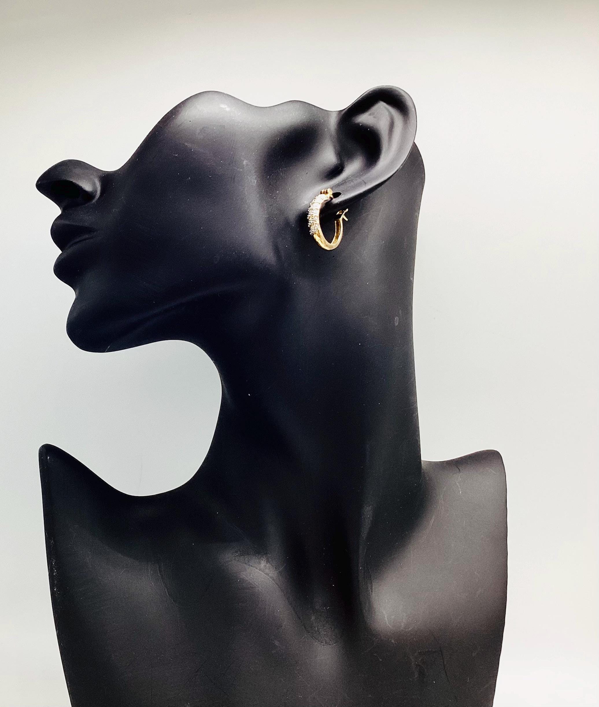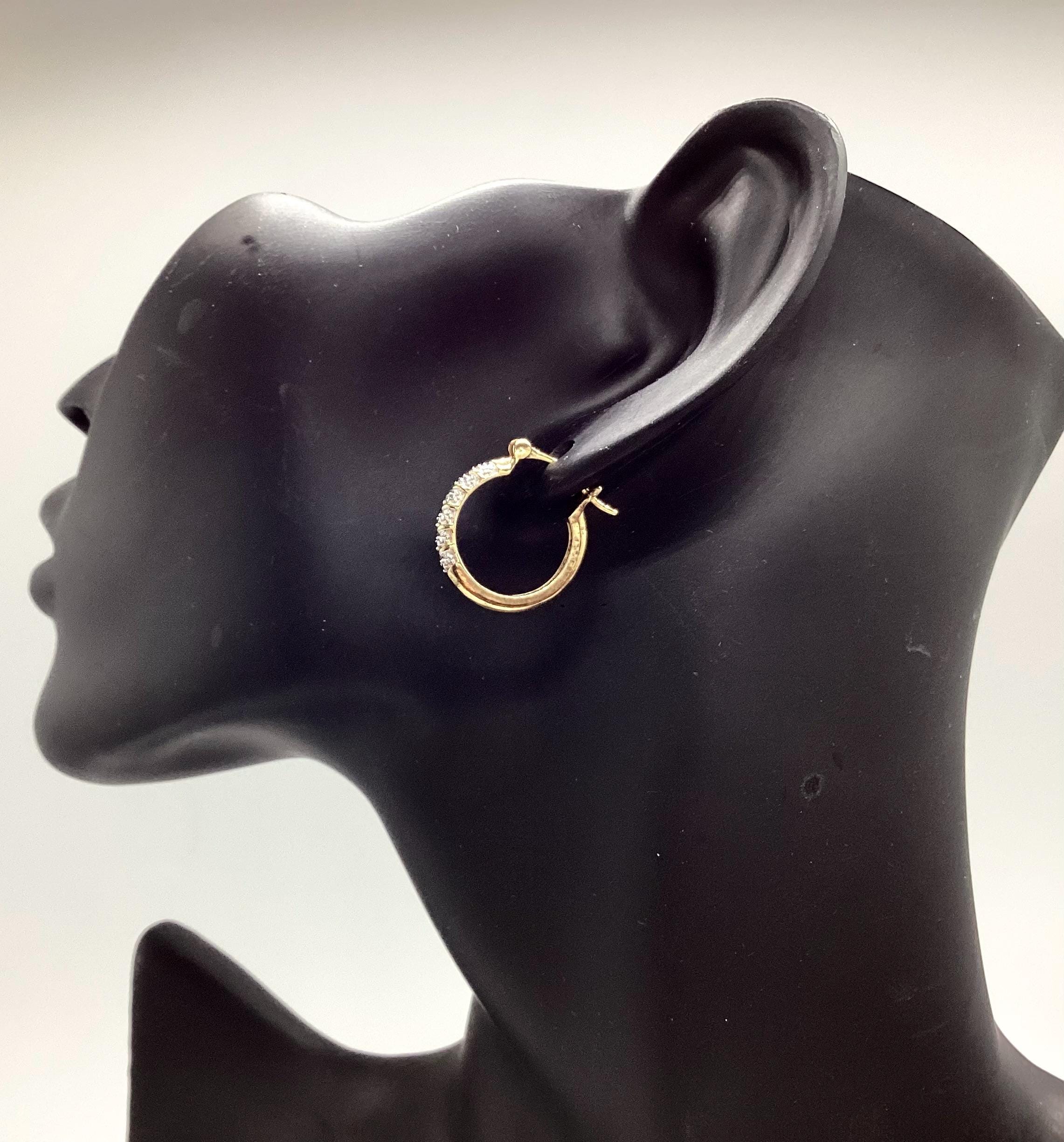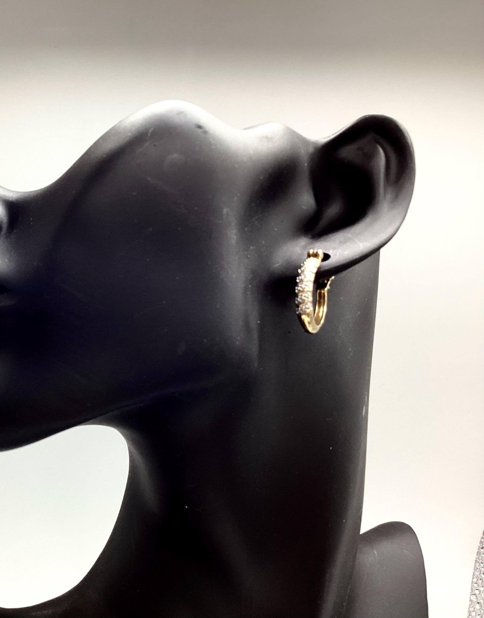 Very pretty half hoop earring in 9ct gold on 925 solid silver. Latch backs in full working order. Beautiful gift or wedding jewellery