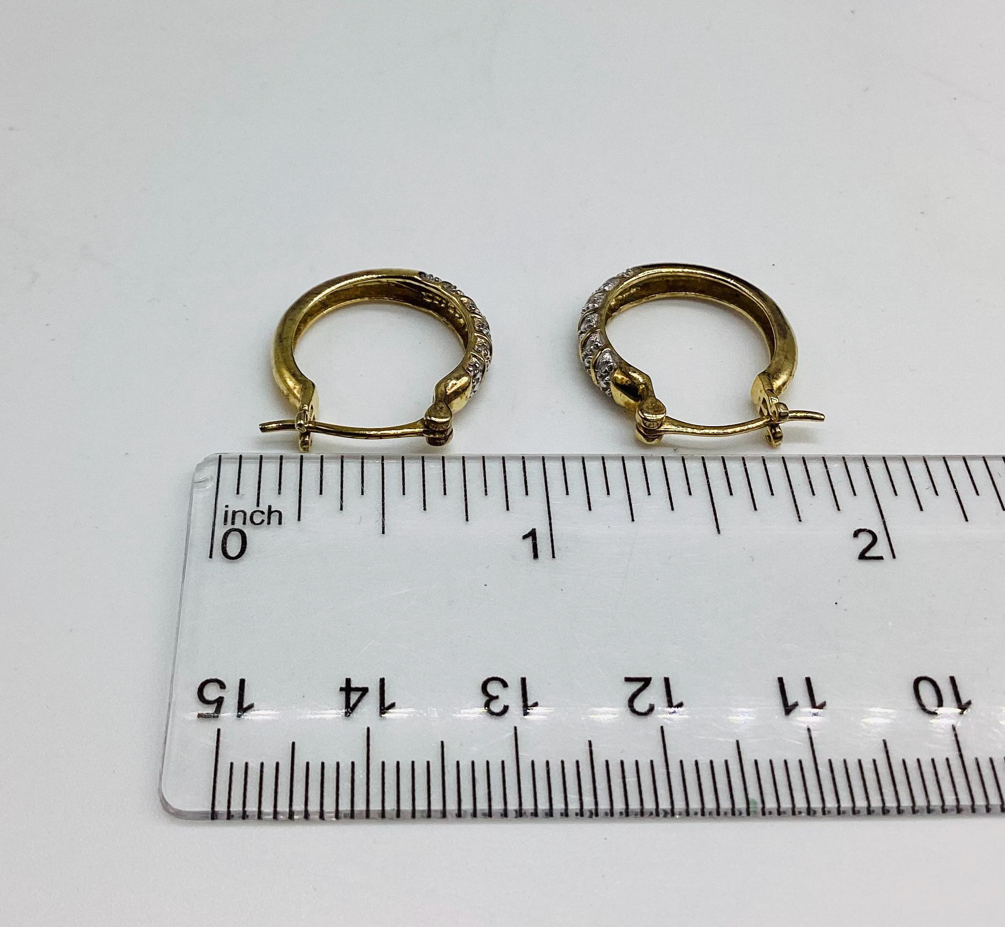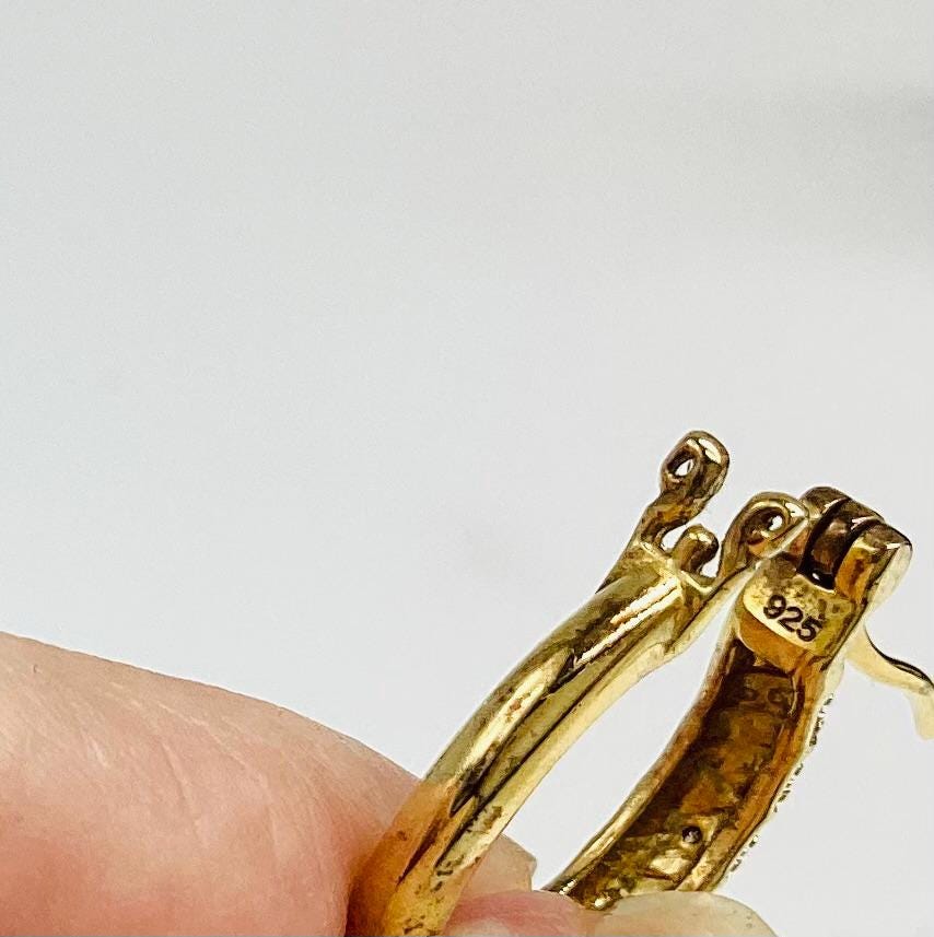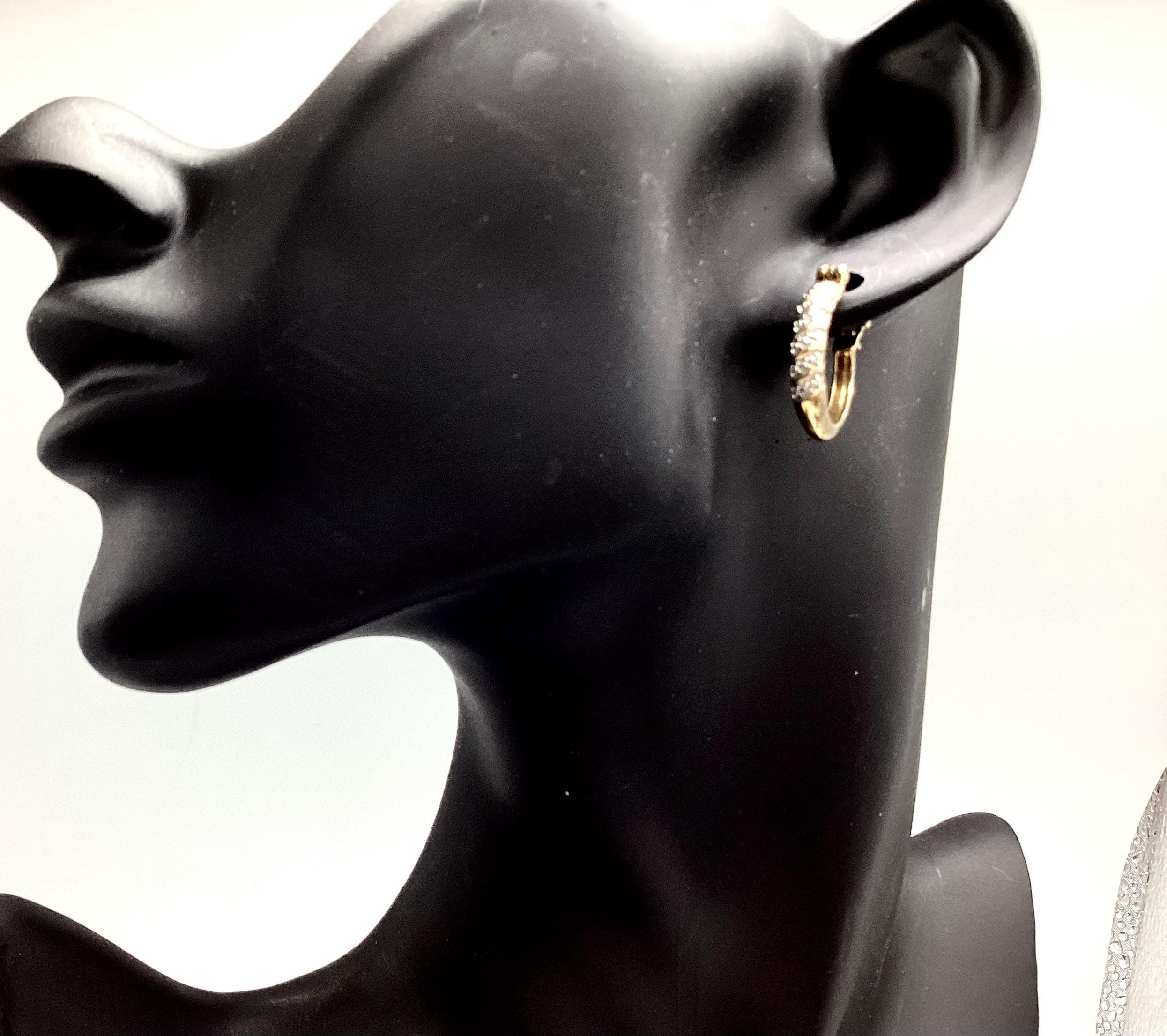 Very pretty half hoop earring in 9ct gold on 925 solid silver. Latch backs in full working order. Beautiful gift or wedding jewellery