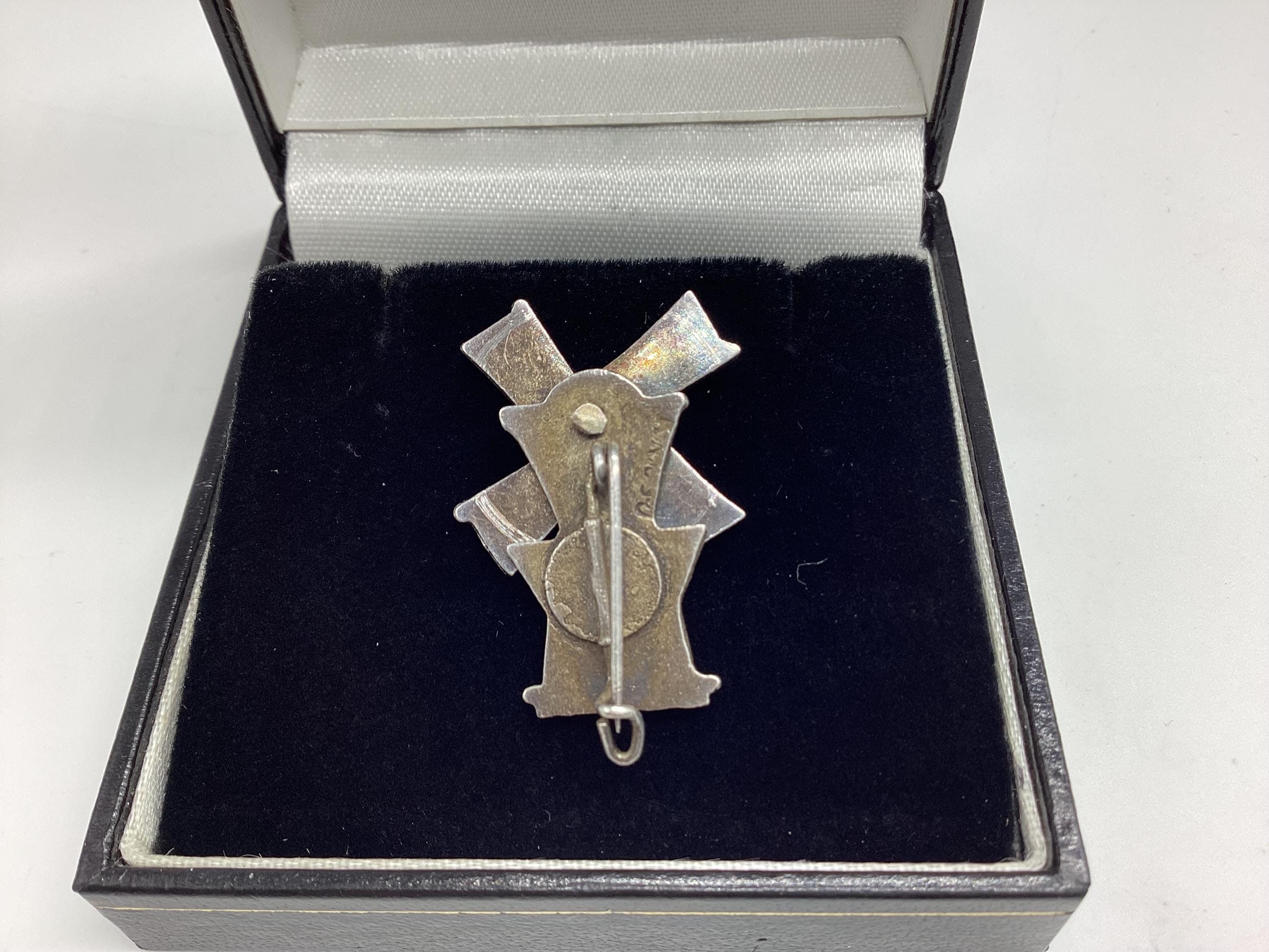 A delightful dainty brooch with moving sales to the windmill. A souvenir item popular from visitors to The Netherlands in the early part of the last century.