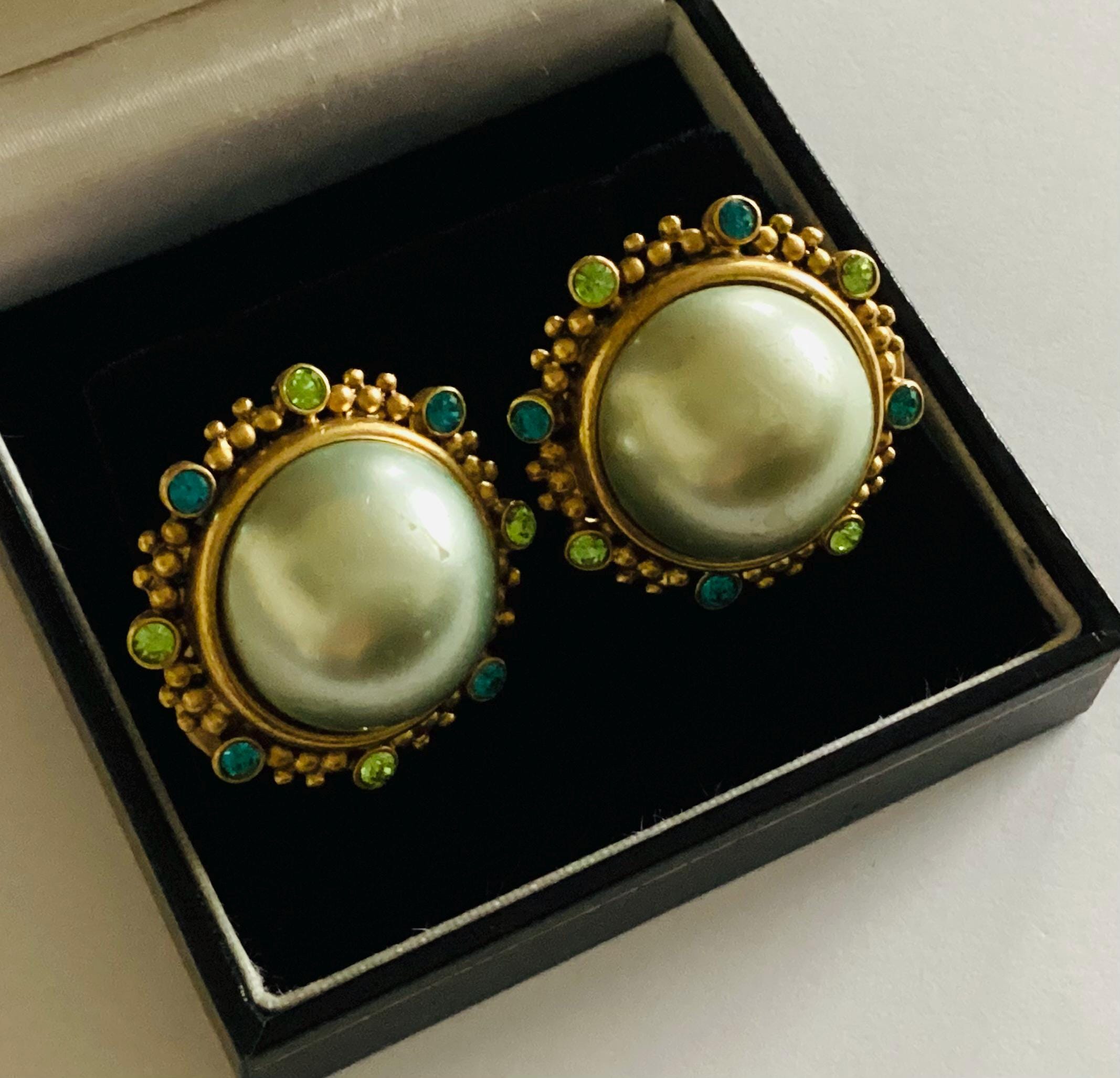 Classic sophisticated pearl and crystal earrings in a gold tone setting.Collectible Joan Rivers jewellery. A vintage item with some signs of use and wear.
