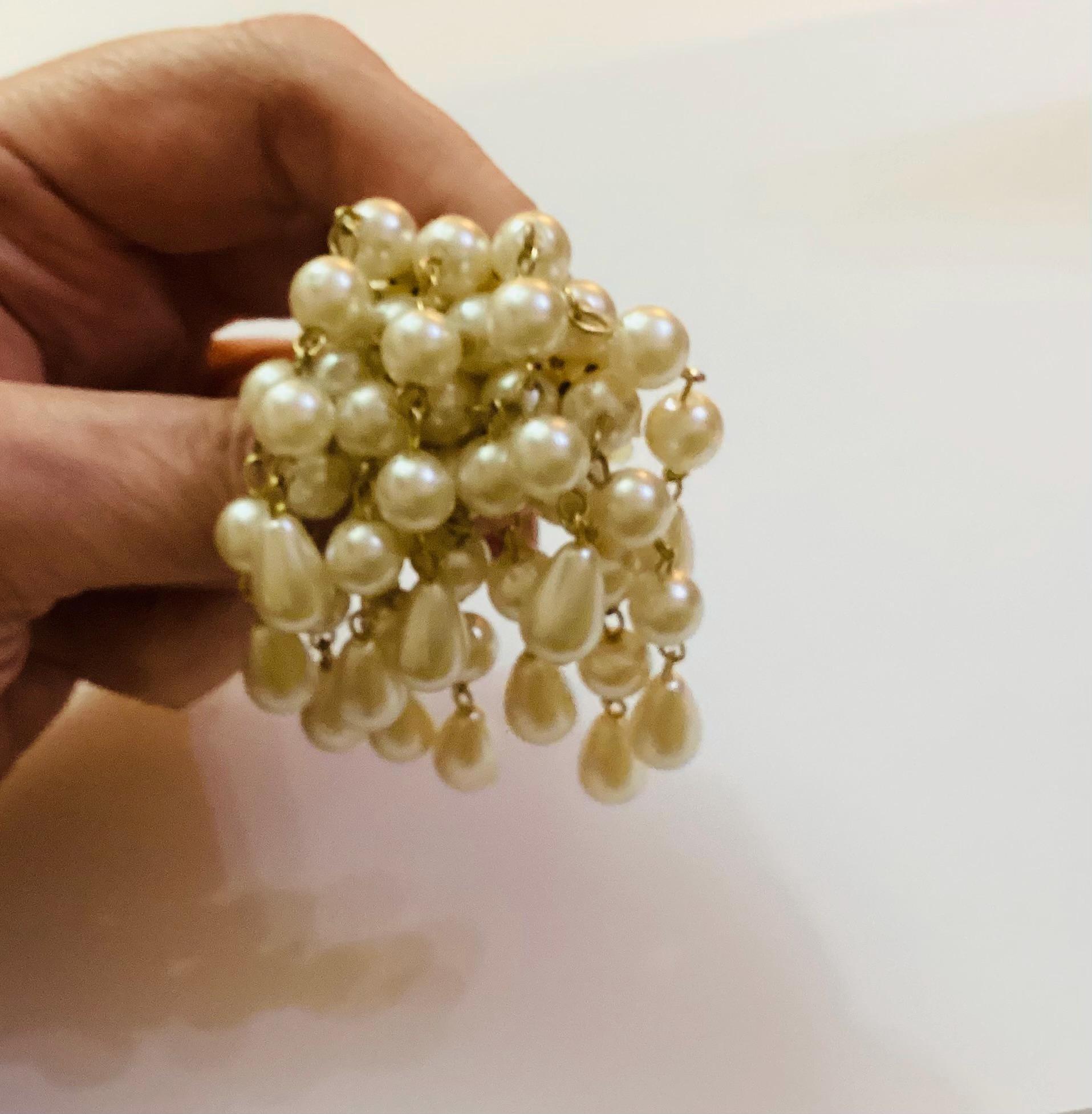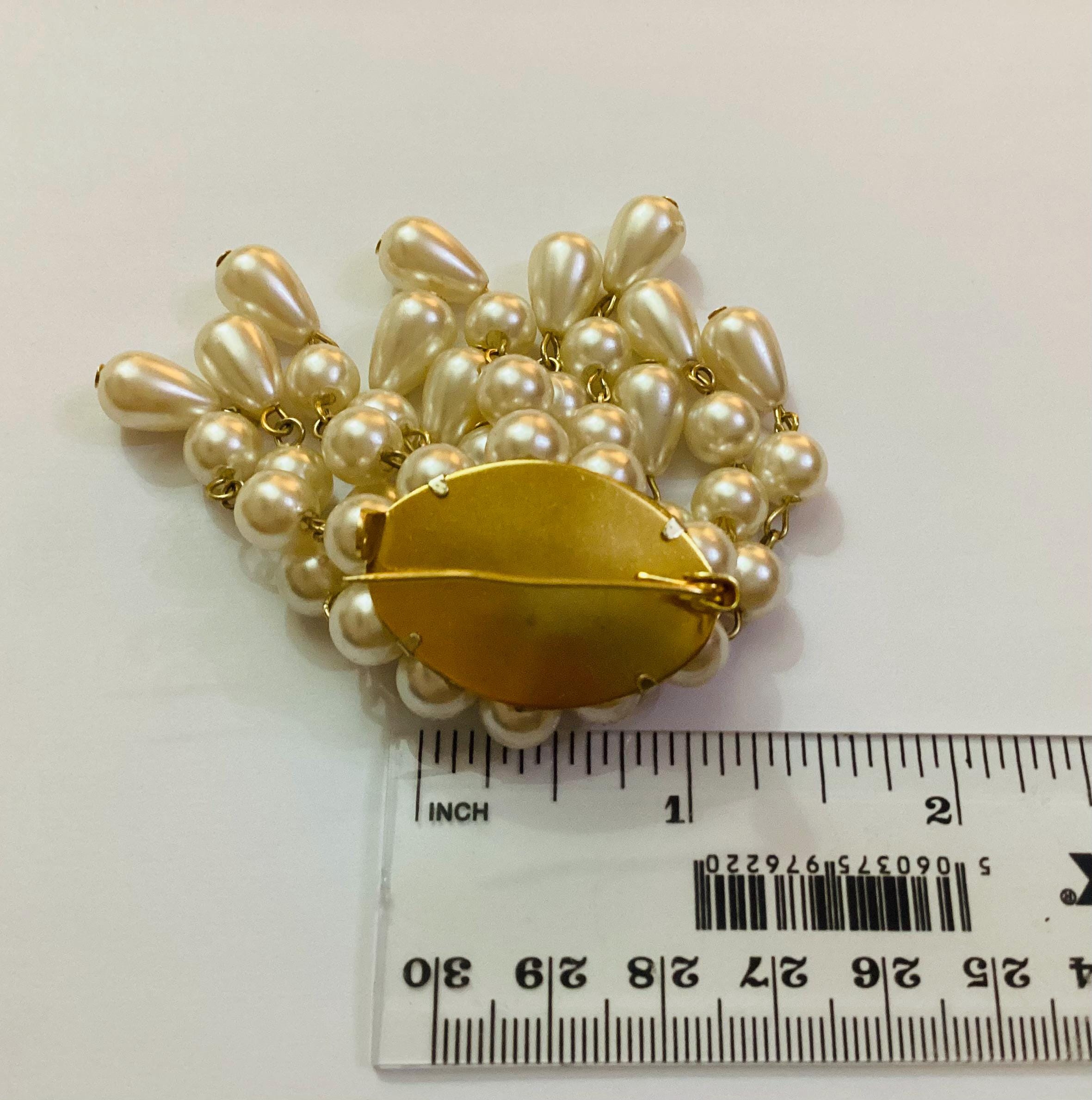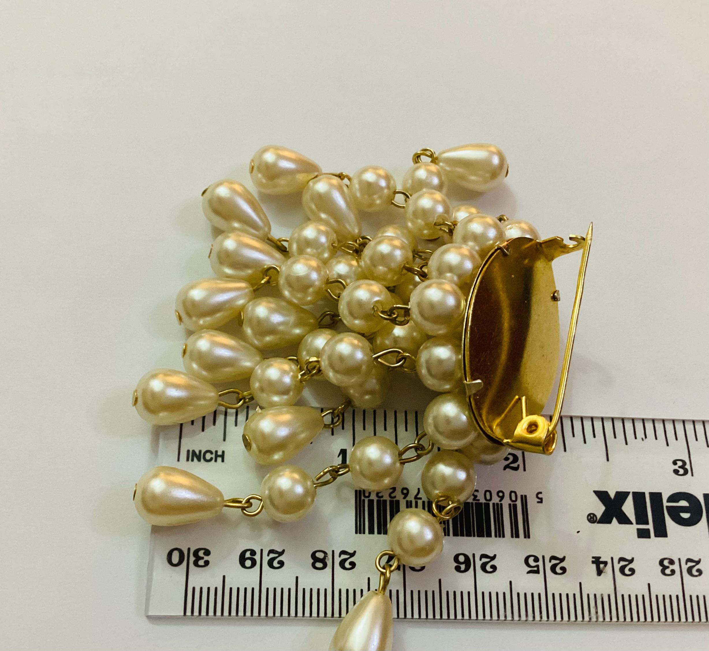 Fabulous cascade brooch featuring a waterfall of faux pearls. Straight out of the 1980s. In excellent condition.