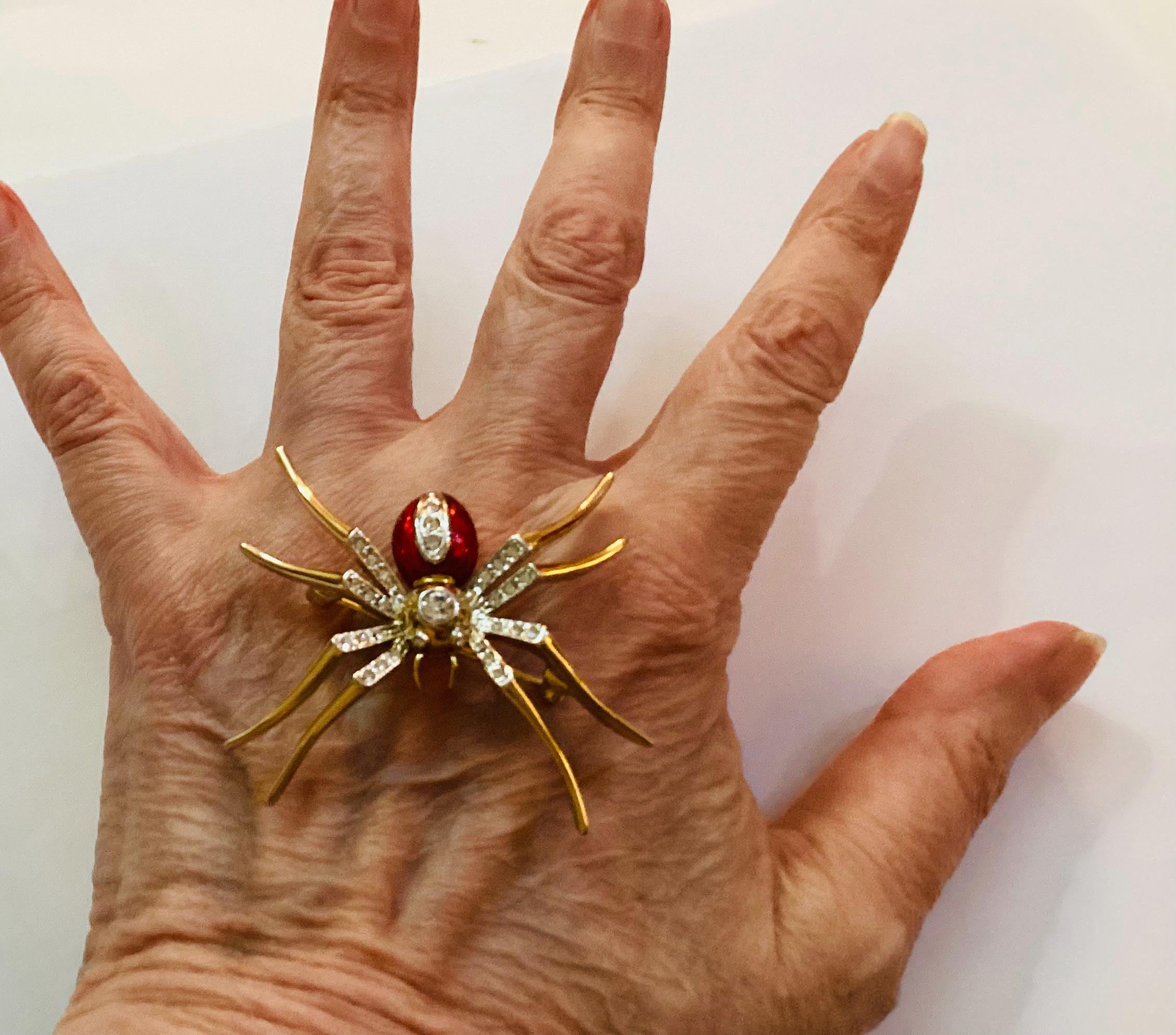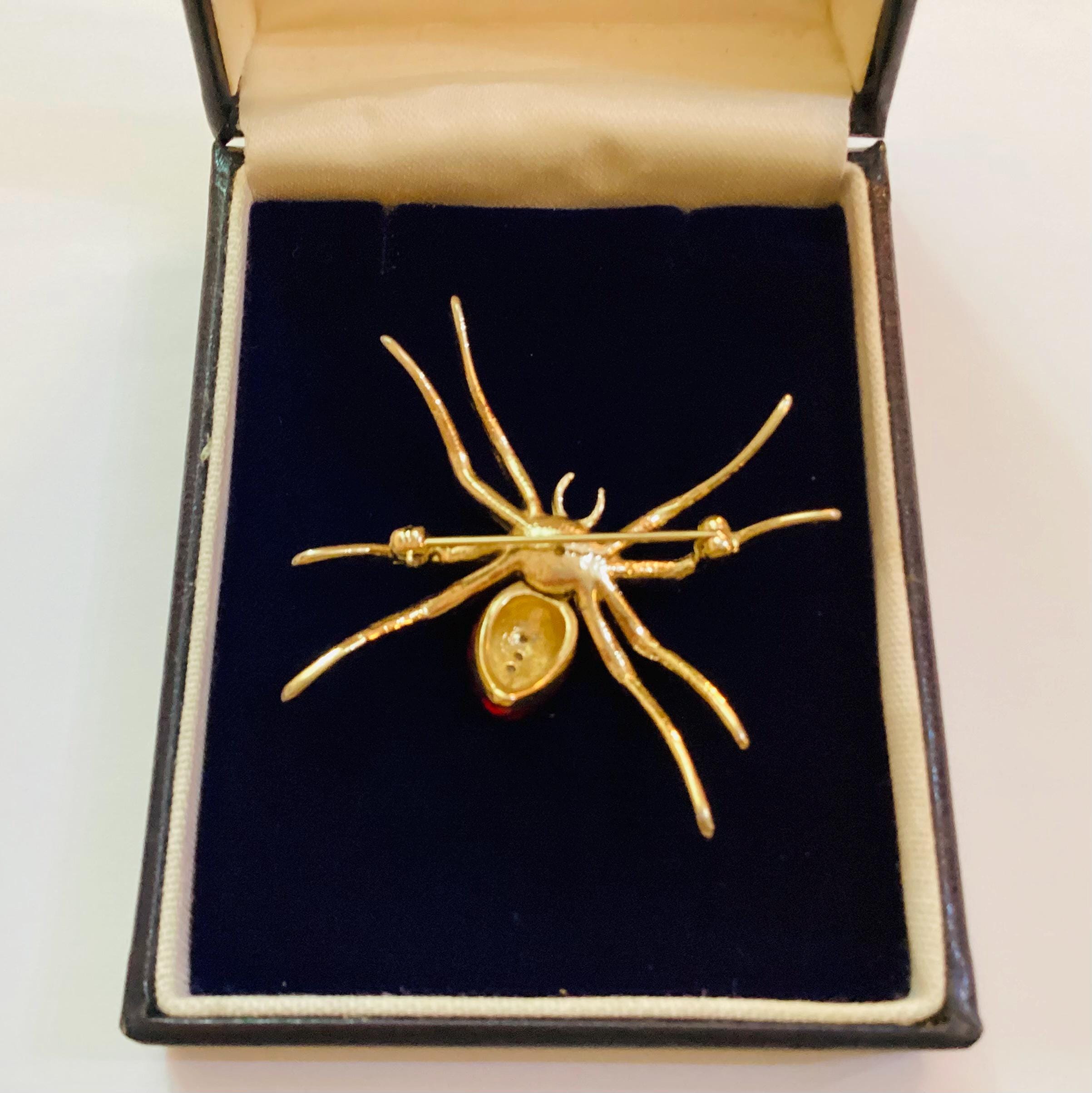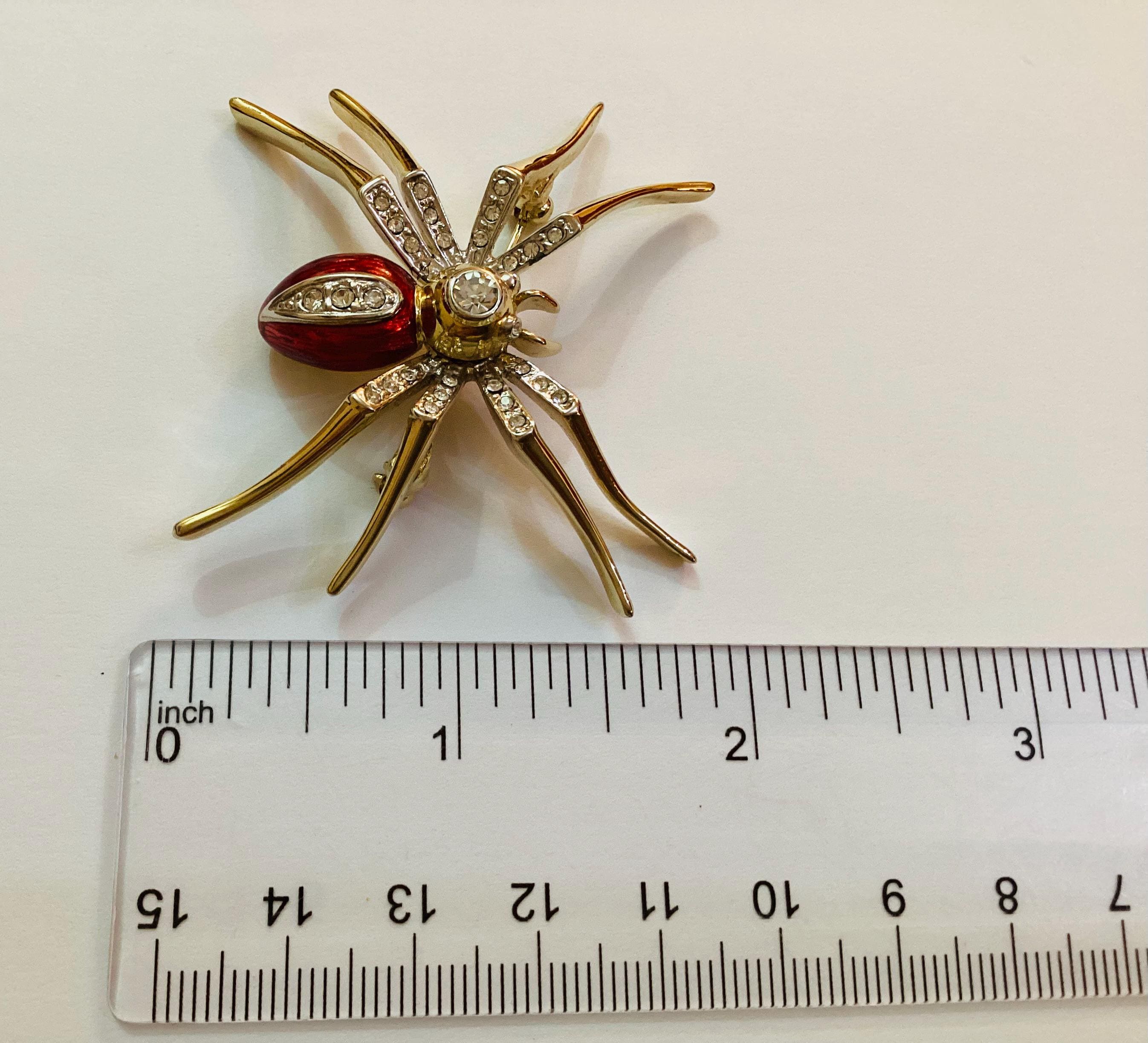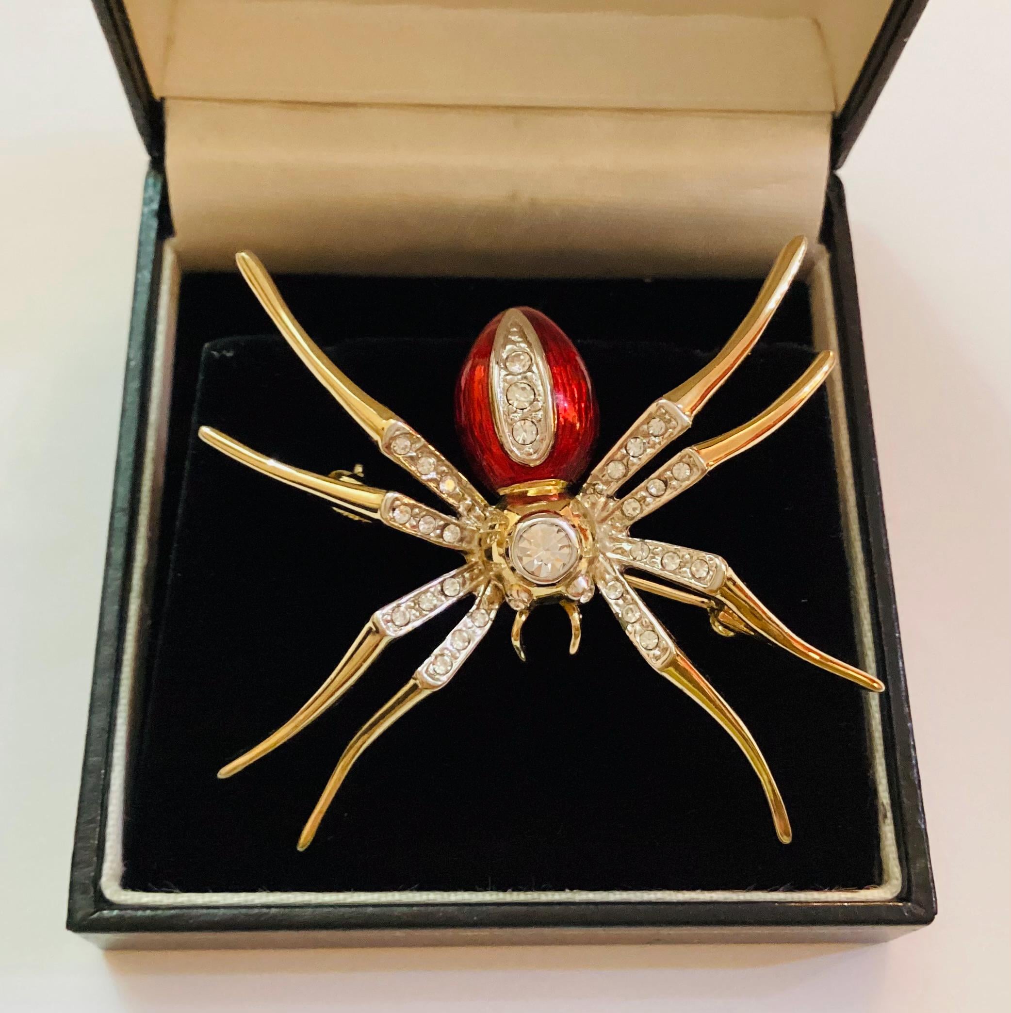 A stunning gold plated brooch set with dazzling crystals and stunning red enamel. Dating from the era of Dallas and Dynasty a truly glamorous piece of jewellery.