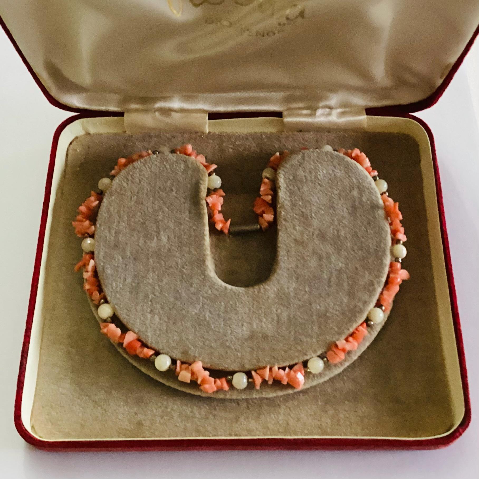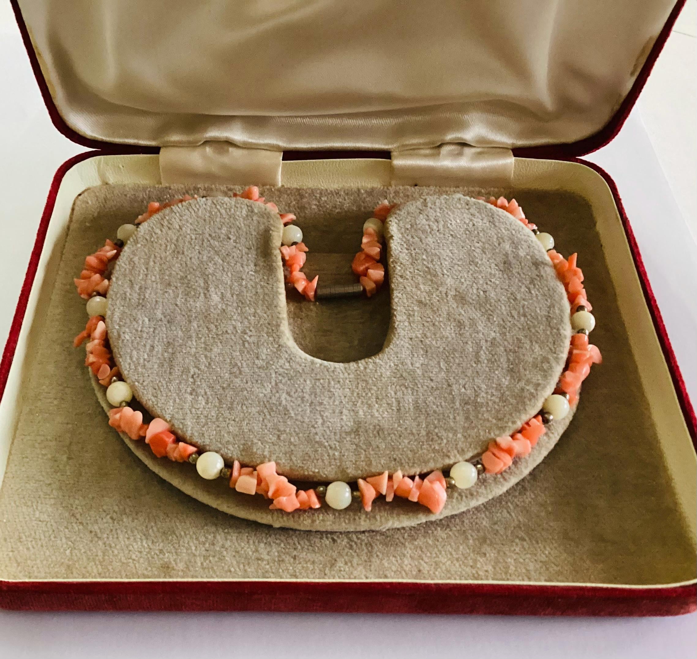 These super necklaces were very popular during the forties and fifties as the first piece of proper jewellery for girls or teenagers and I love this idea. Perfect for wedding or bridesmaid jewellery. I have several for sale at the moment, in various combinations of pretty gemstones and pearls. So versatile just as good with a white shirt and T shirt as with an evening dress. I have a particular passion for coral jewellery in all shape and form.