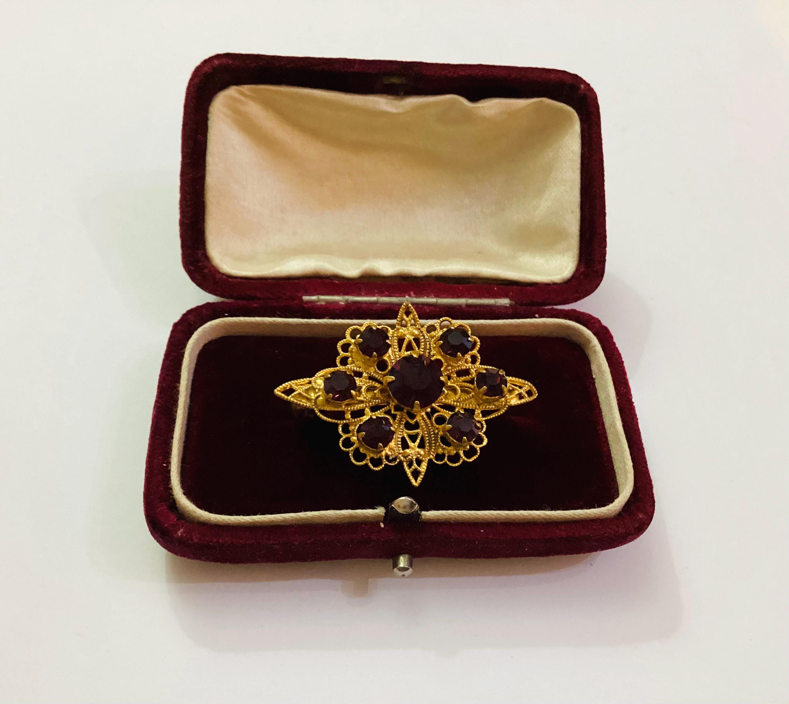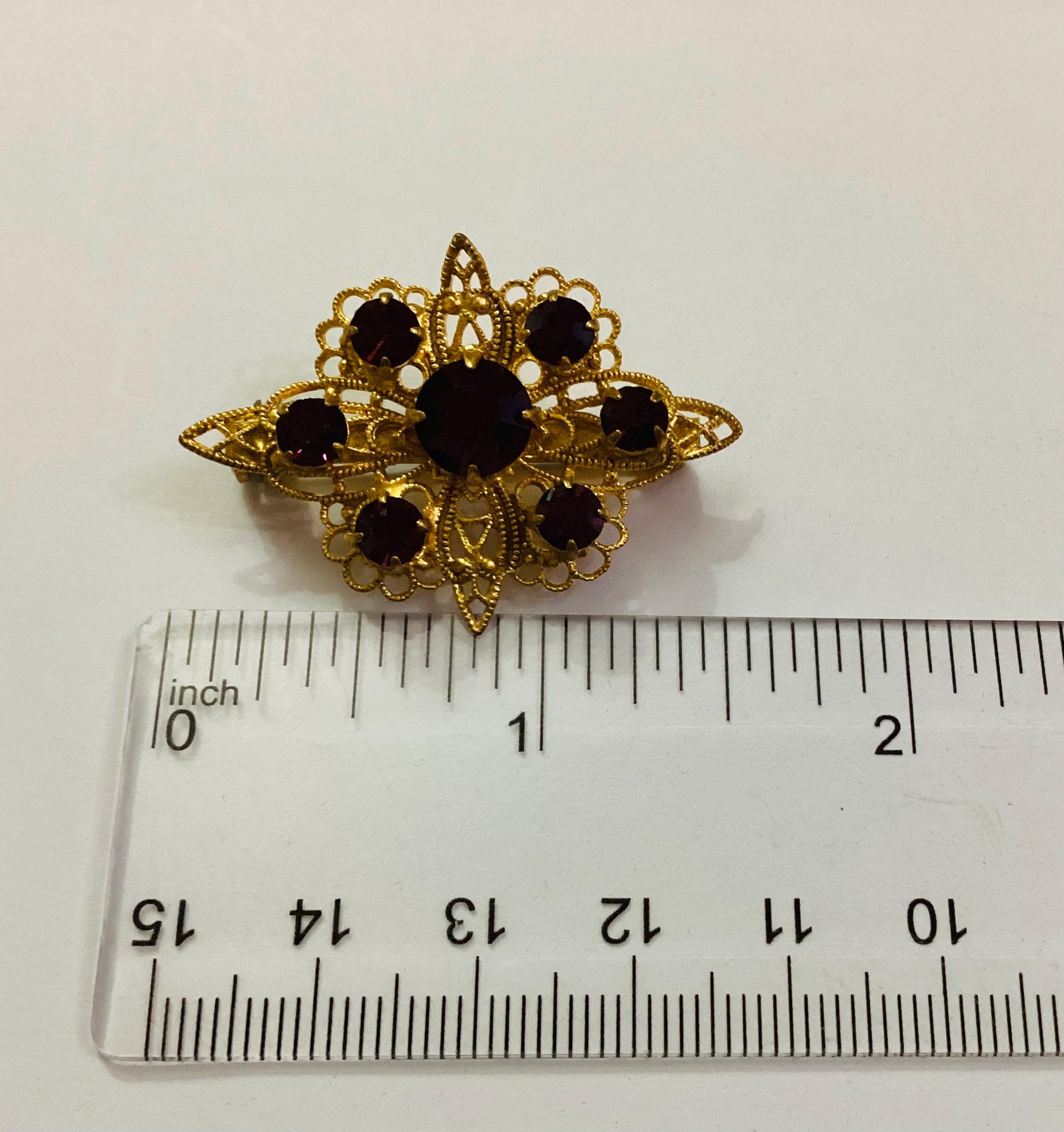 I have several pieces of Czech jewellery for sale at the moment. This is a dainty brooch in lovely clean condition; the brass is original bright and the crystal are a lovely deep amethyst.
