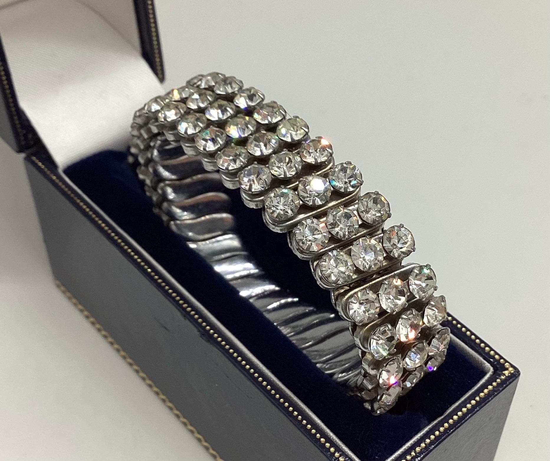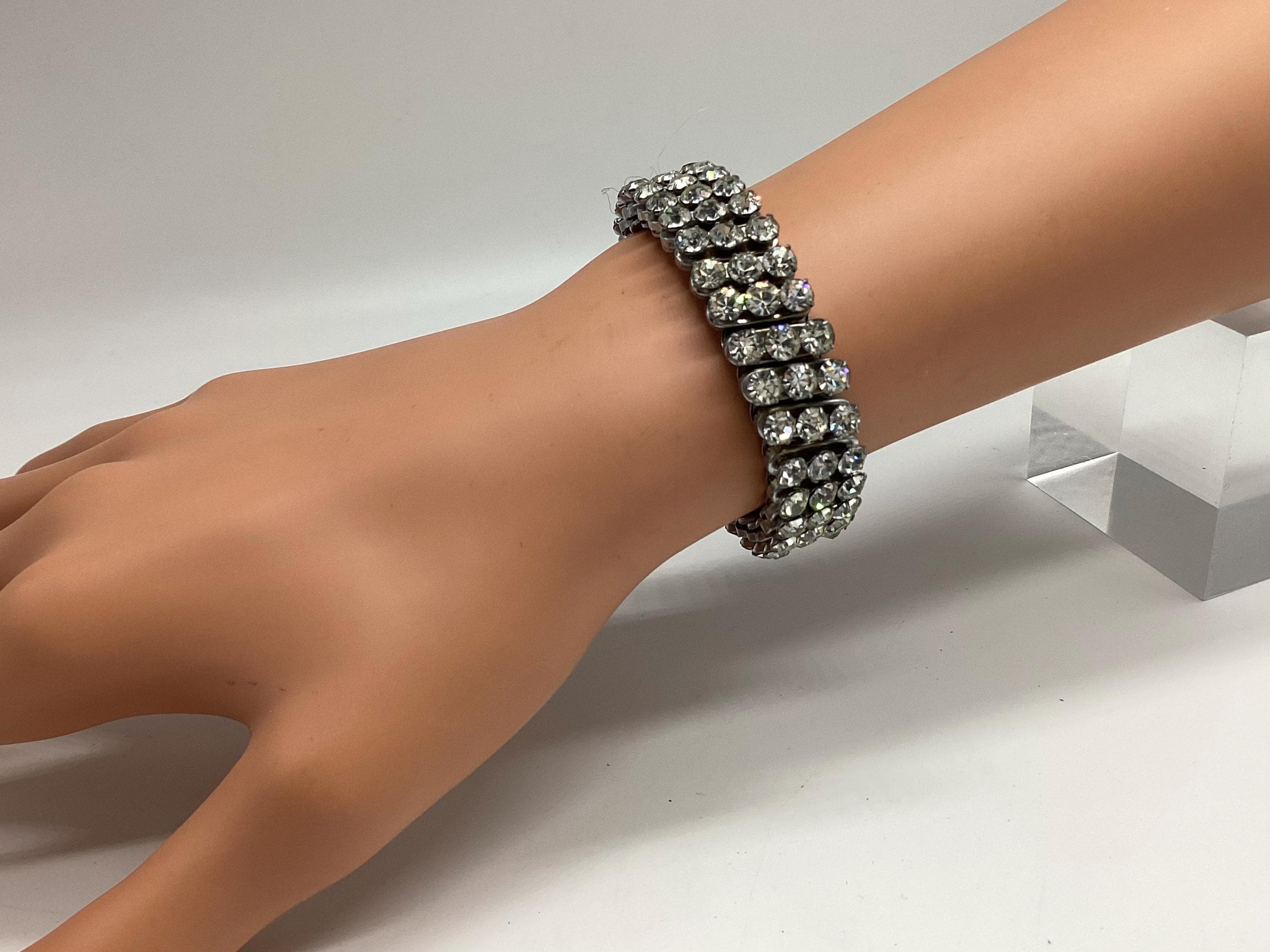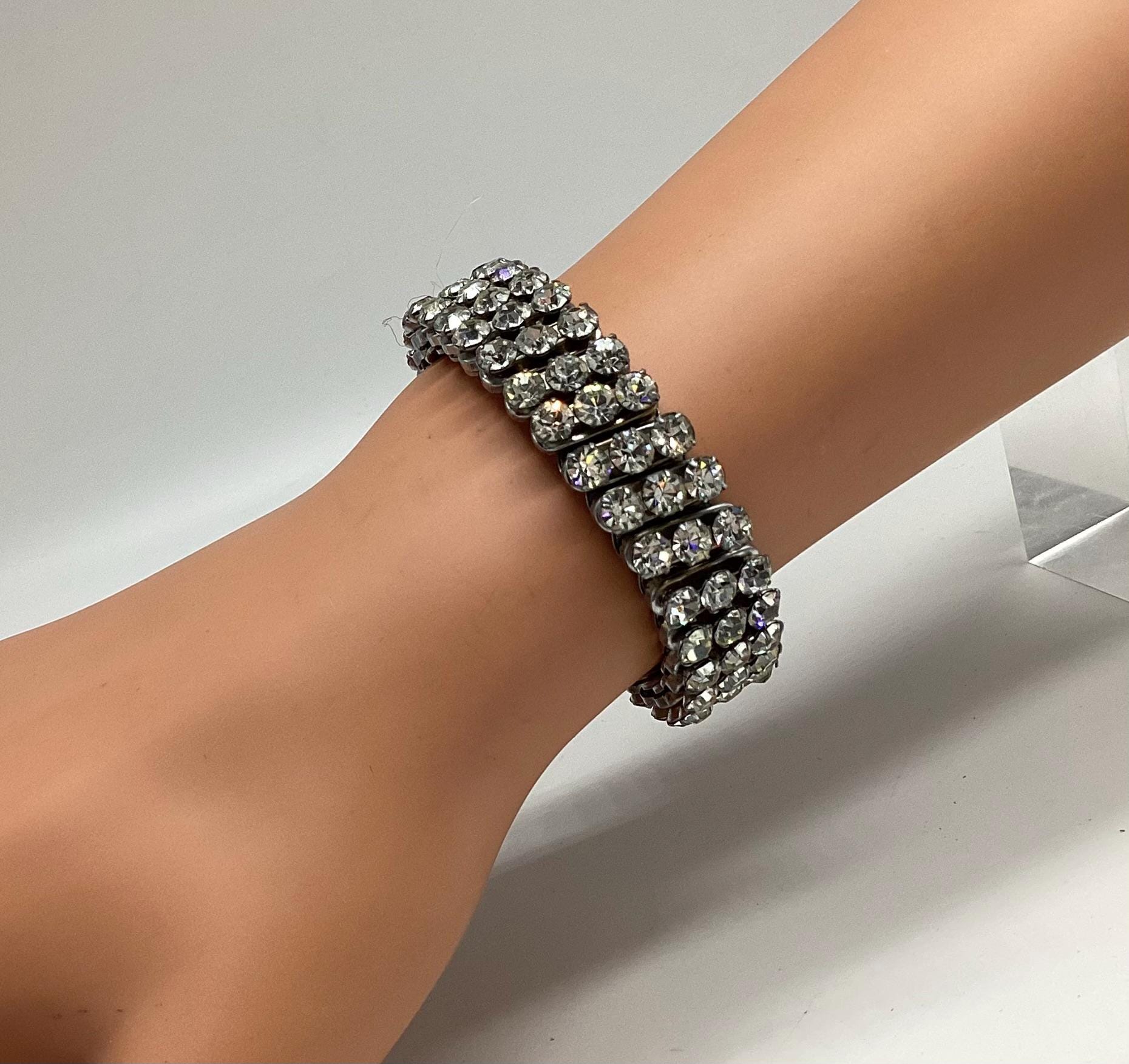 A stunning sparkling diamente bracelet. Three rows of quality diamente crystals all in lovely clean condition with no discolouration or yellowing. Just the thing to glamorise any outfit for day or evening.