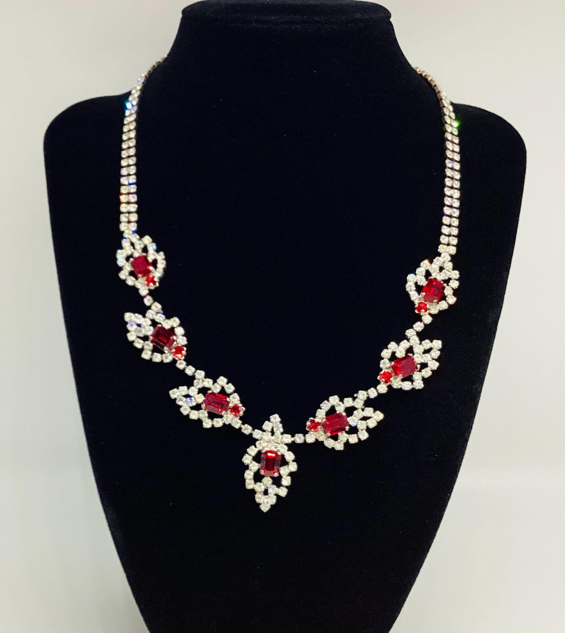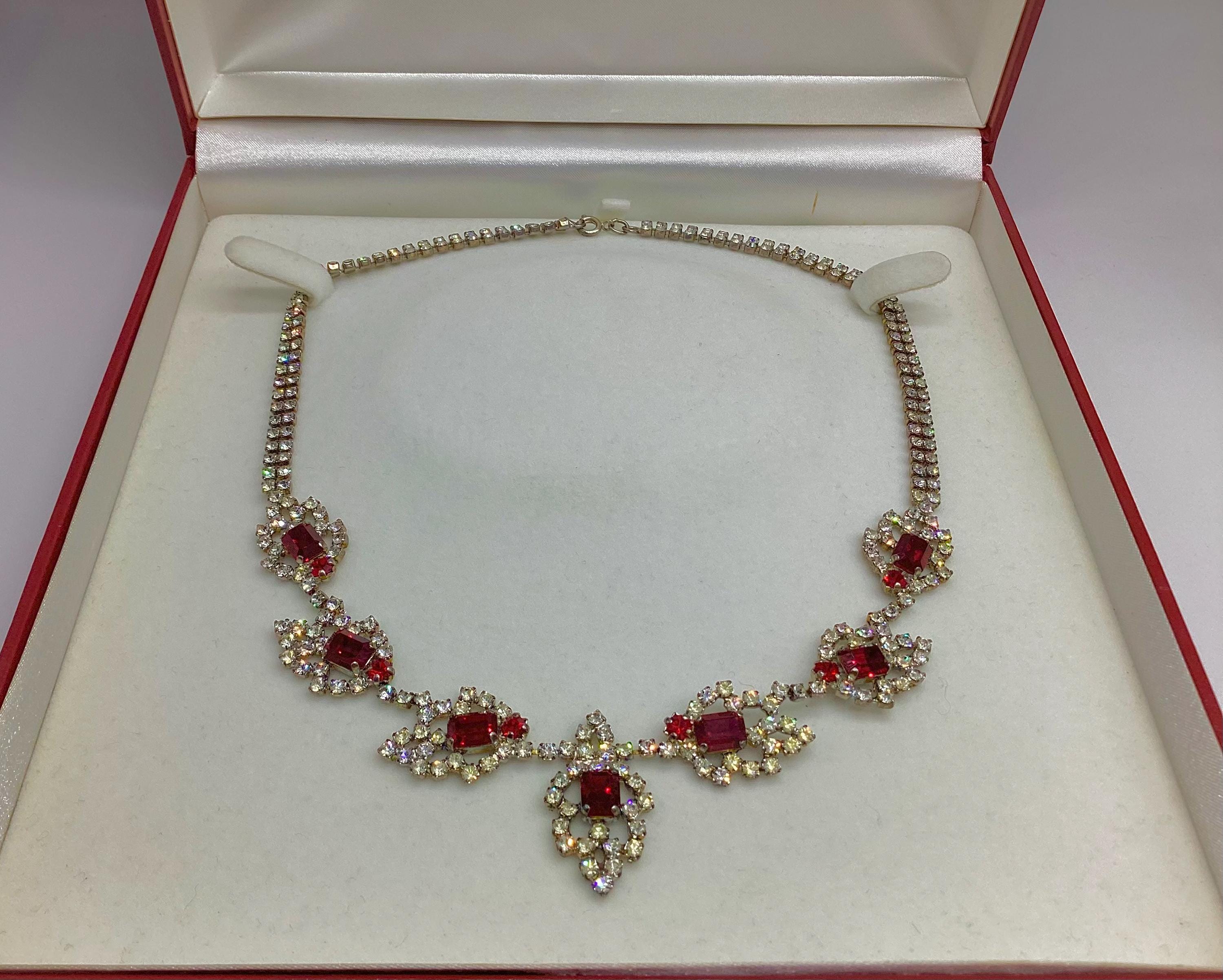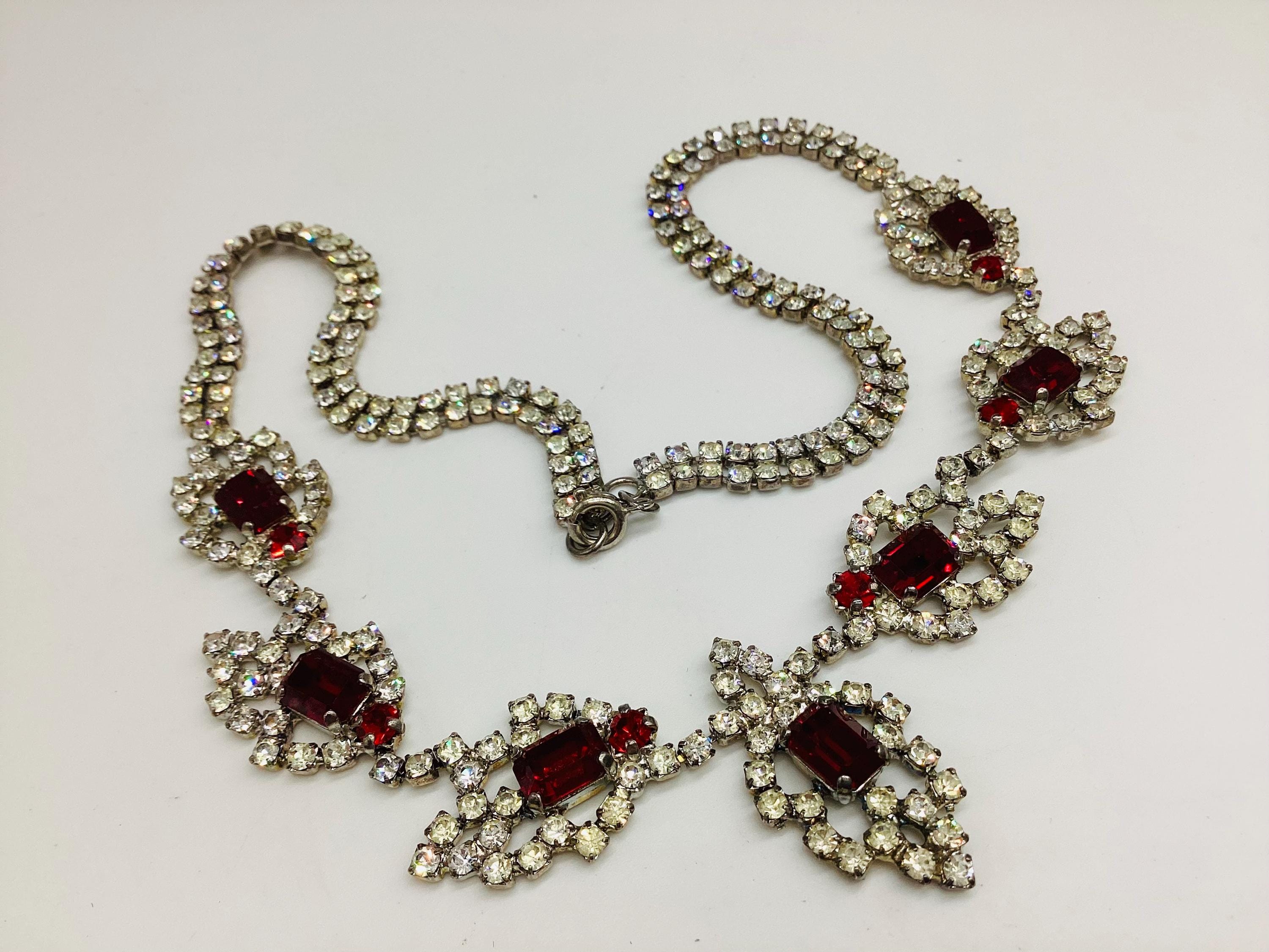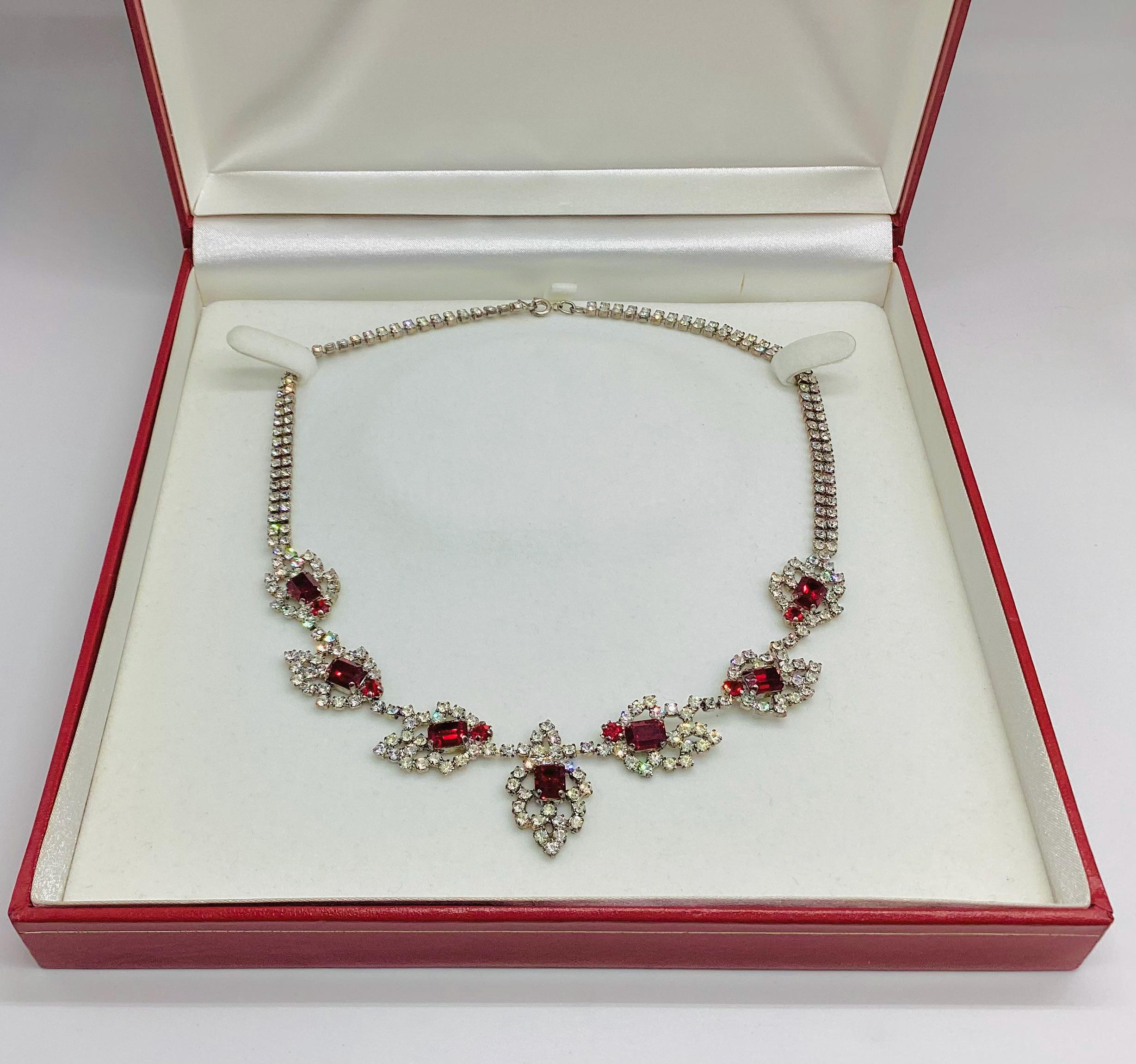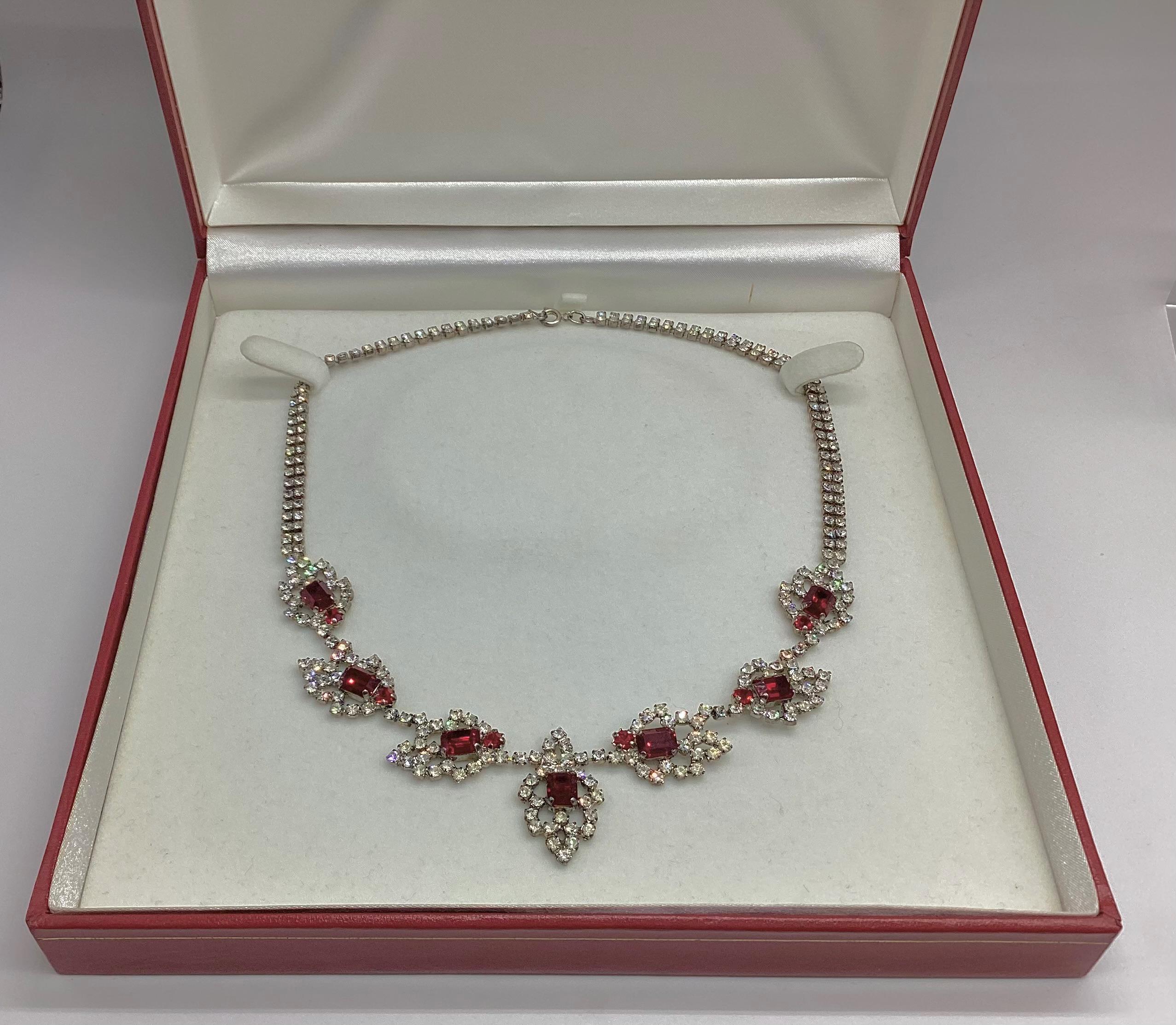 A stunning true vintage, C1950's rhinestone bib necklace. Sparkling diamente jewels in a lovely clean bright condition, no yellowing or loss of brightness.