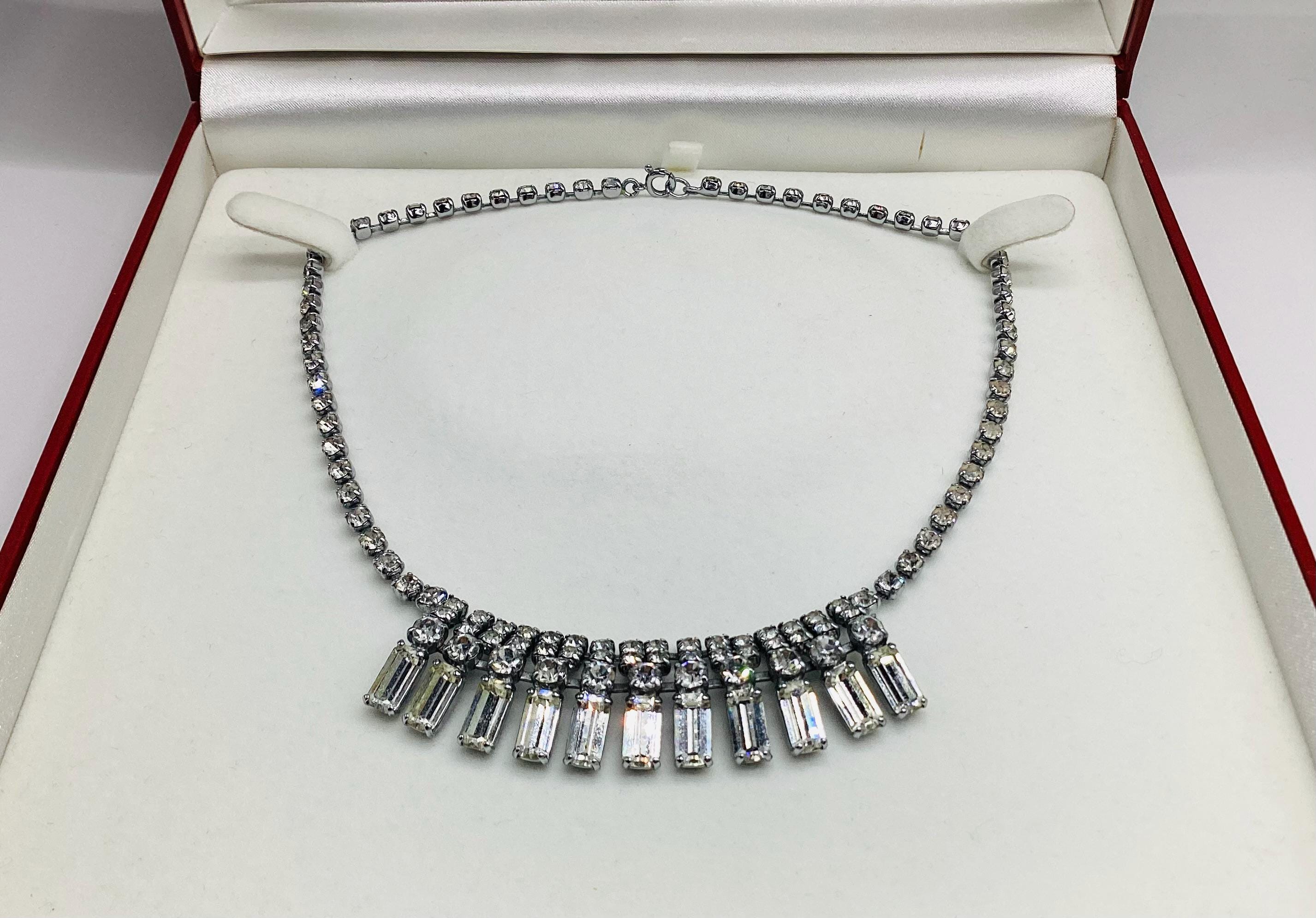 Super sparkle with the most beautiful diamente necklace. Who needs diamonds. All ready for the party season. Lovely wedding necklace for bride or bridesmaid. Excellent condition stones all clear and sparkling no discolouration.