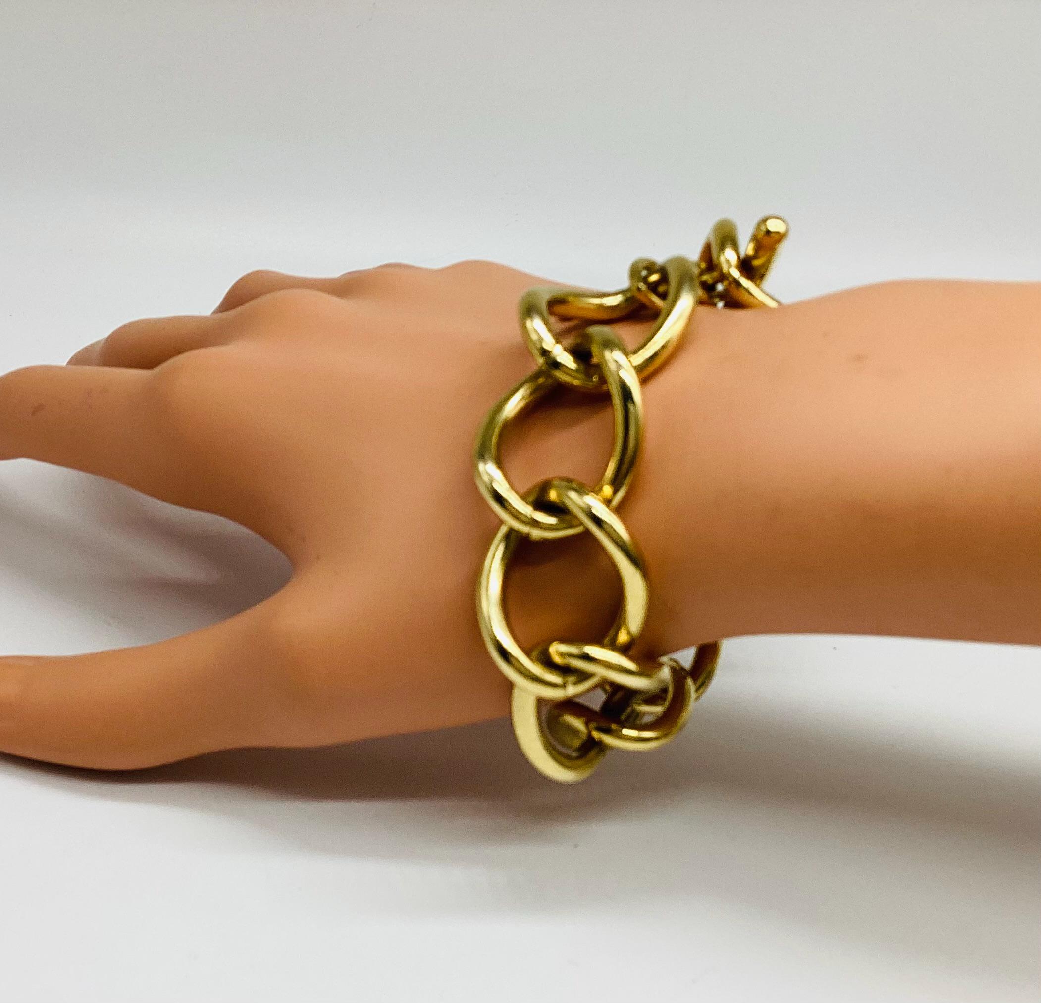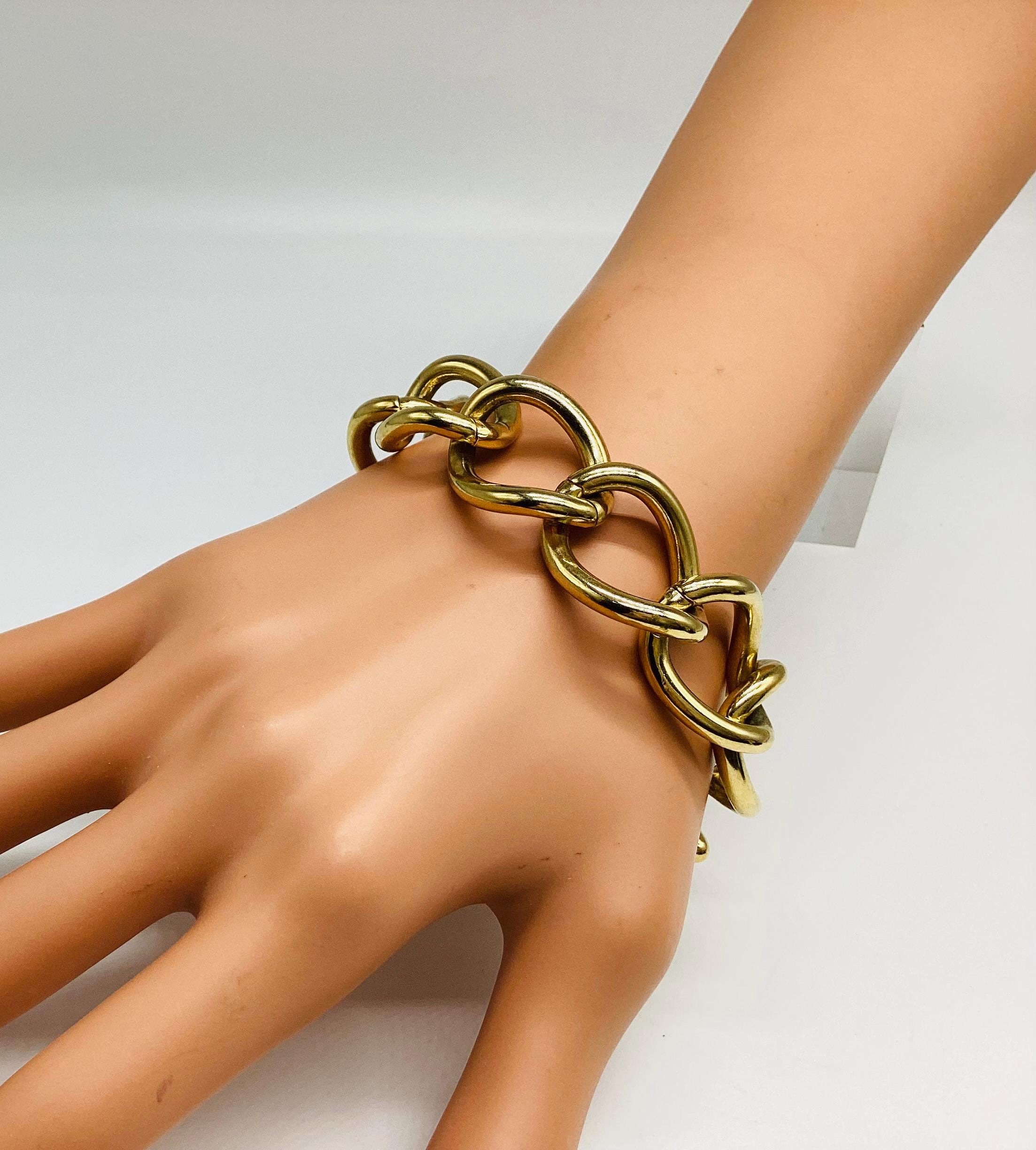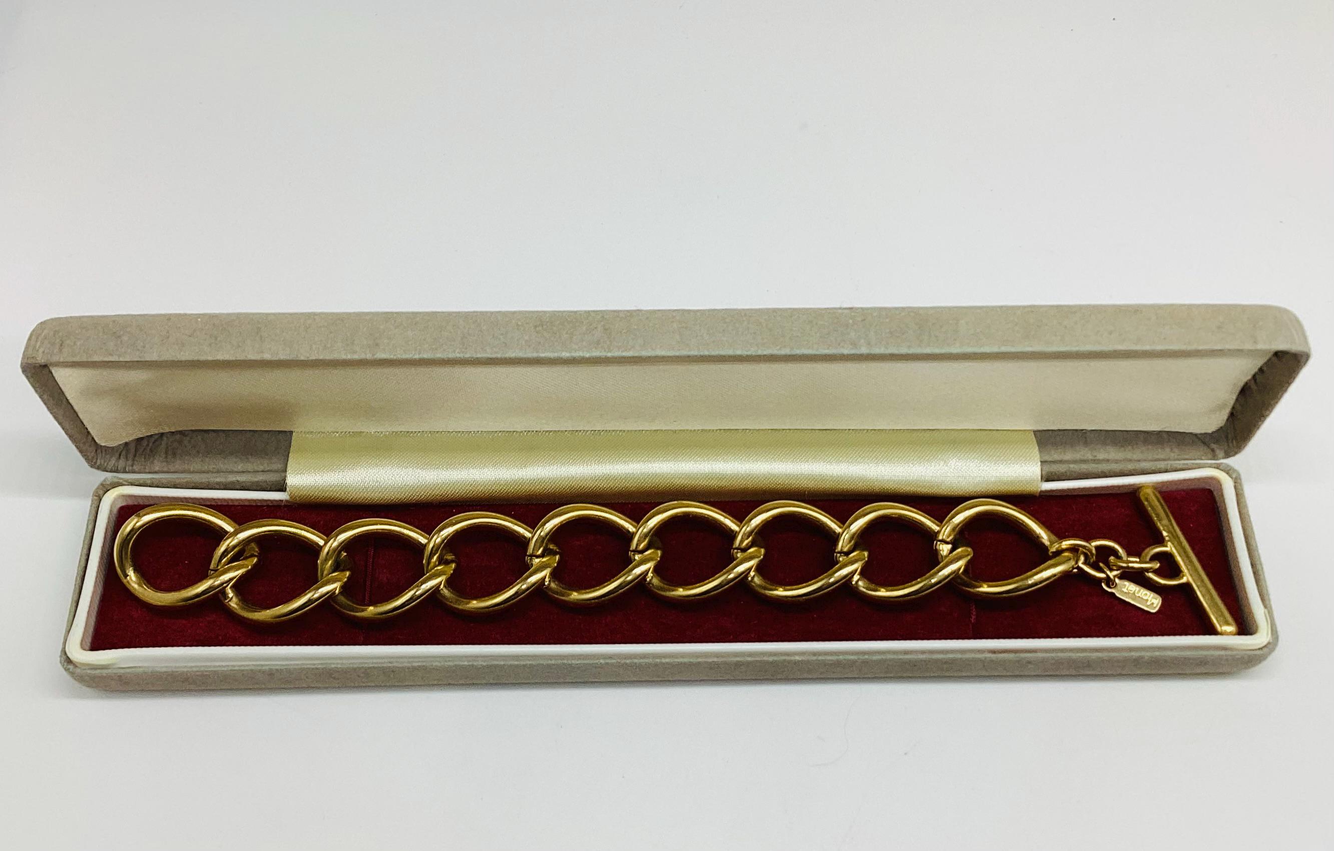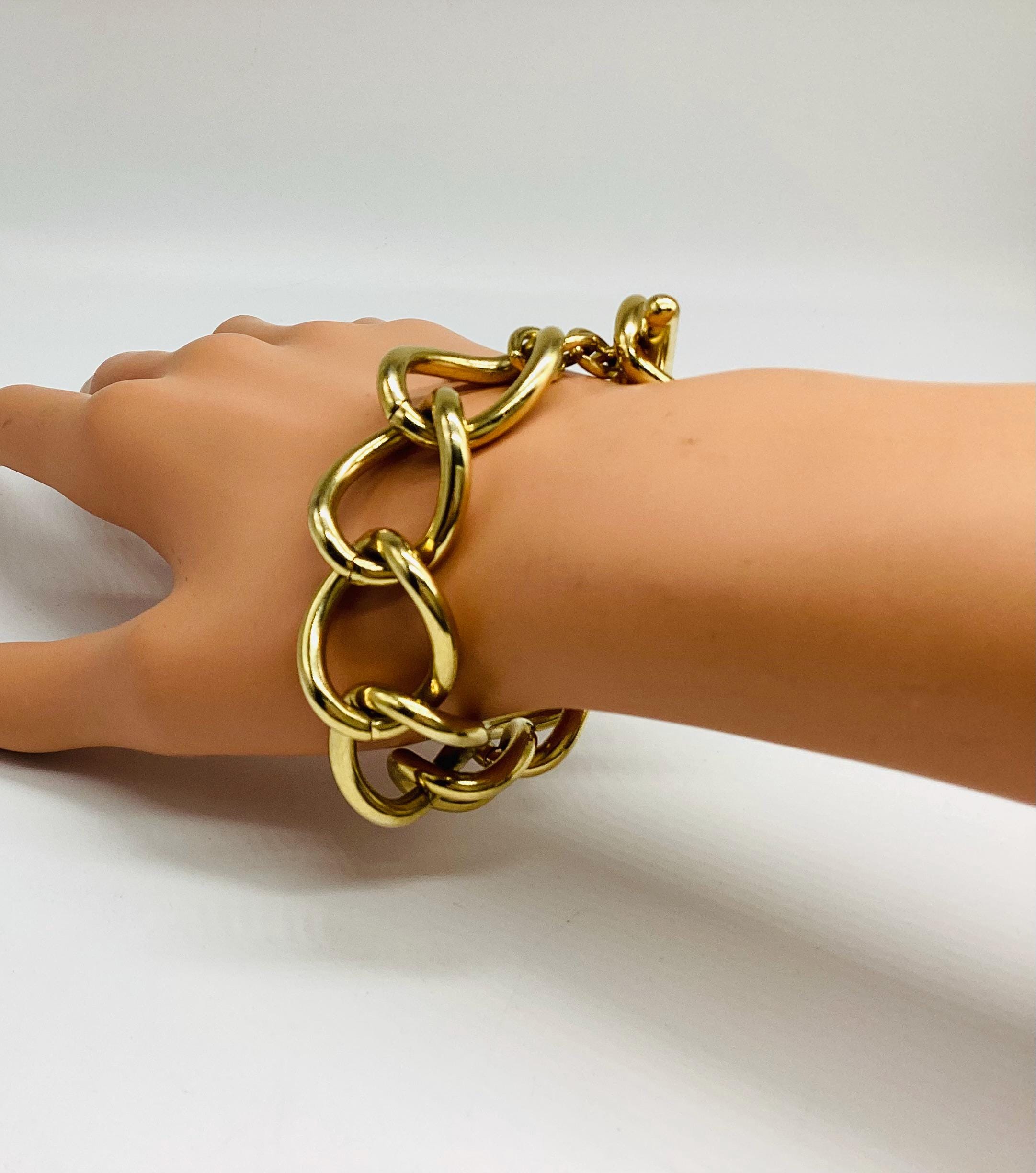 Monet Signed Gold Fancy Outsize Chain Curb Bracelet 7 1/2 inches Vintage 1960's