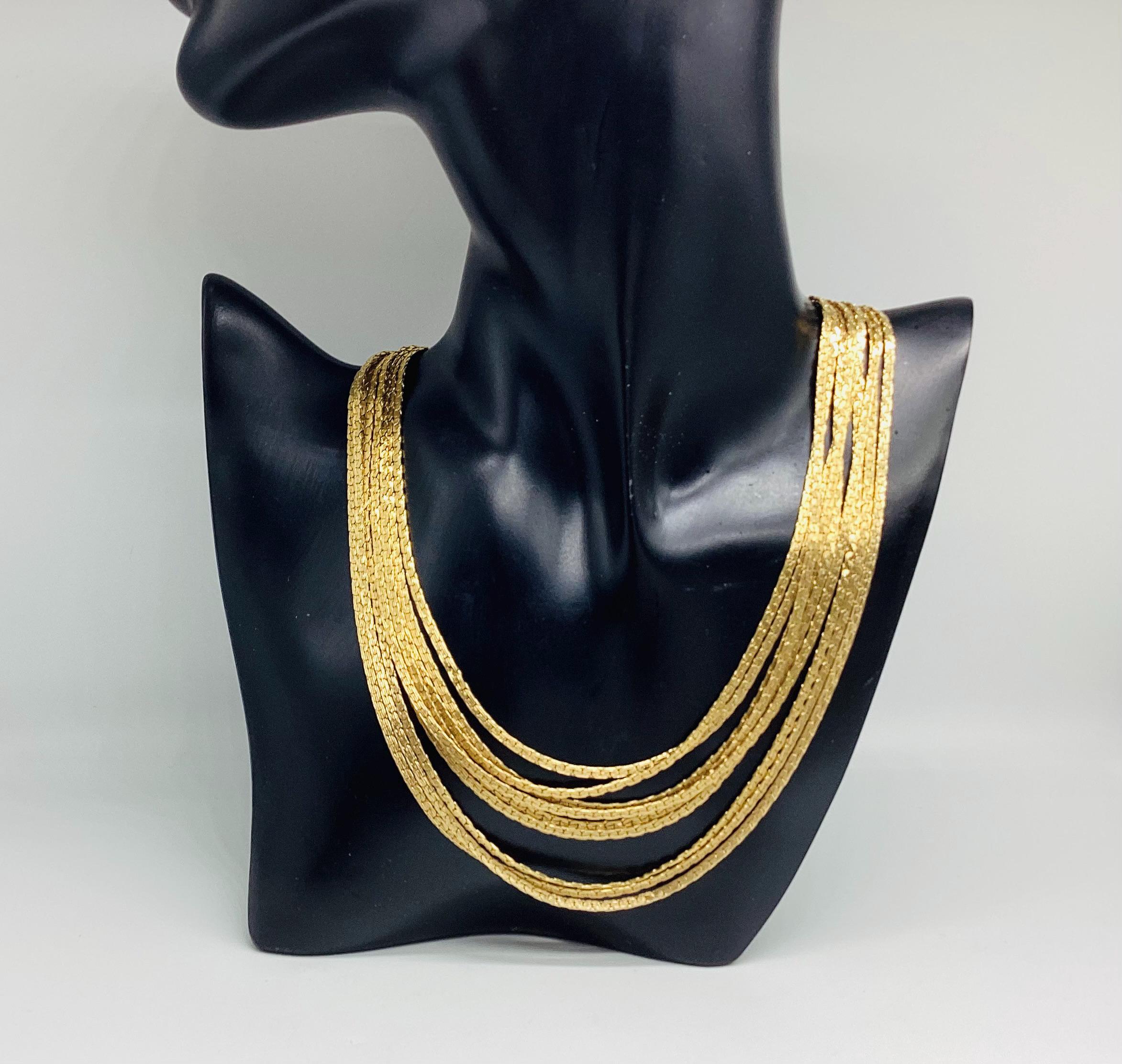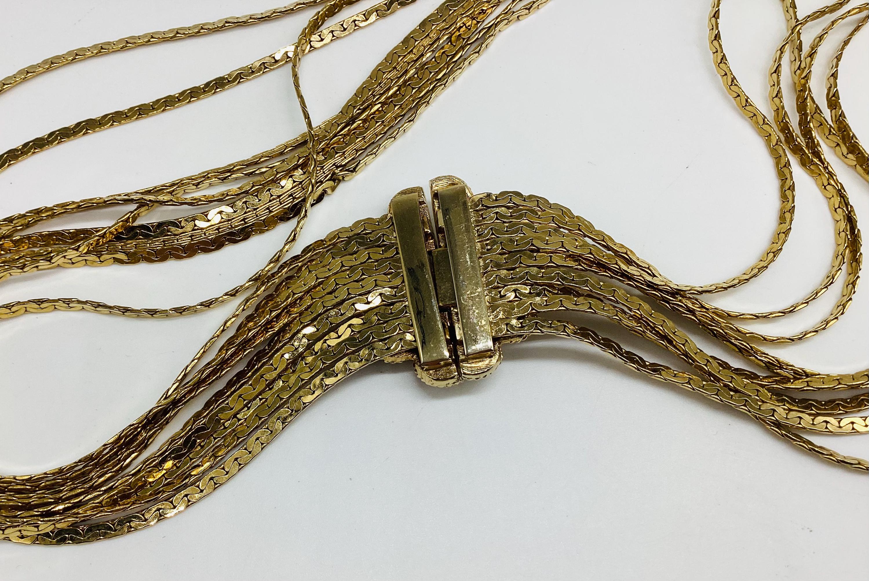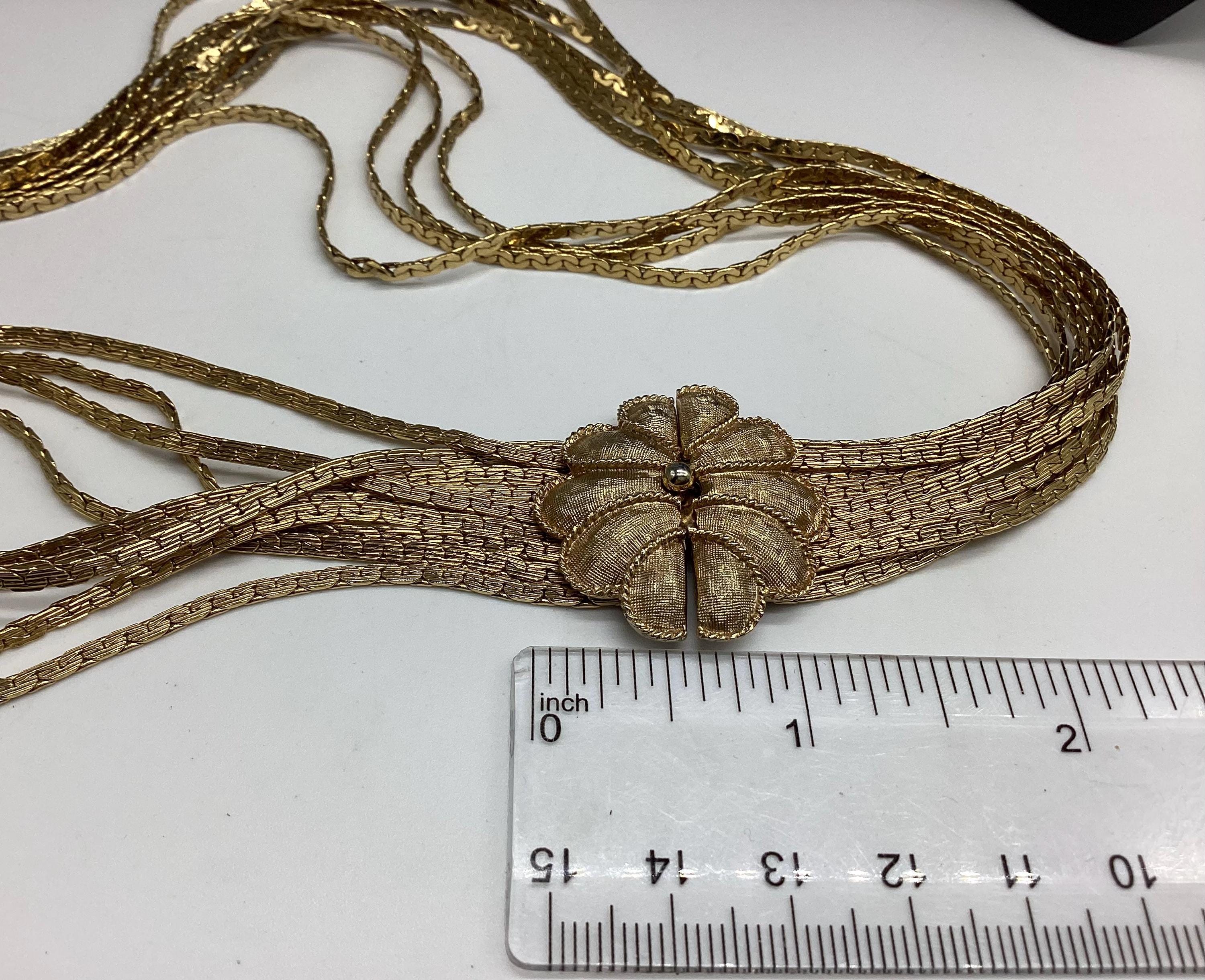 The necklace is offered in excellent vintage condition, with the gold-tone finish well preserved and no signs of damage or distortion to the chains. The clasp closes securely.