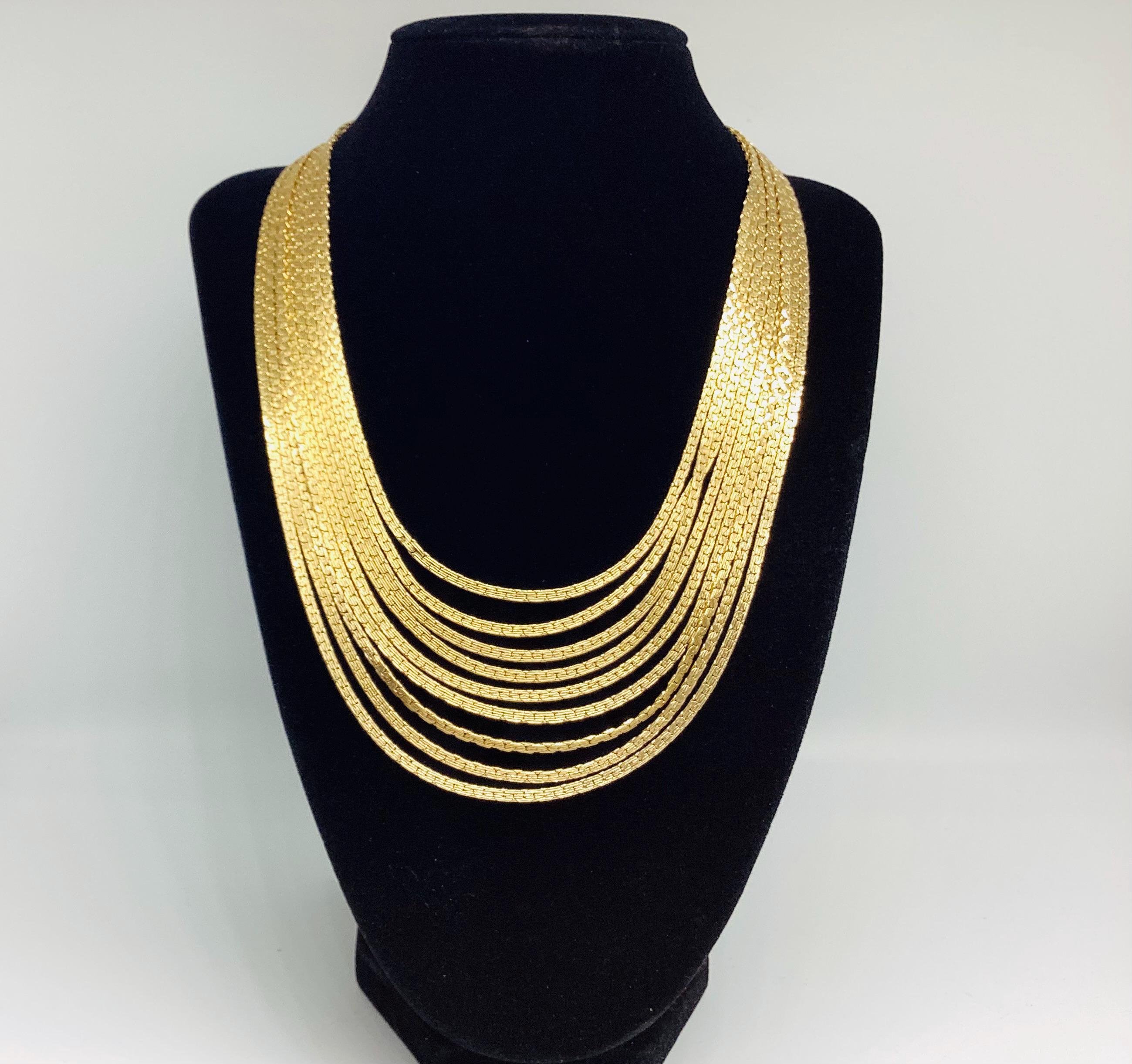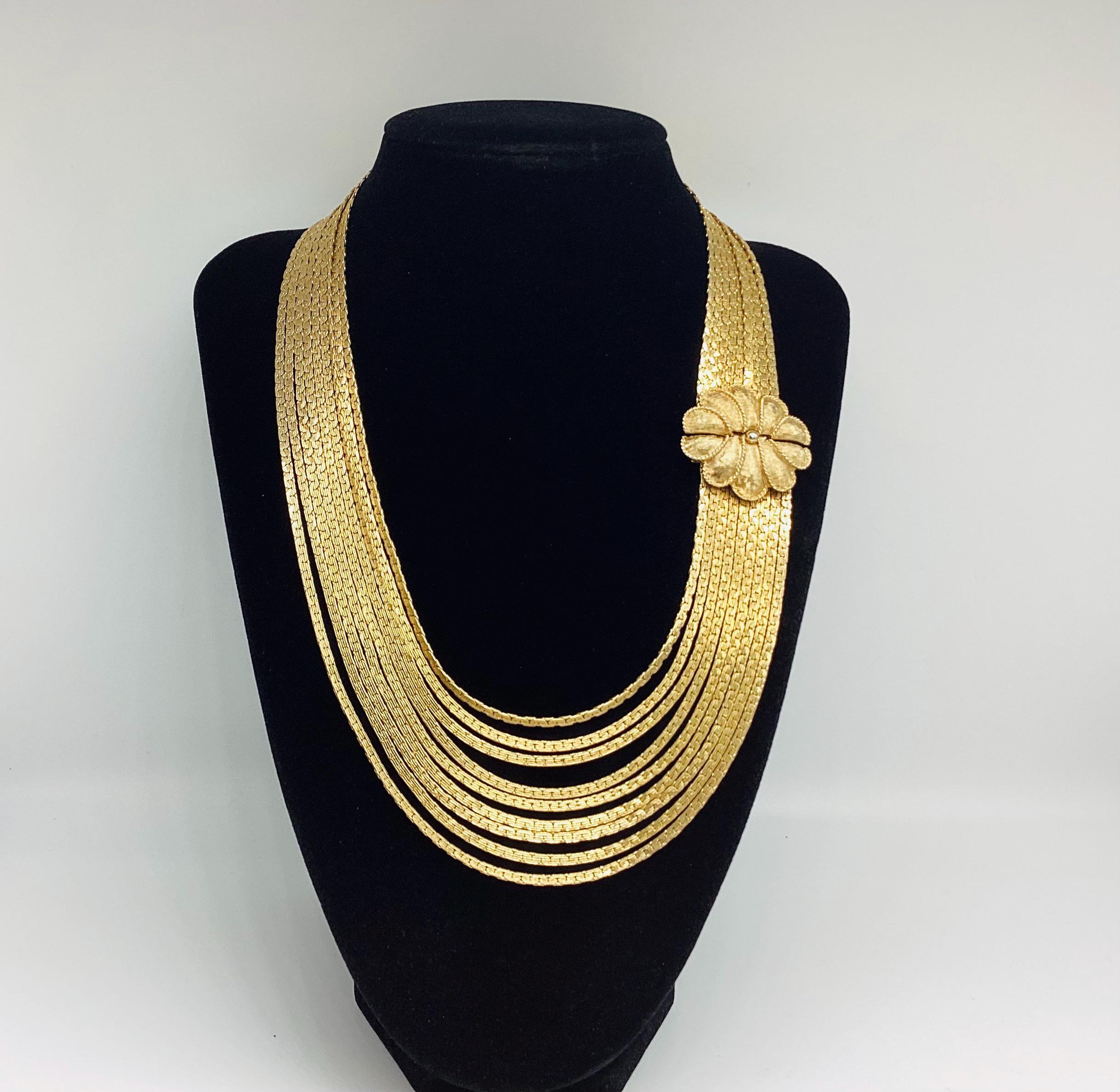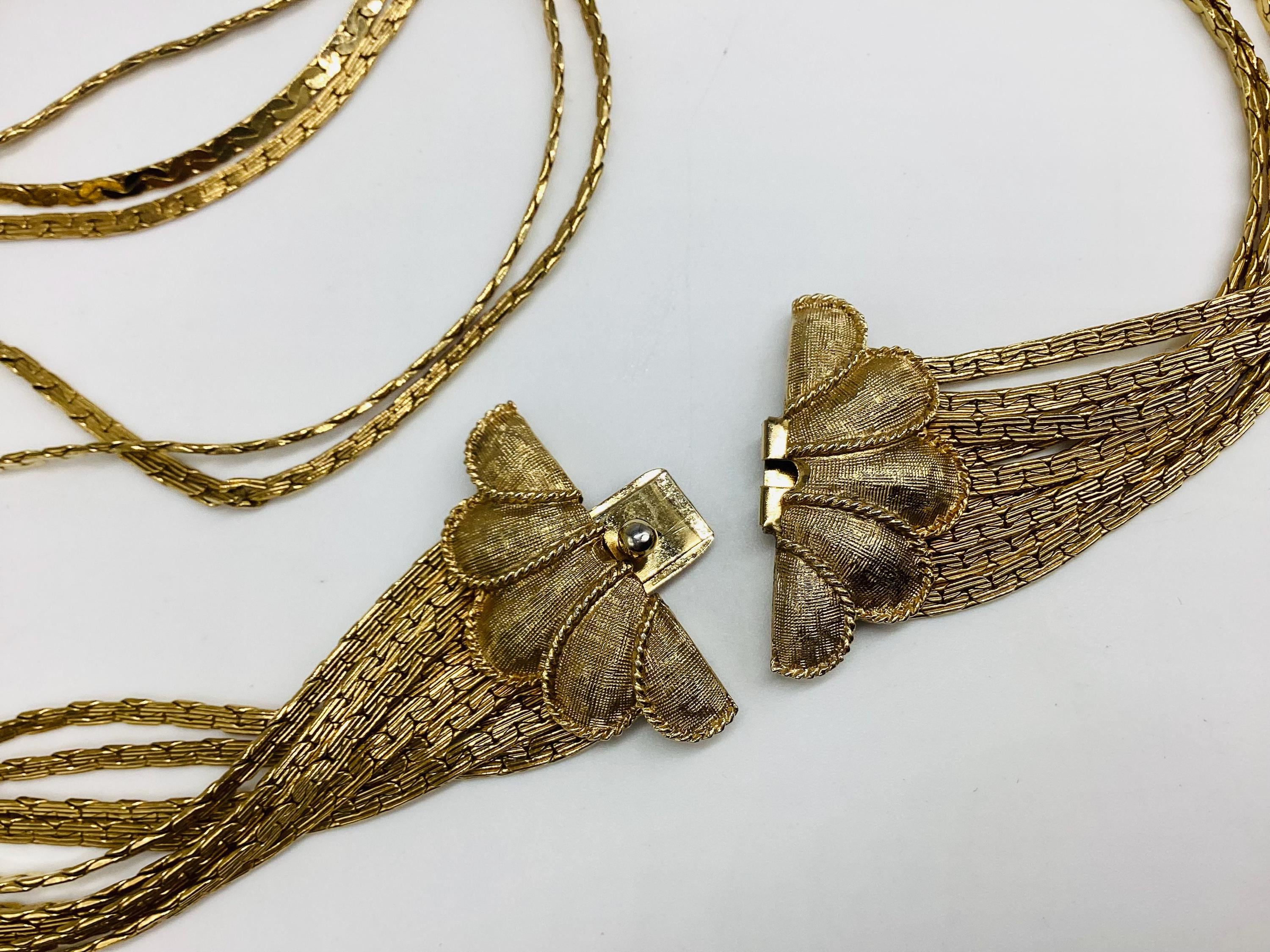 The necklace is offered in excellent vintage condition, with the gold-tone finish well preserved and no signs of damage or distortion to the chains. The clasp closes securely.