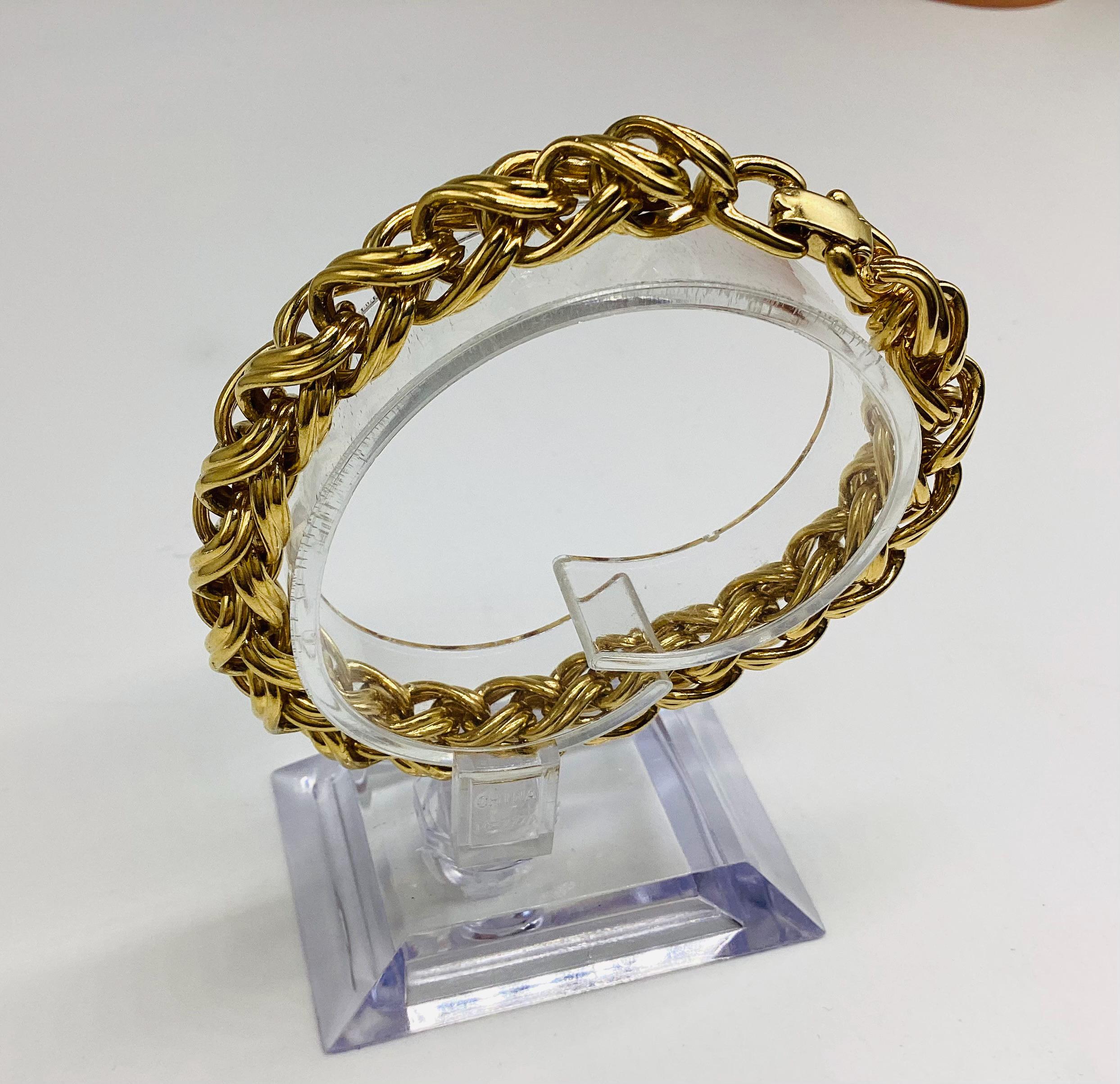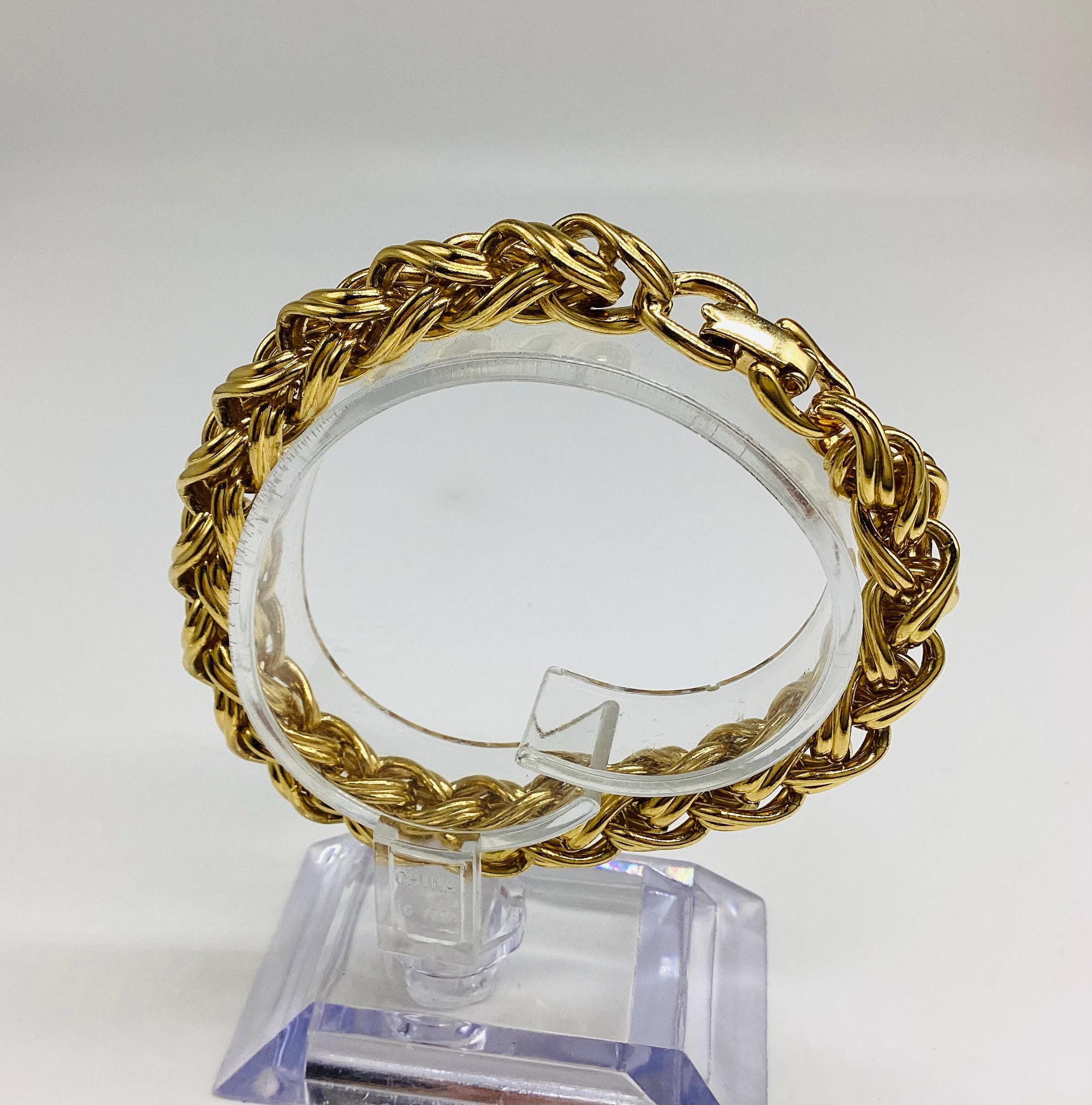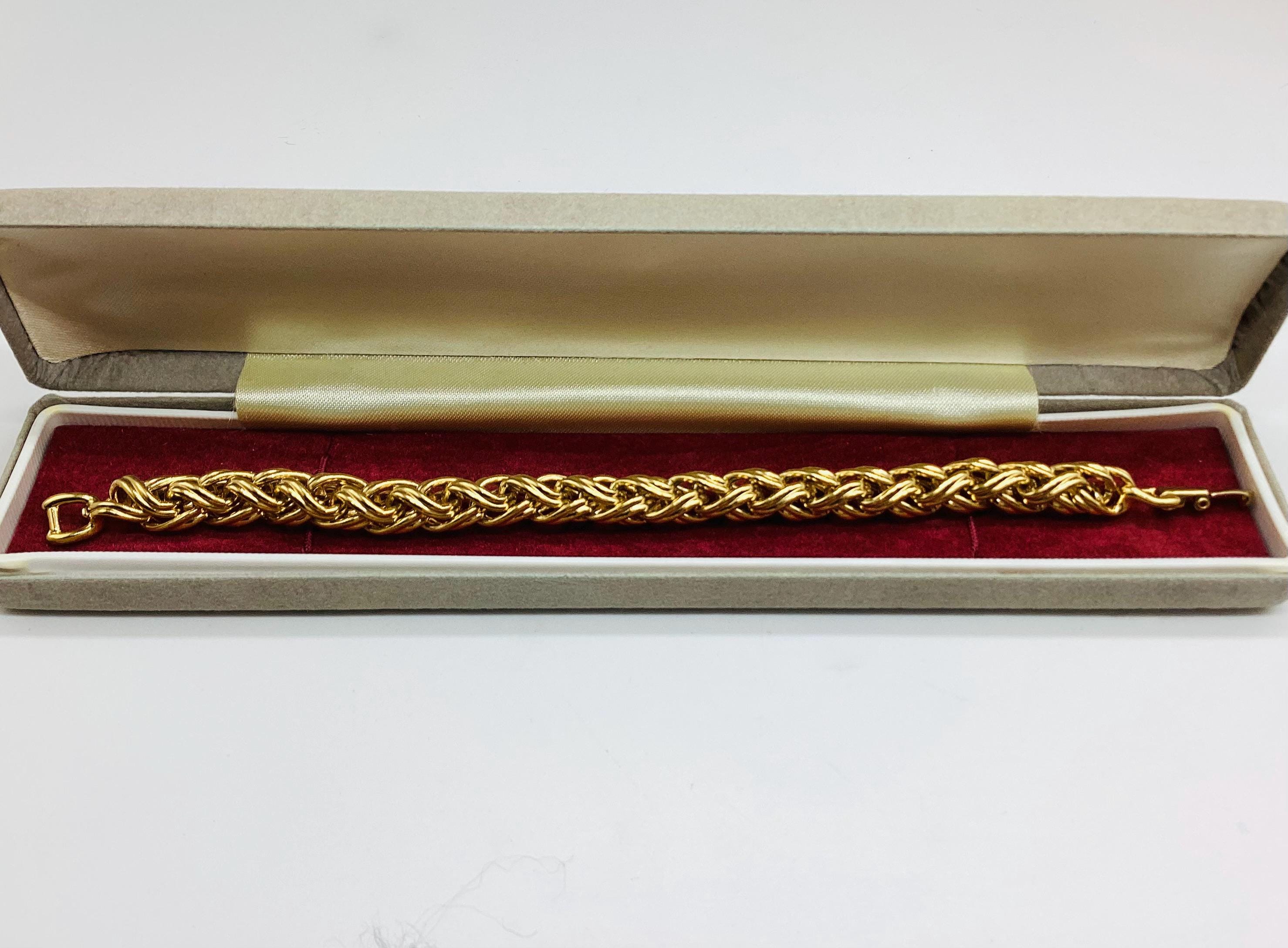 Monet Signed Gold Fancy Heavy Wheat Chain Bracelet 7 1/2 inches Vintage 1960's