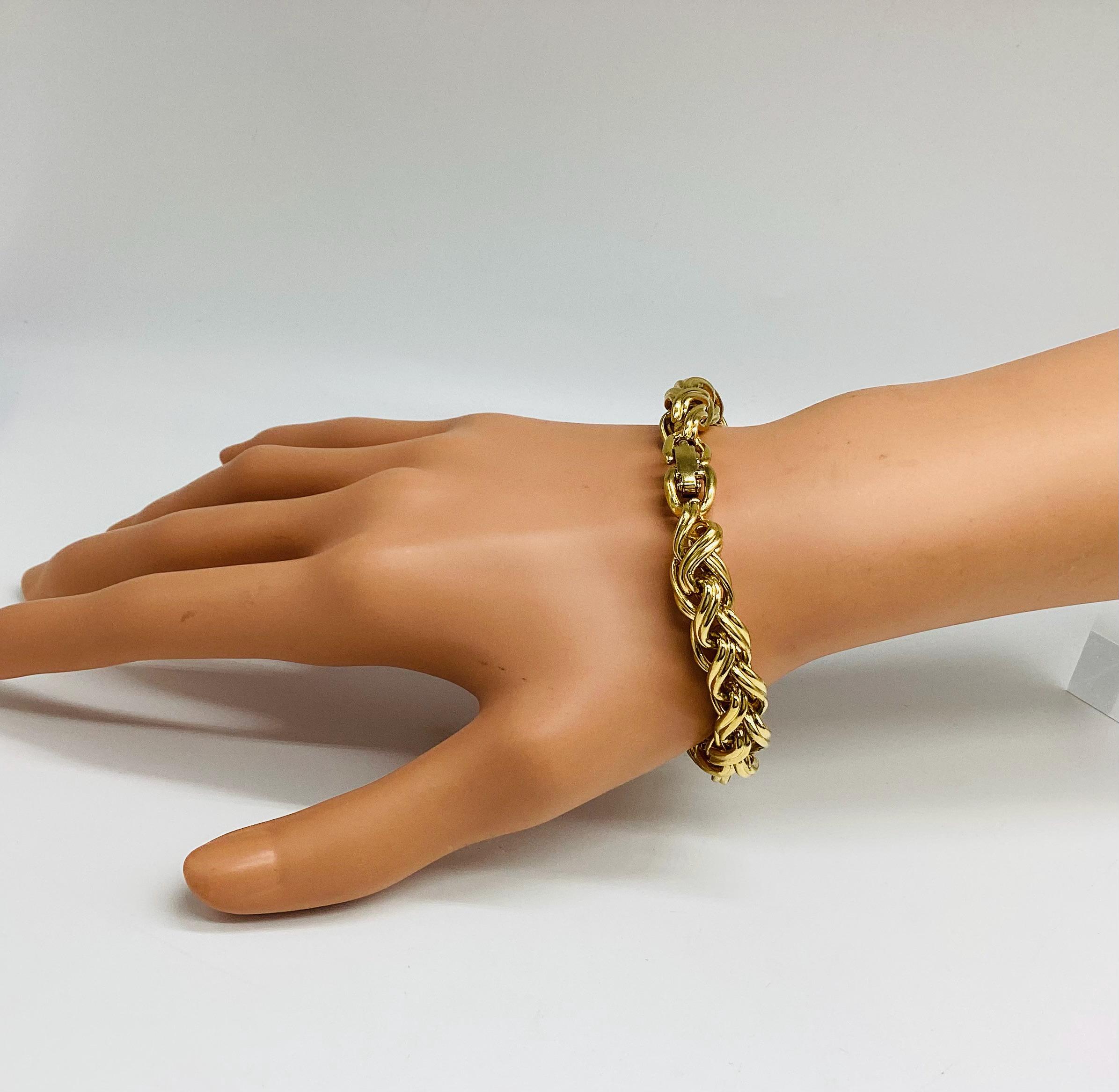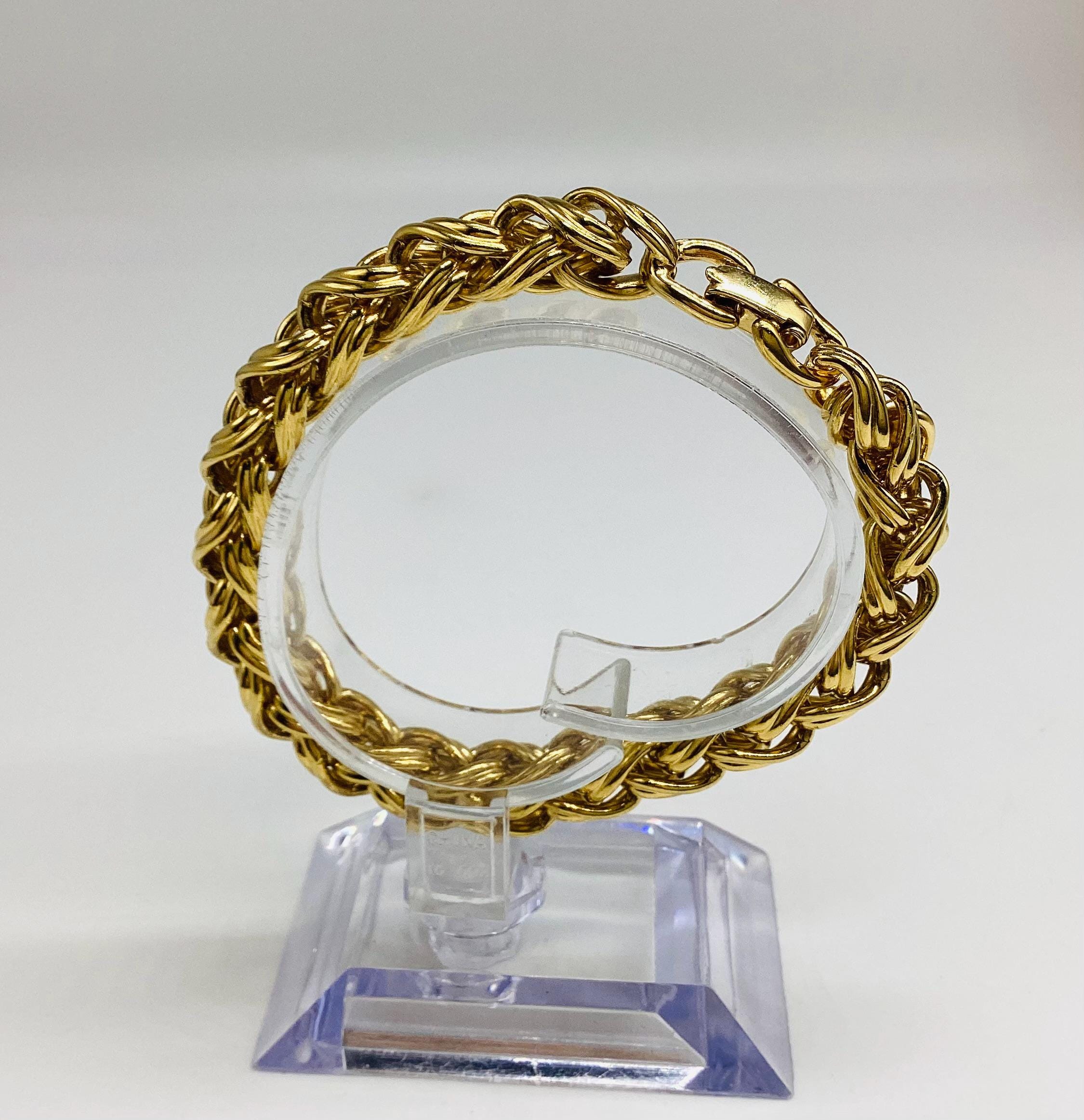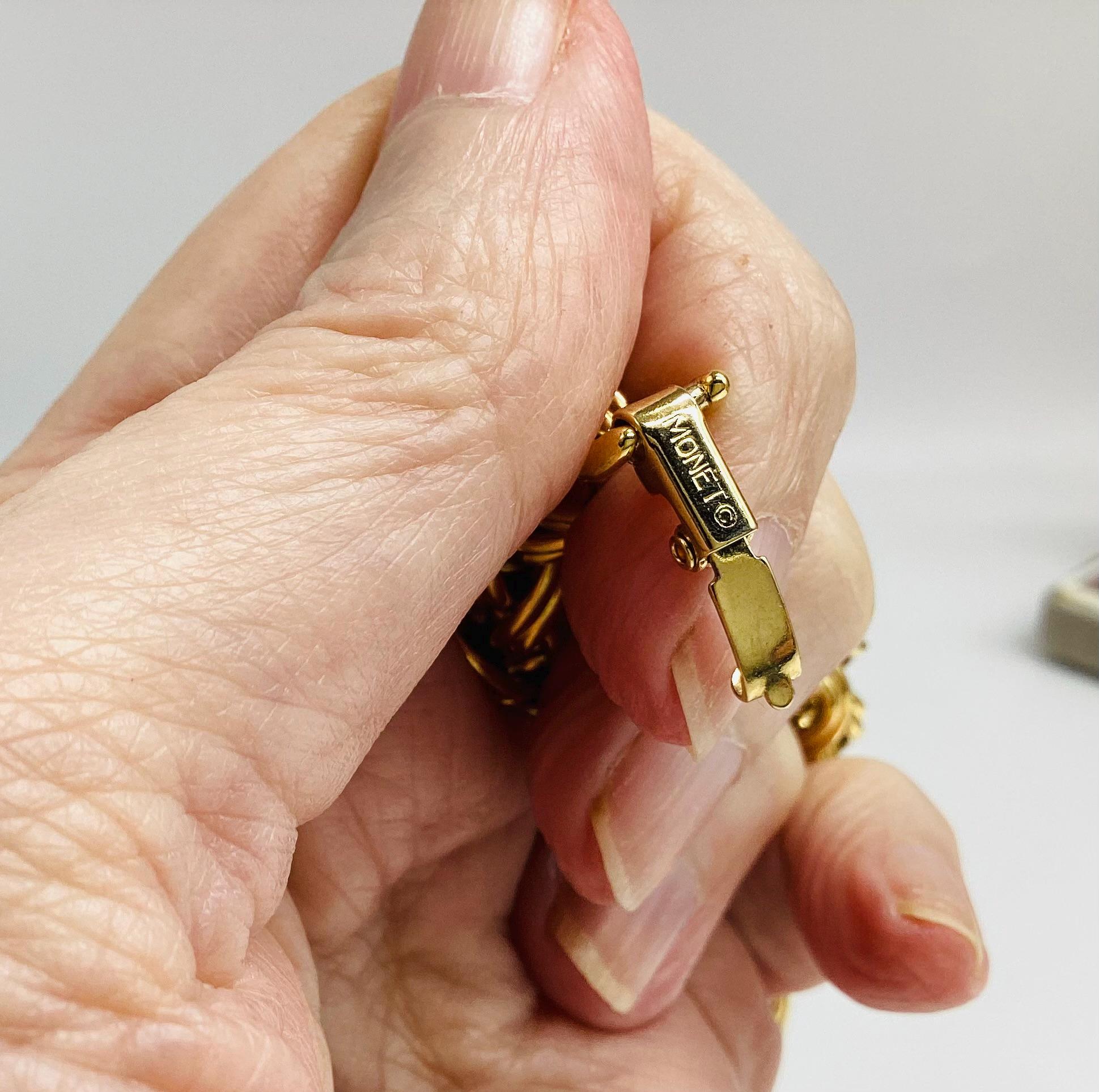 Monet Signed Gold Fancy Heavy Wheat Chain Bracelet 7 1/2 inches Vintage 1960's