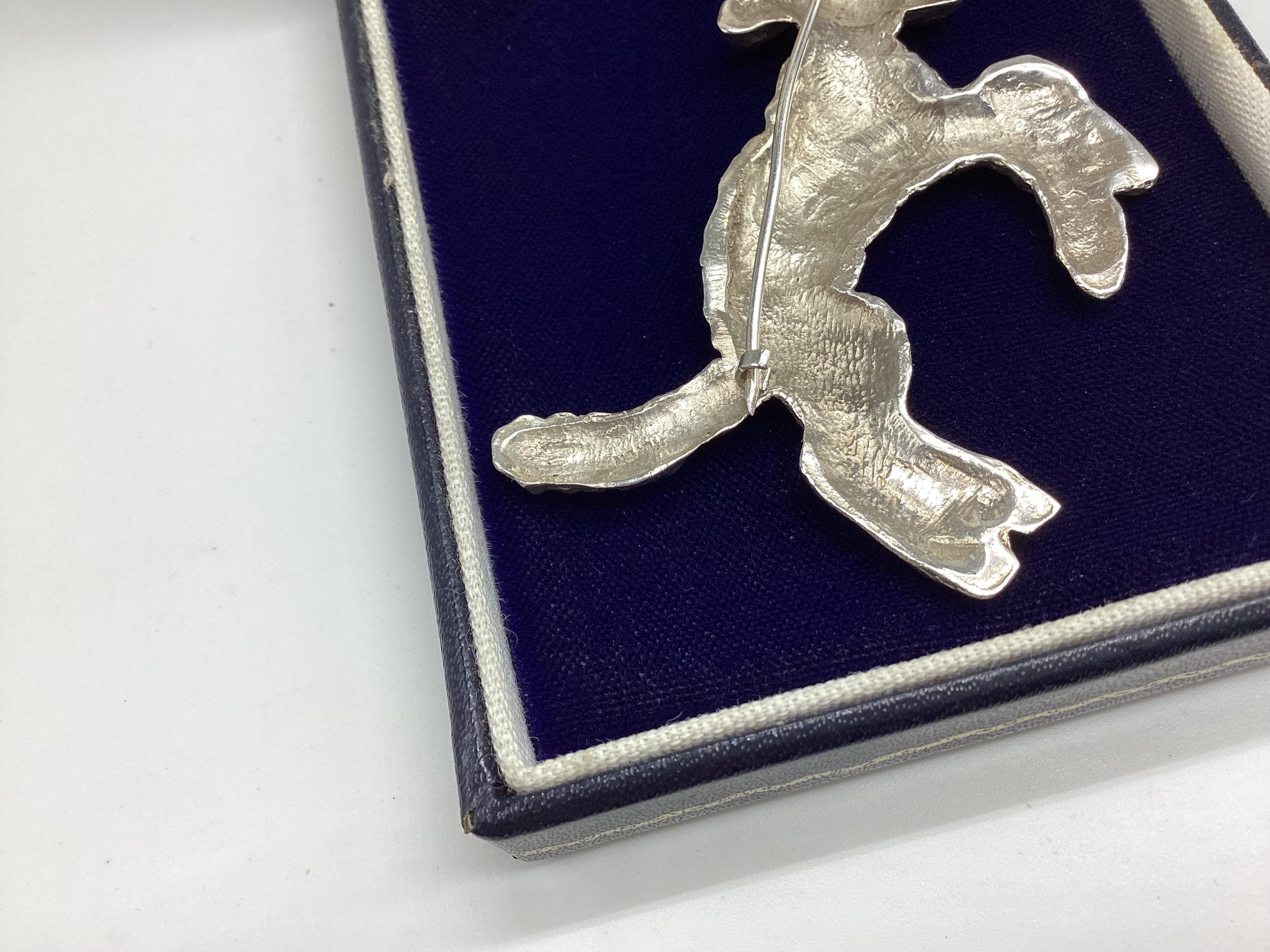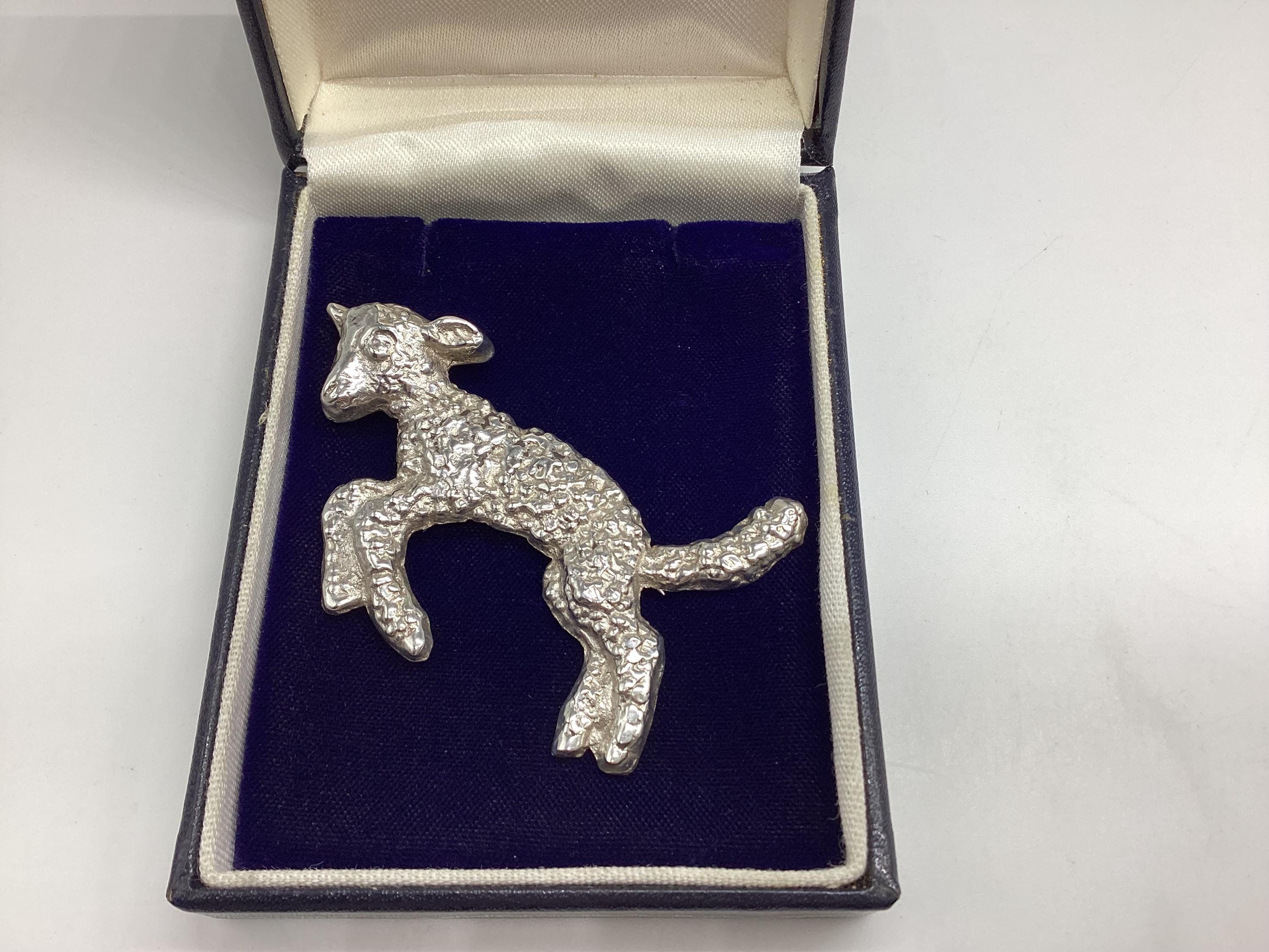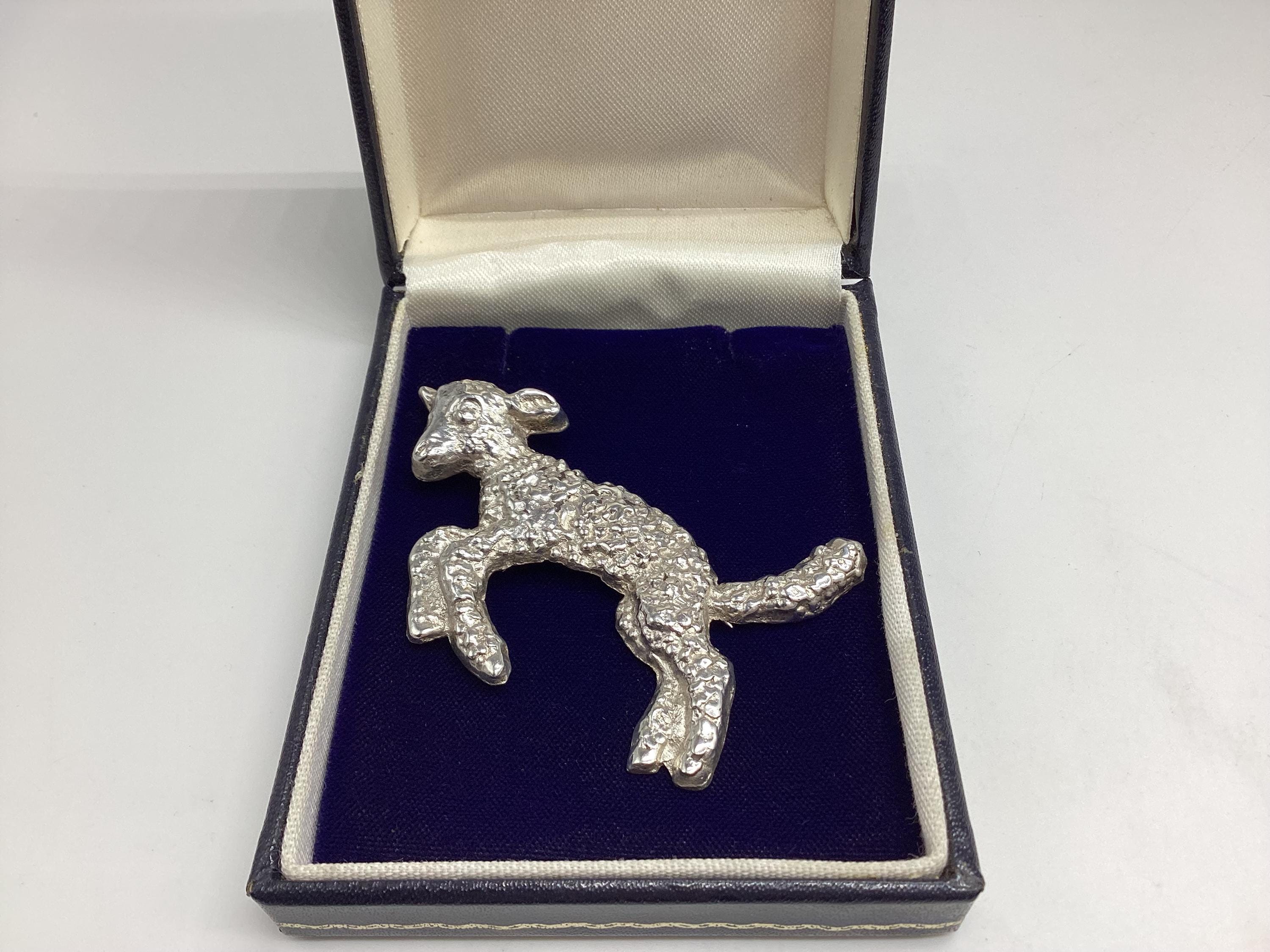 A delightful vintage brooch dating I believe from the 1950's. The subject is a leaping lamb, it's woolly fleece beautifully shown in this quality piece of jewellery. Just the thing for a farmer, shepherd, shepherdess or lover of all things springtime.