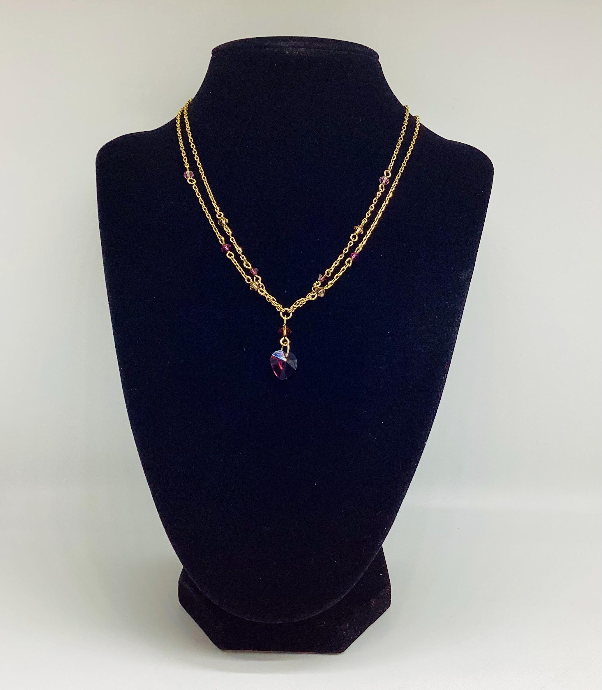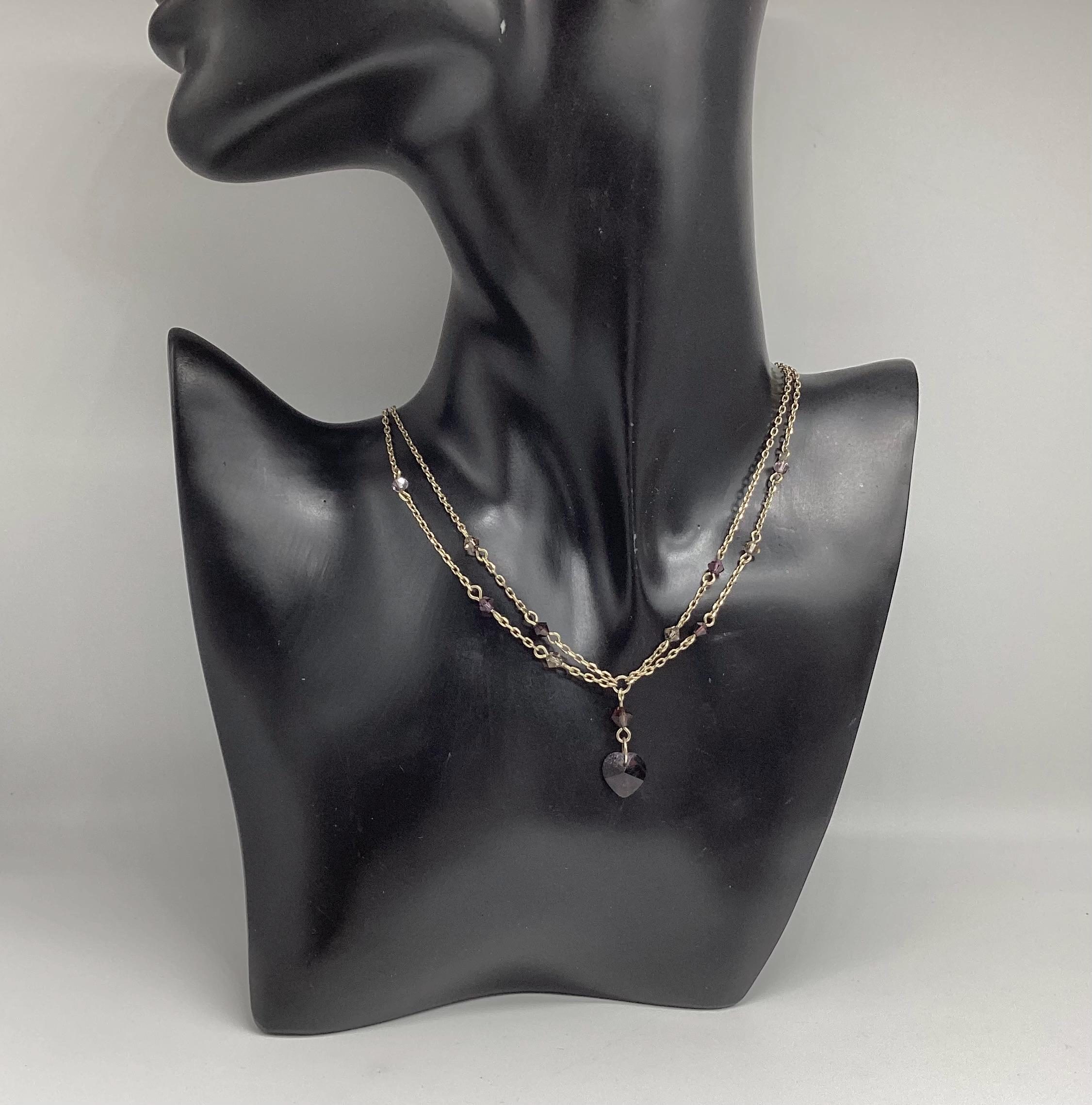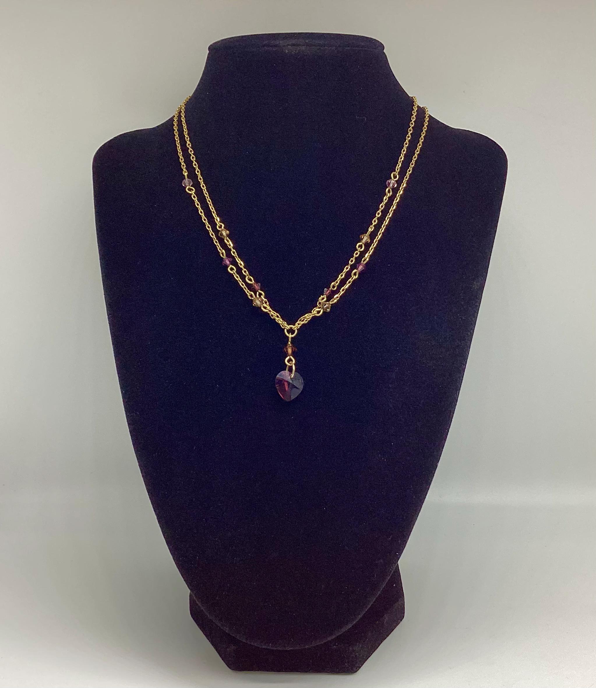 A very pretty double chain necklace both threaded with briolette cut amethysts and a delightful heart drop. Wearing a selection of chains is a very popular look and this would be a great start.