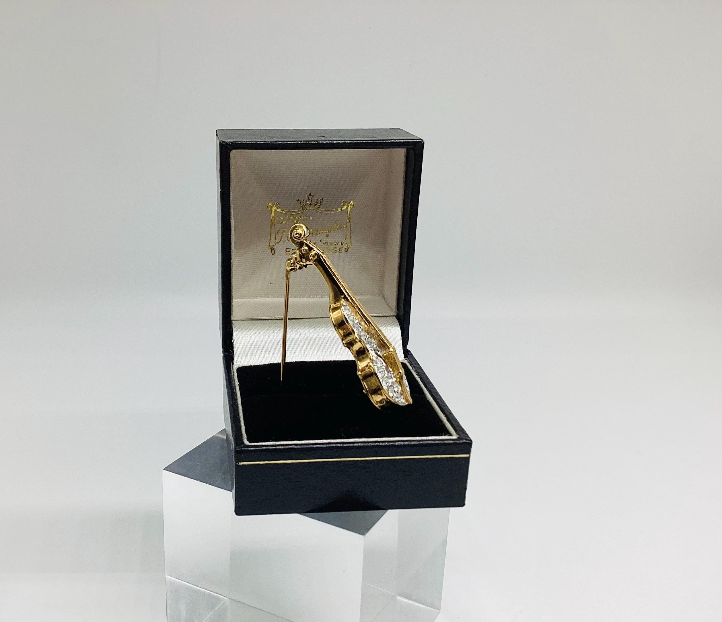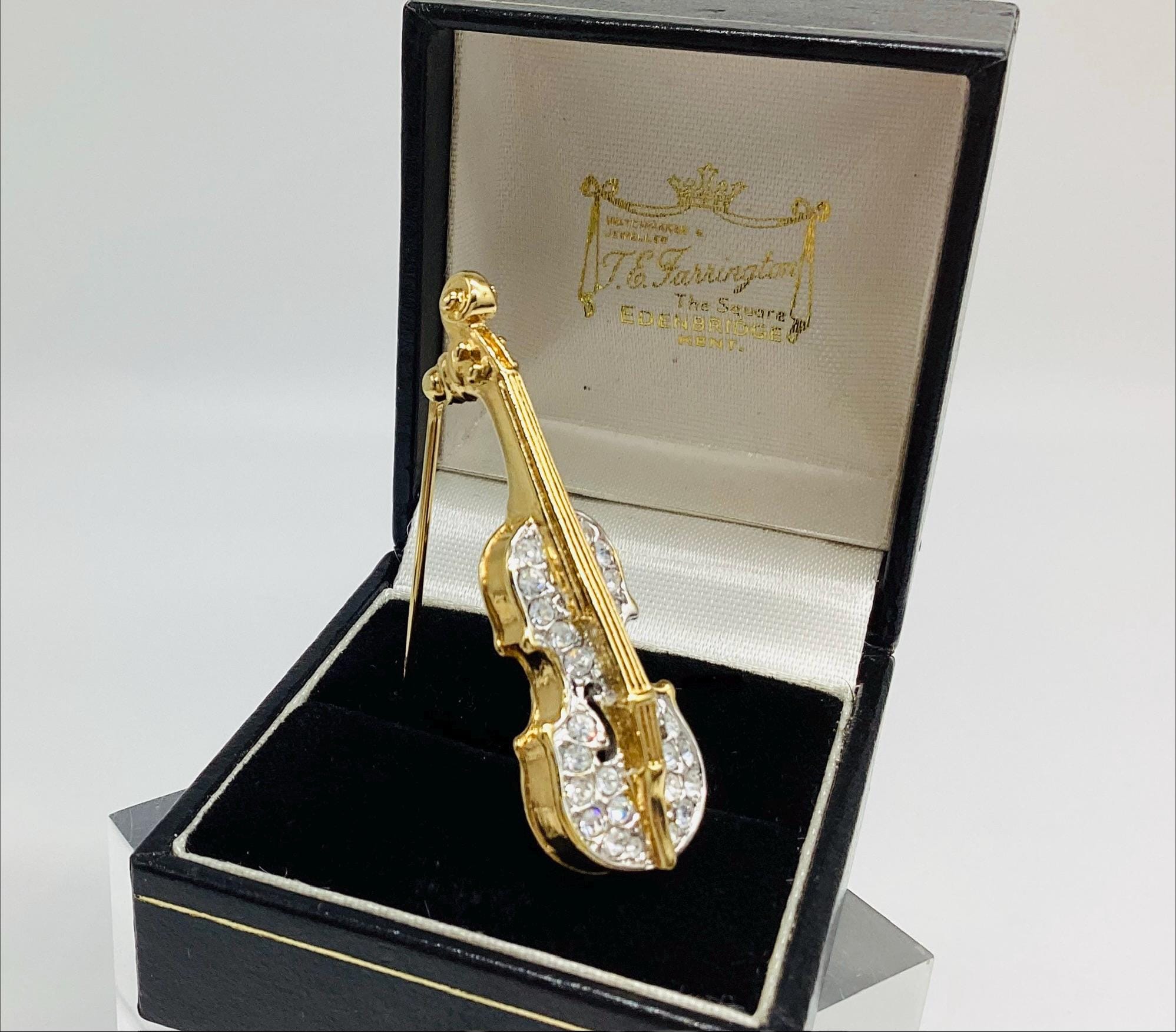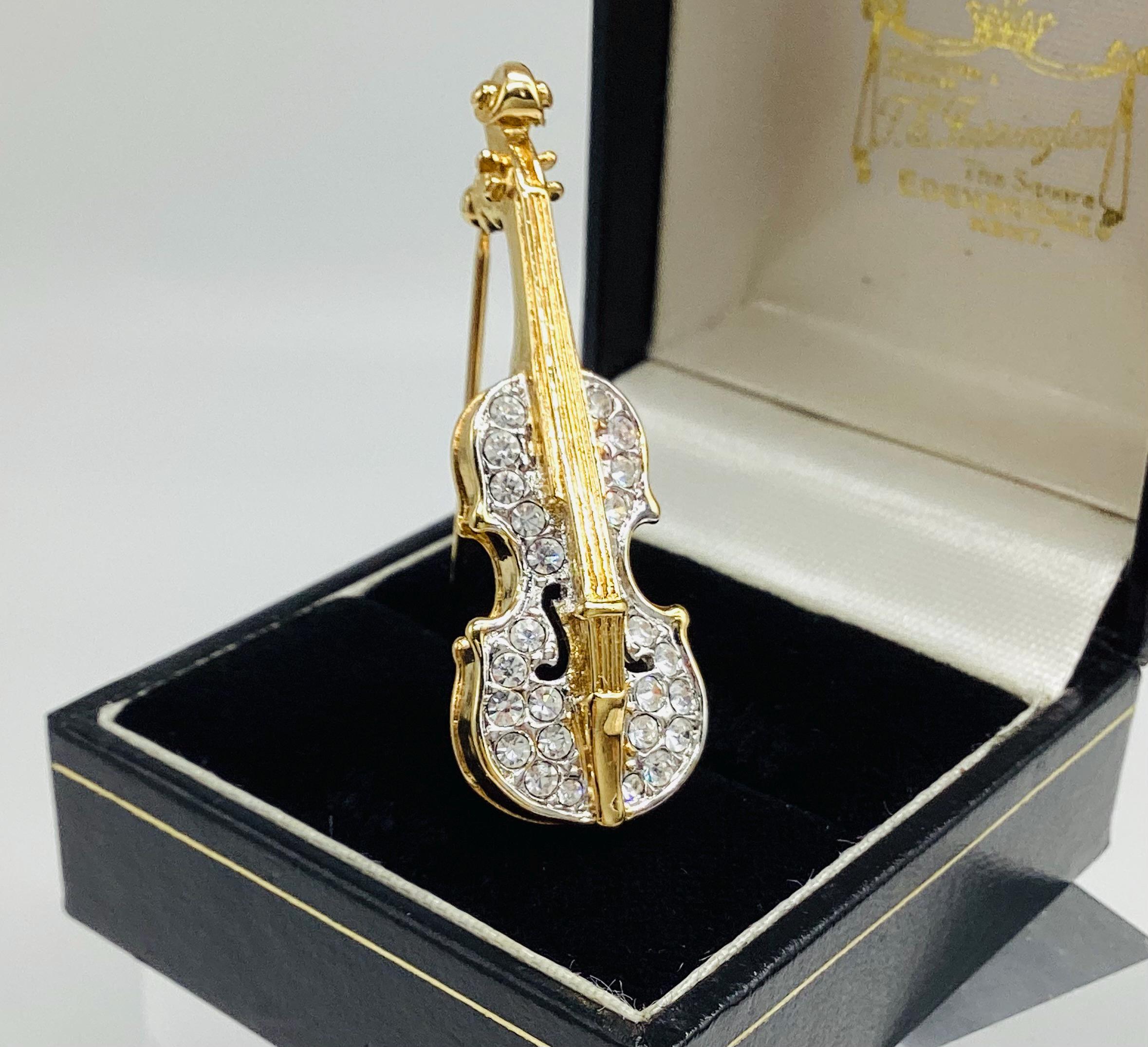 A beautiful quality piece. Perfect for a music lover or violin player. Perhaps for graduation or exam success. A rare piece of Attwood and Sawyer jewellery. I have a particular love for this maker, well known for the superb quality and attention to detail. Founded in Wales in 1956 by Horace Atwood, Atwood and Sawyer produced copies of precious ornaments from the 18th to 19th centuries. Many pieces were made for the television series “Dallas” and “Dynasty”, as well as exclusive compositions for the beauty contest “Miss World”. The firm produced high-end imitation jewellery and sold their decorations at prestigious retail outlets across the UK, Europe and other countries around the world, as well as on cruise ships and Airliners.