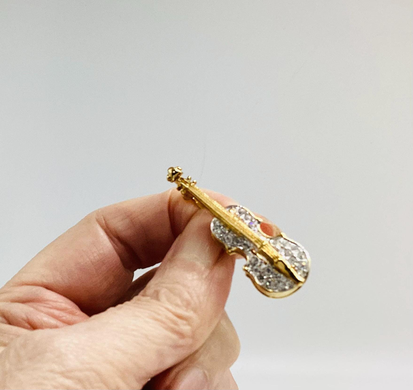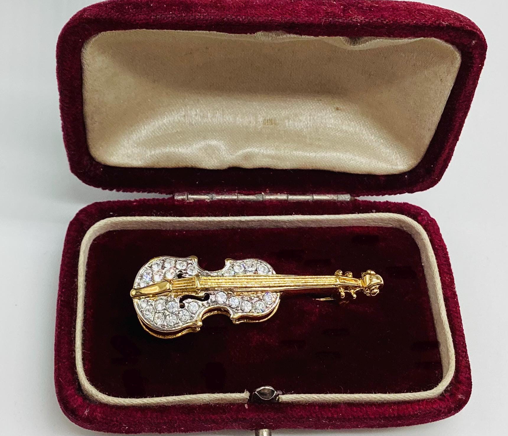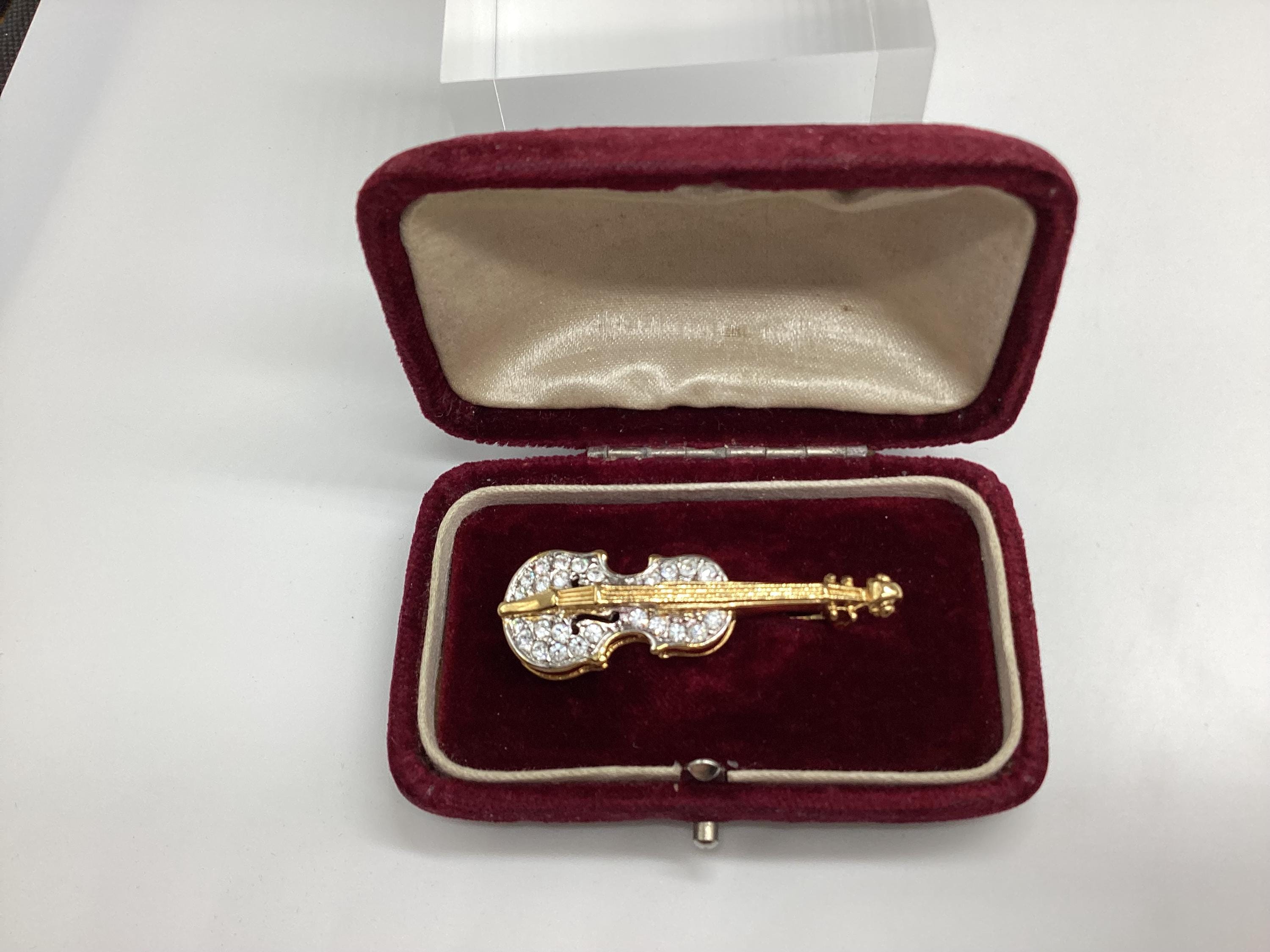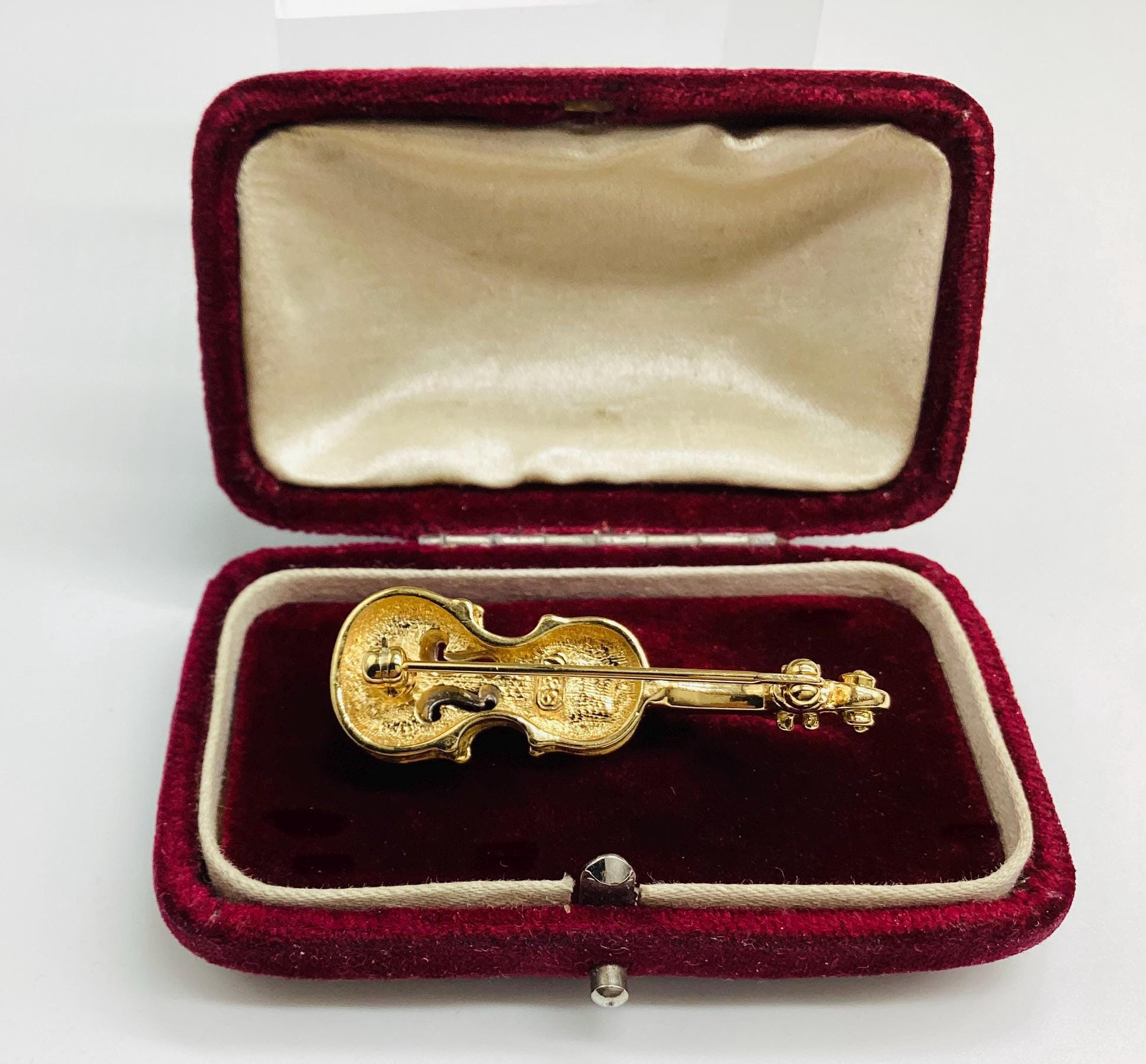 A beautiful quality piece. Perfect for a music lover or violin player. Perhaps for graduation or exam success. A rare piece of Attwood and Sawyer jewellery. I have a particular love for this maker, well known for the superb quality and attention to detail. Founded in Wales in 1956 by Horace Atwood, Atwood and Sawyer produced copies of precious ornaments from the 18th to 19th centuries. Many pieces were made for the television series “Dallas” and “Dynasty”, as well as exclusive compositions for the beauty contest “Miss World”. The firm produced high-end imitation jewellery and sold their decorations at prestigious retail outlets across the UK, Europe and other countries around the world, as well as on cruise ships and Airliners.