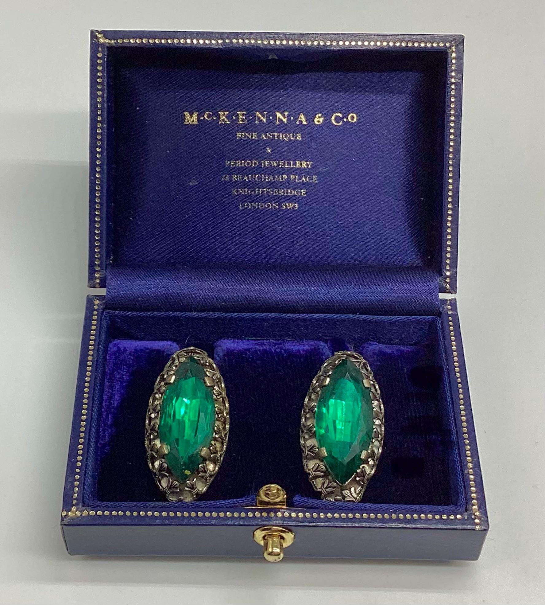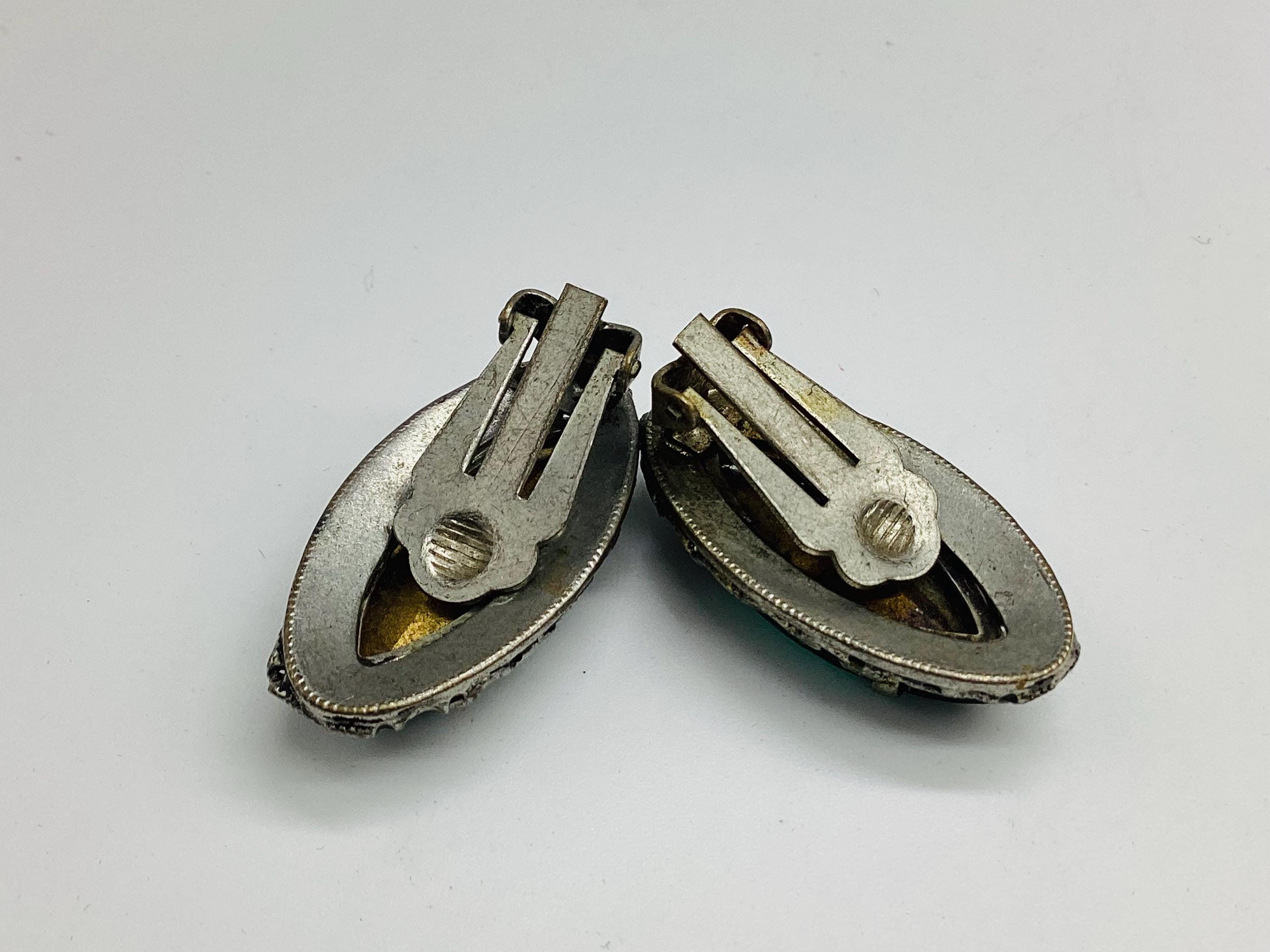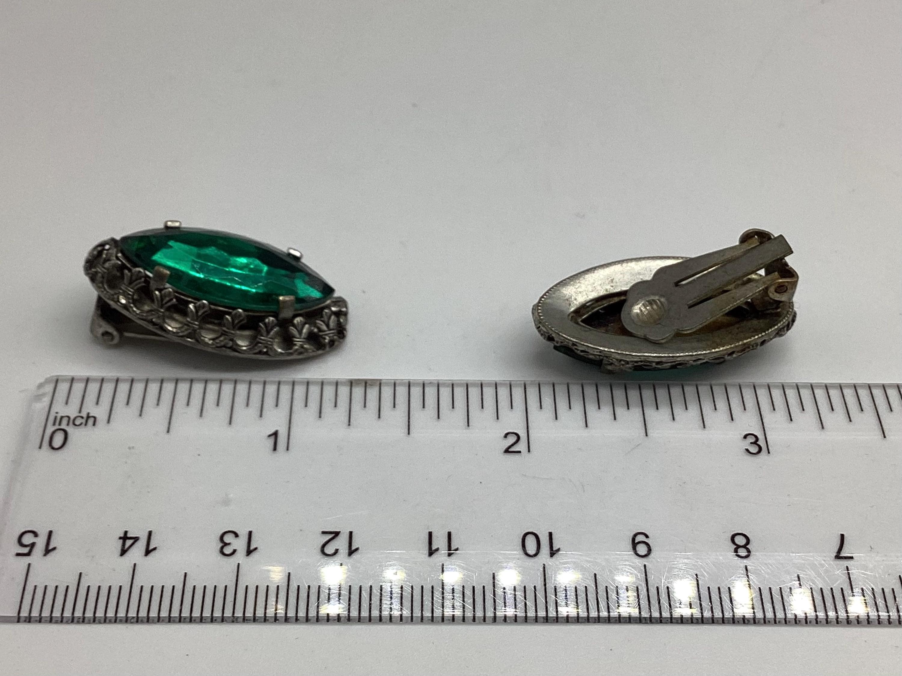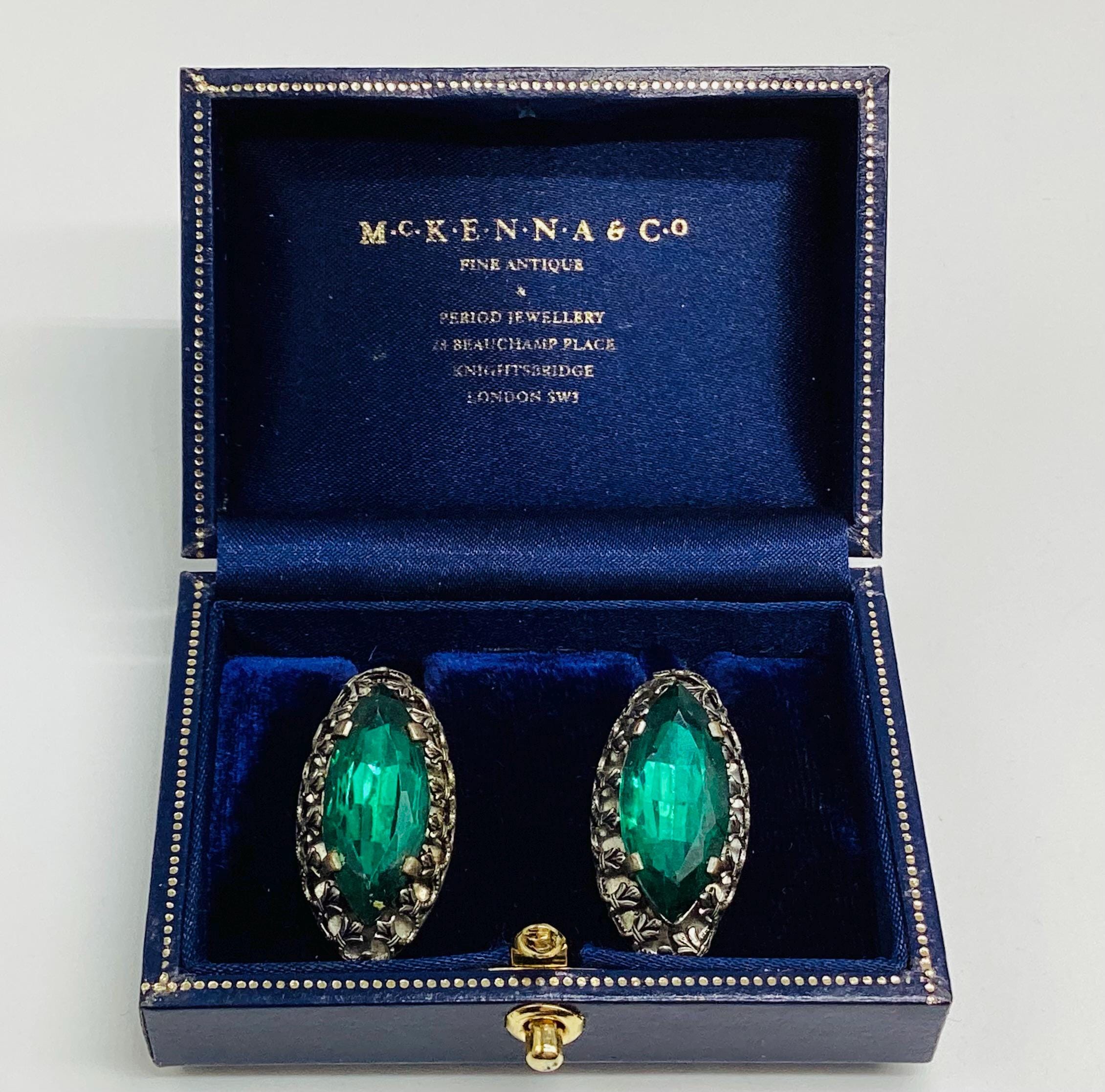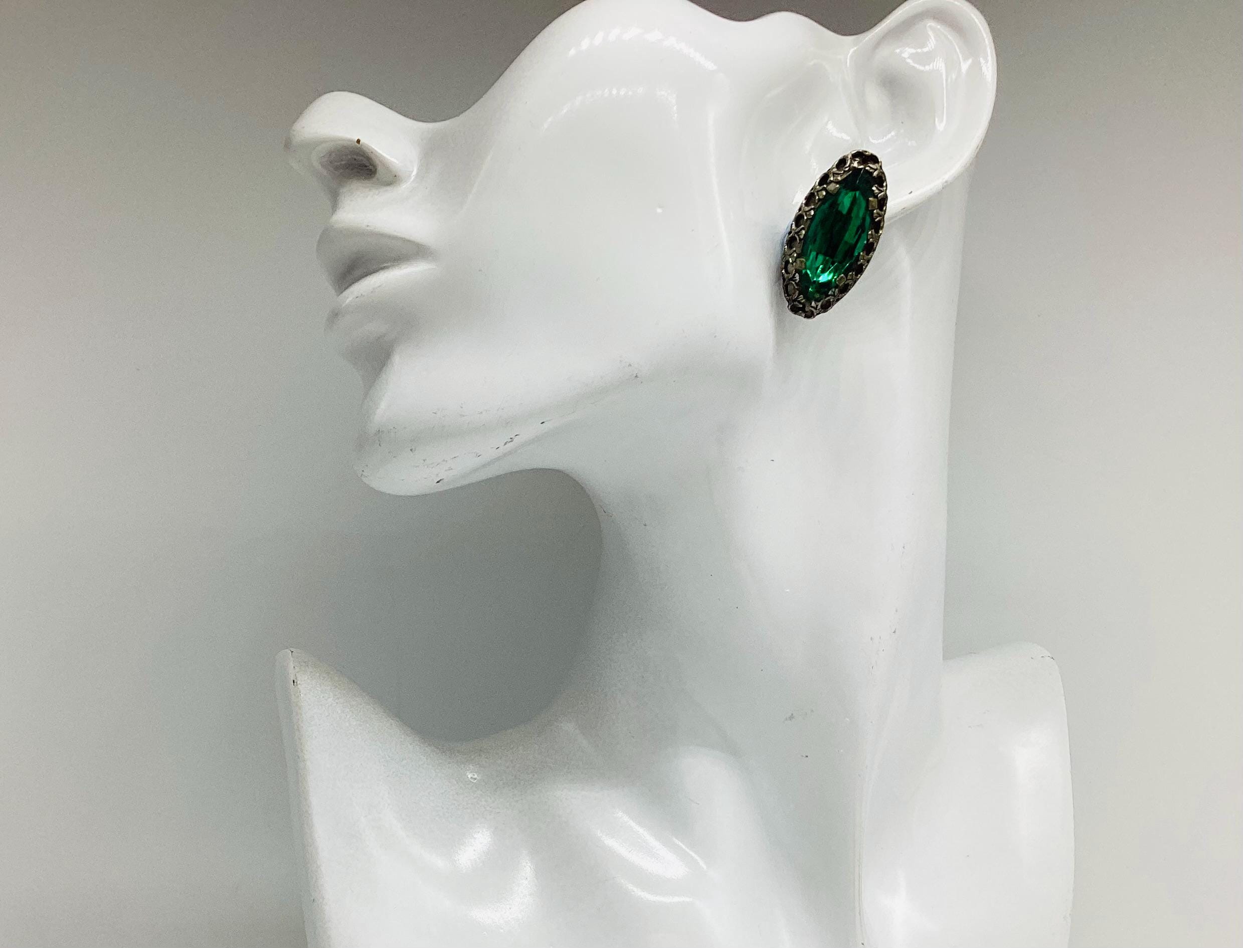 A rare pair of unusual Czech emerald glass earrings. The most beautiful shimmering colours of true emerald greens. Very collectable and wearable.