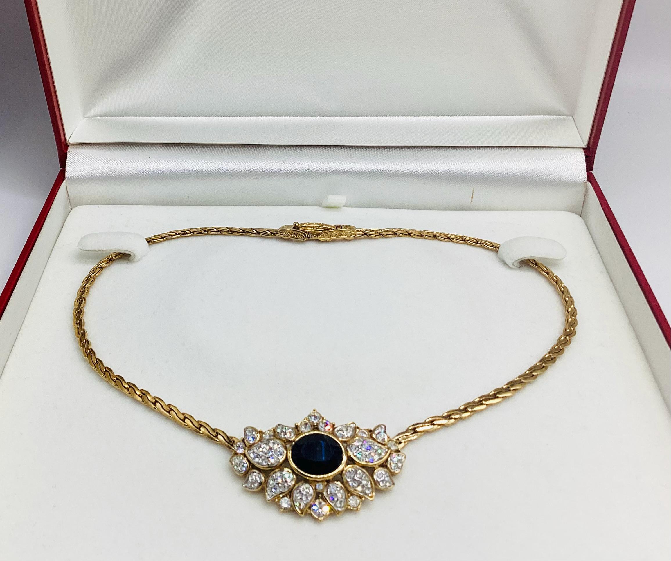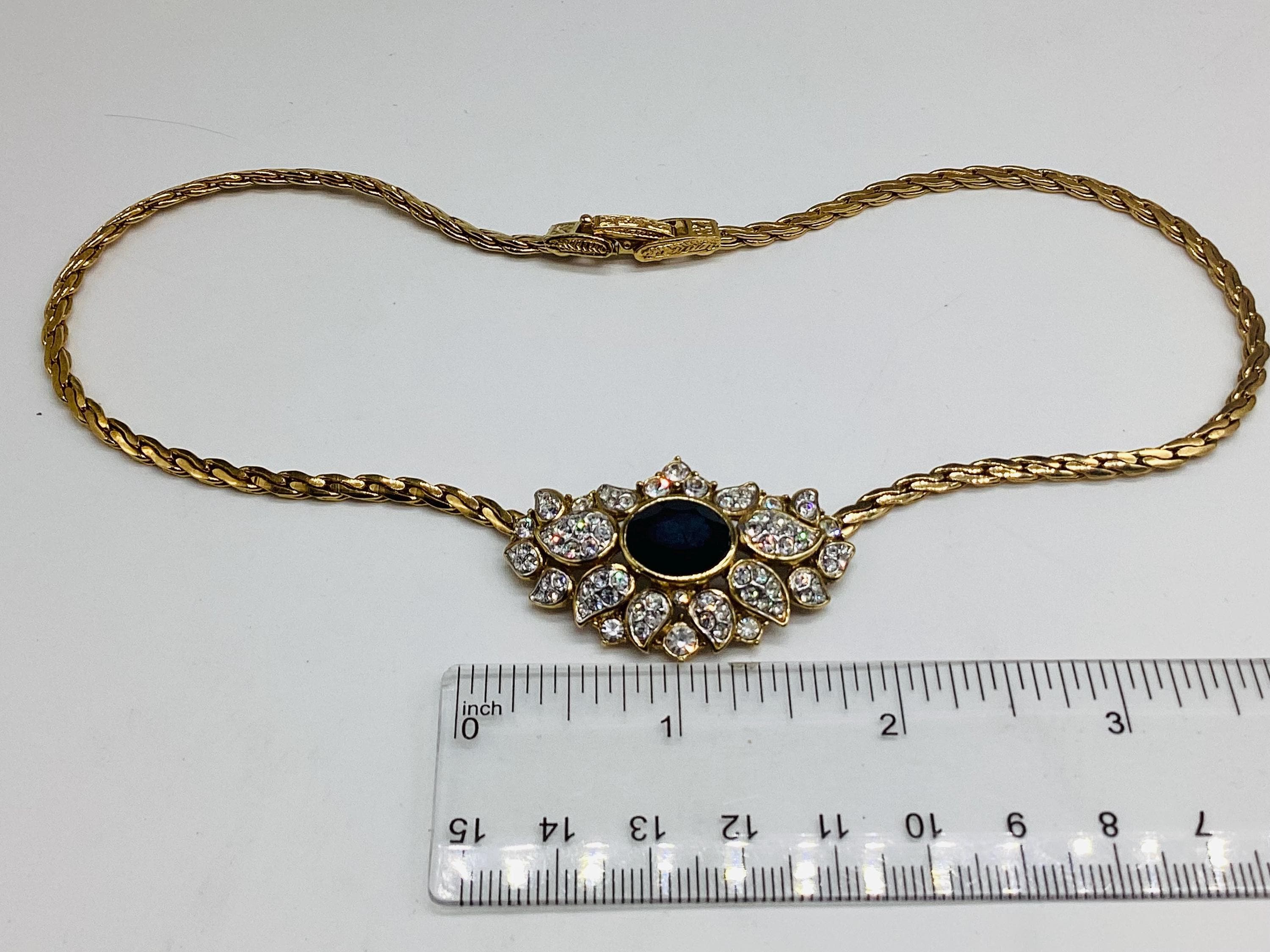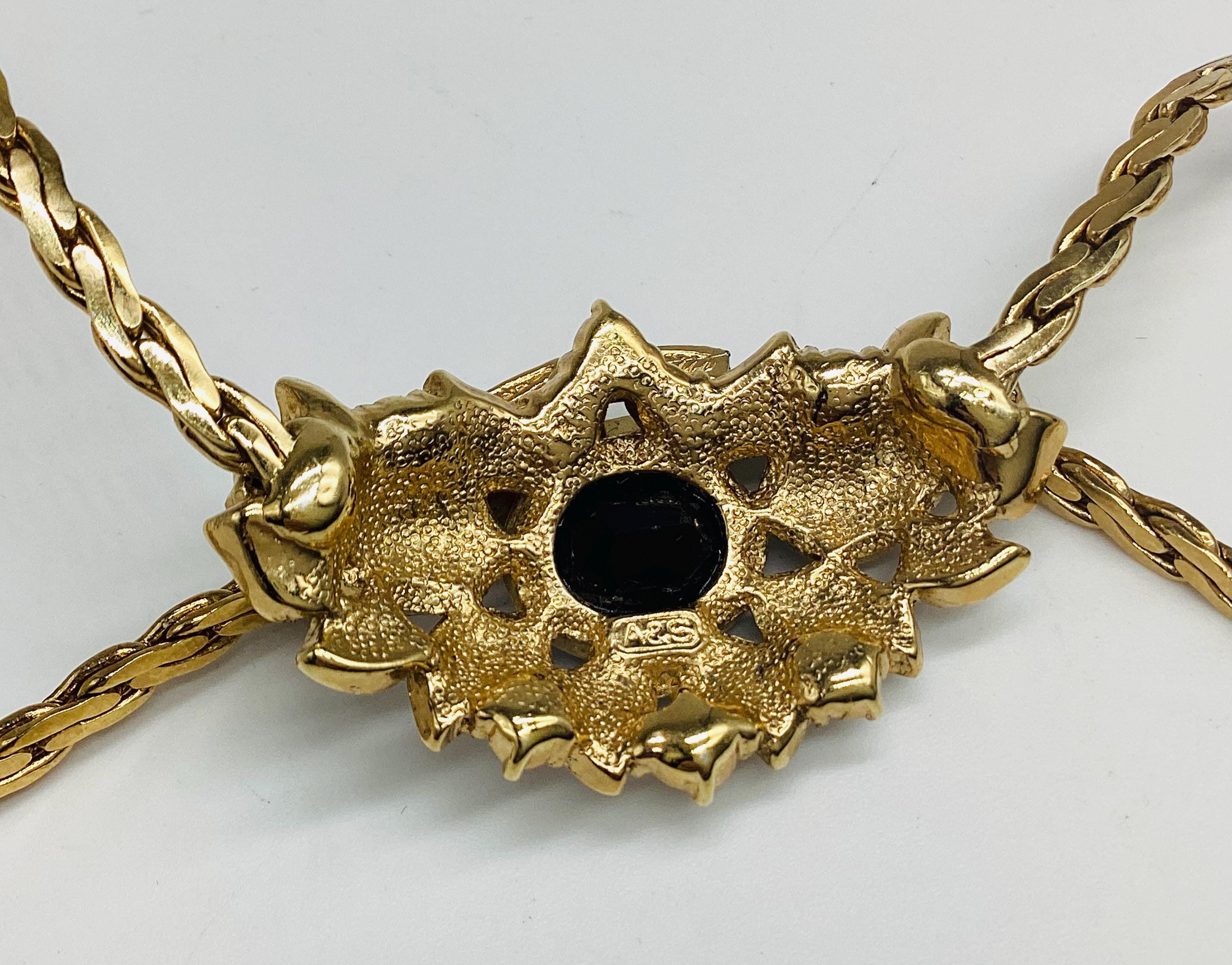 Fabulous signed Attwood and Sawyer gem set necklace. In super condition with all stones in place and no visible wear to the gold. It has a wonderful sparkle which I have tried to show in the photographs and video A great collectable piece.