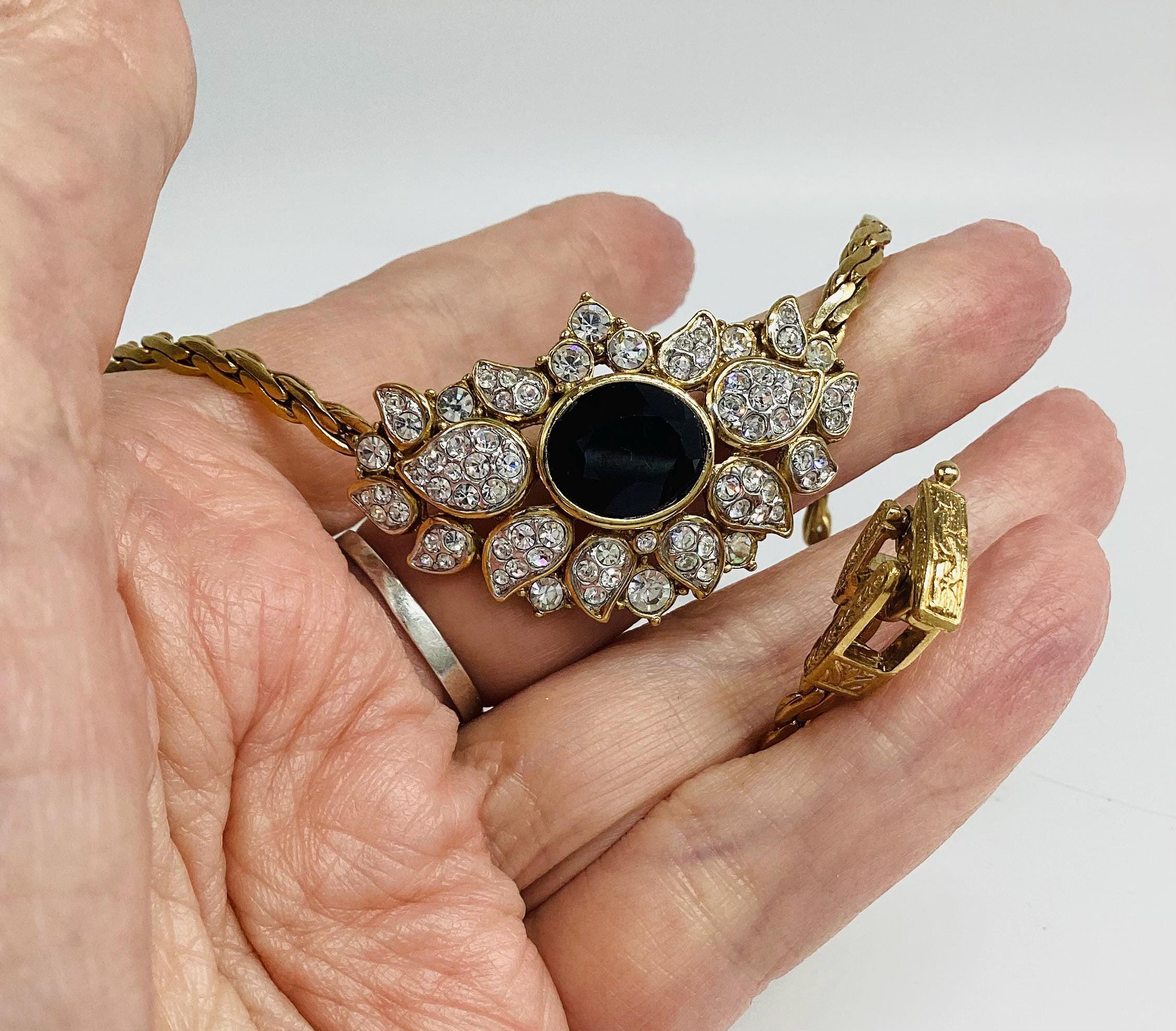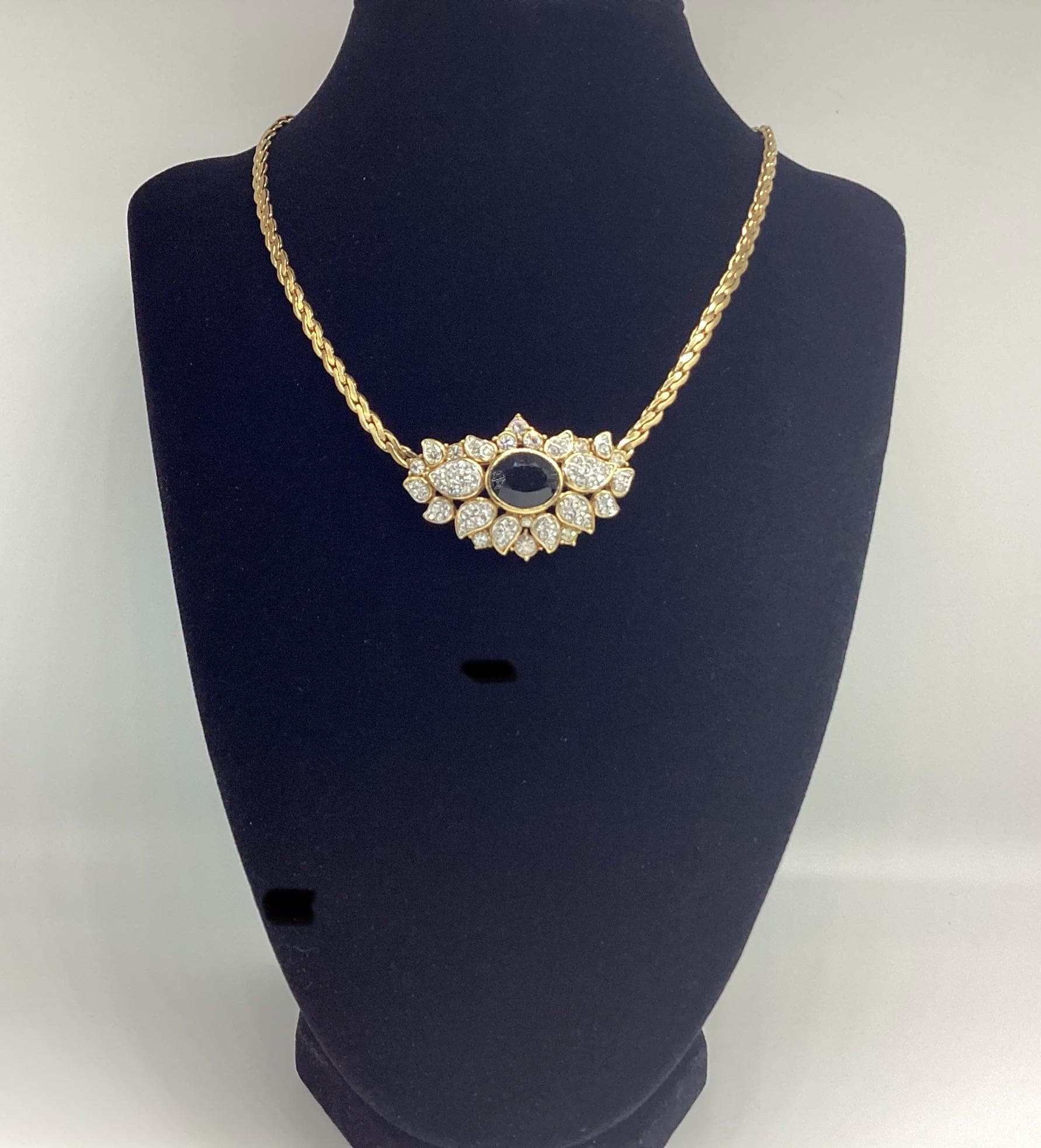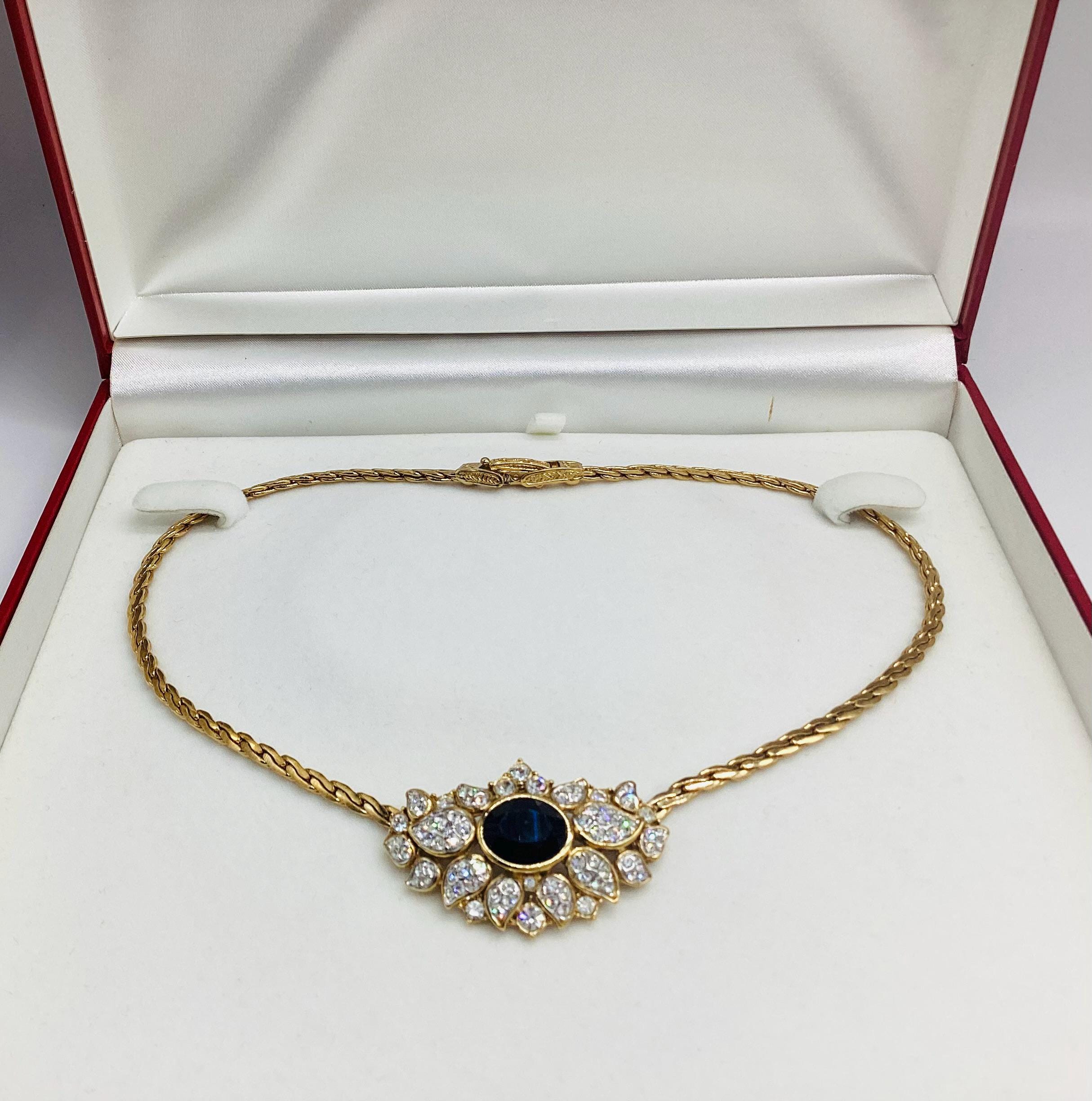 Fabulous signed Attwood and Sawyer gem set necklace. In super condition with all stones in place and no visible wear to the gold. It has a wonderful sparkle which I have tried to show in the photographs and video A great collectable piece.