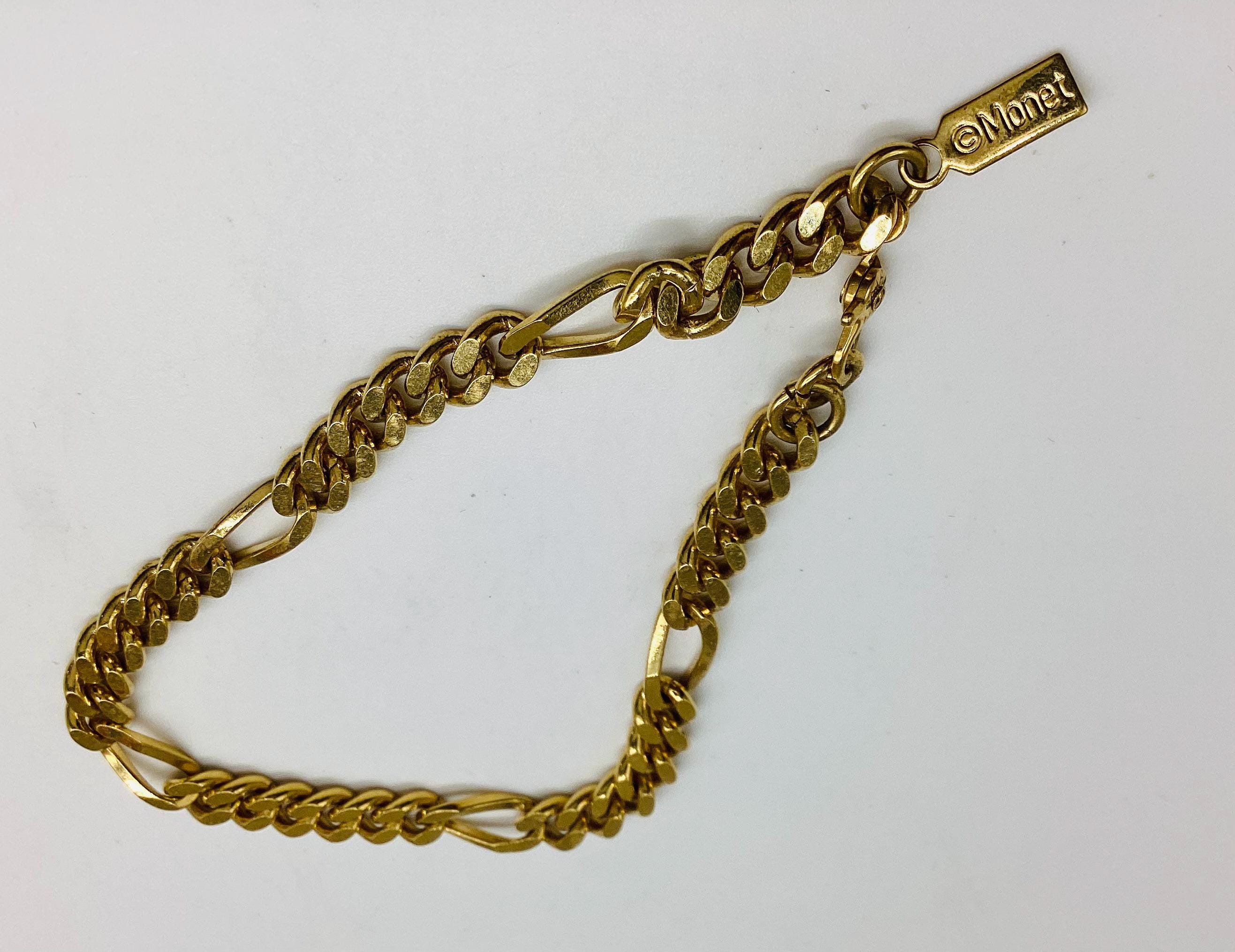 This piece is signed © Monet, dating it to the 1960s–1970s, a wonderful era for bold yet wearable costume jewellery. The links have a smooth, fluid movement and a rich gold tone typical of Monet’s high-quality plating.