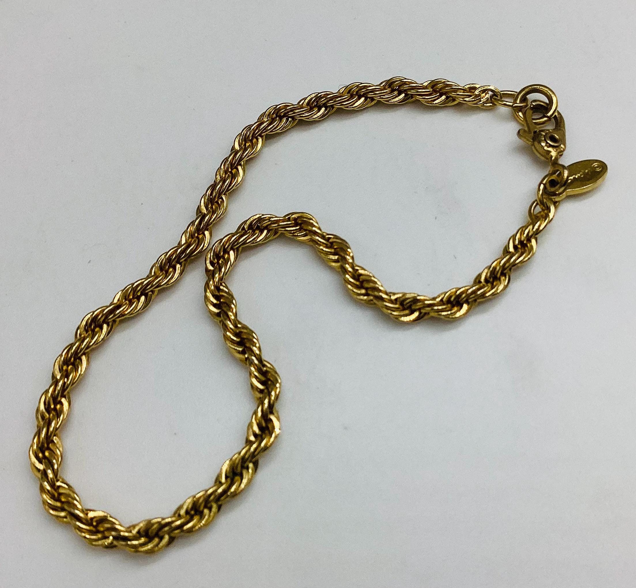 A beautifully elegant vintage Monet rope chain bracelet with a refined twisted design and classic gold tone finish.