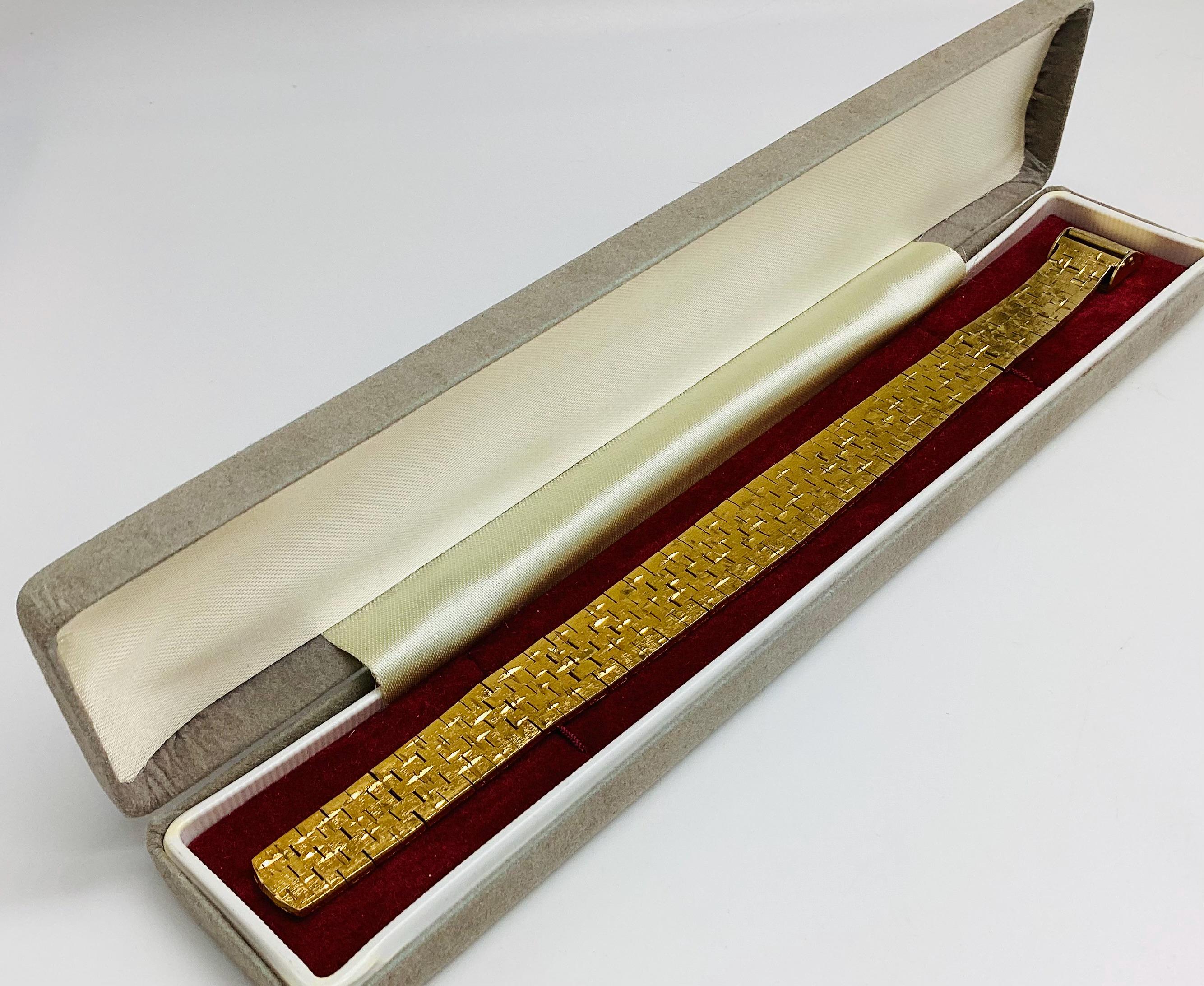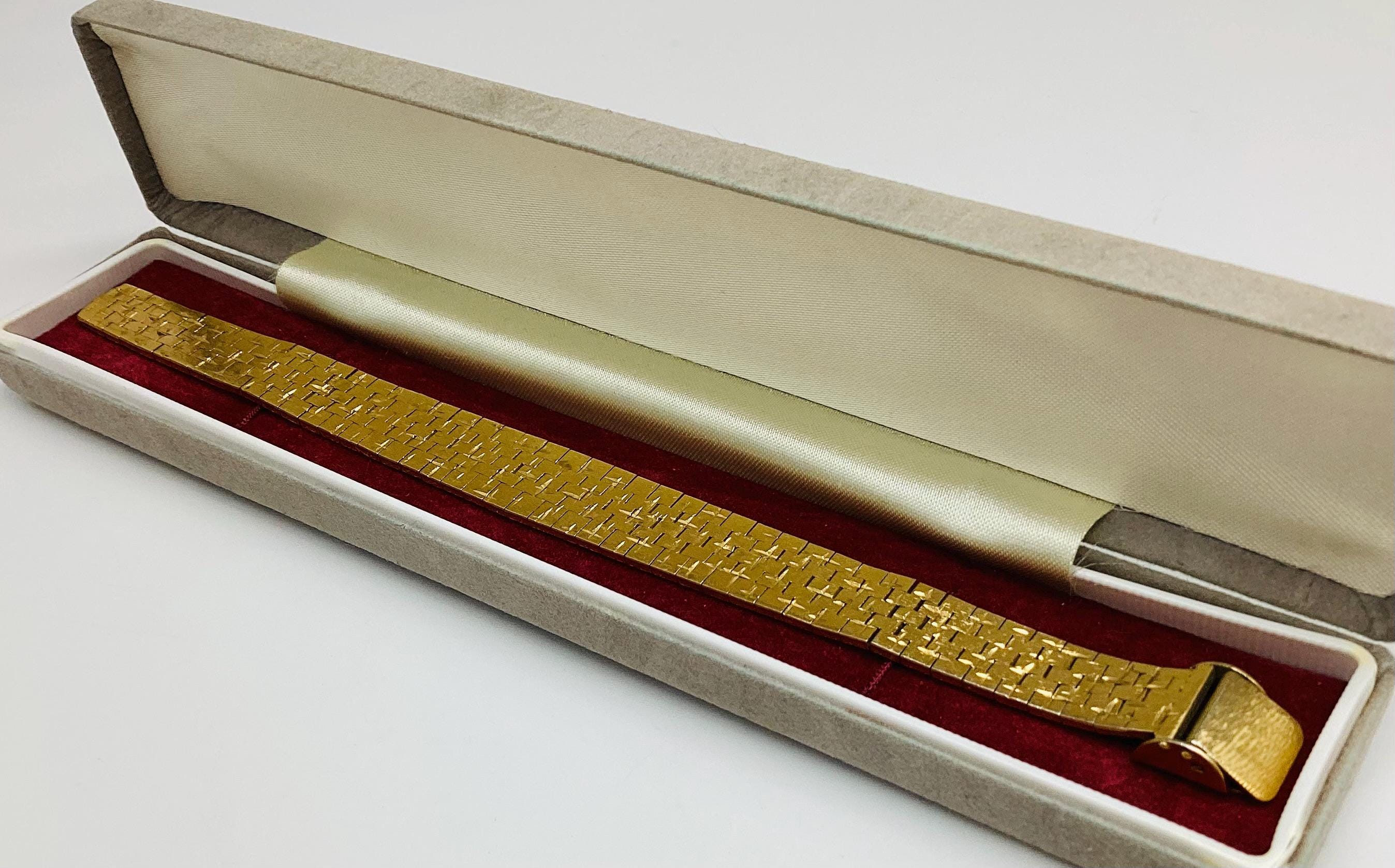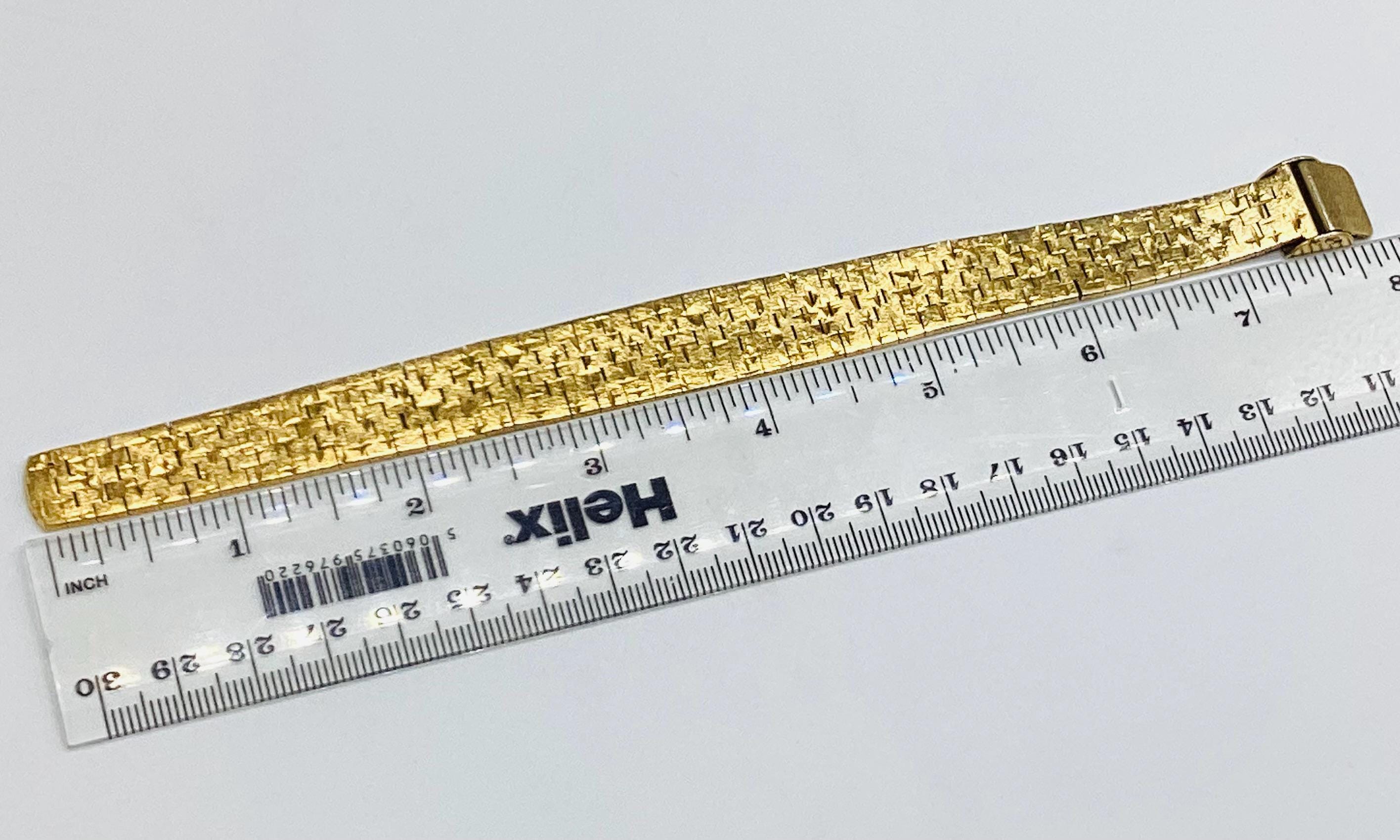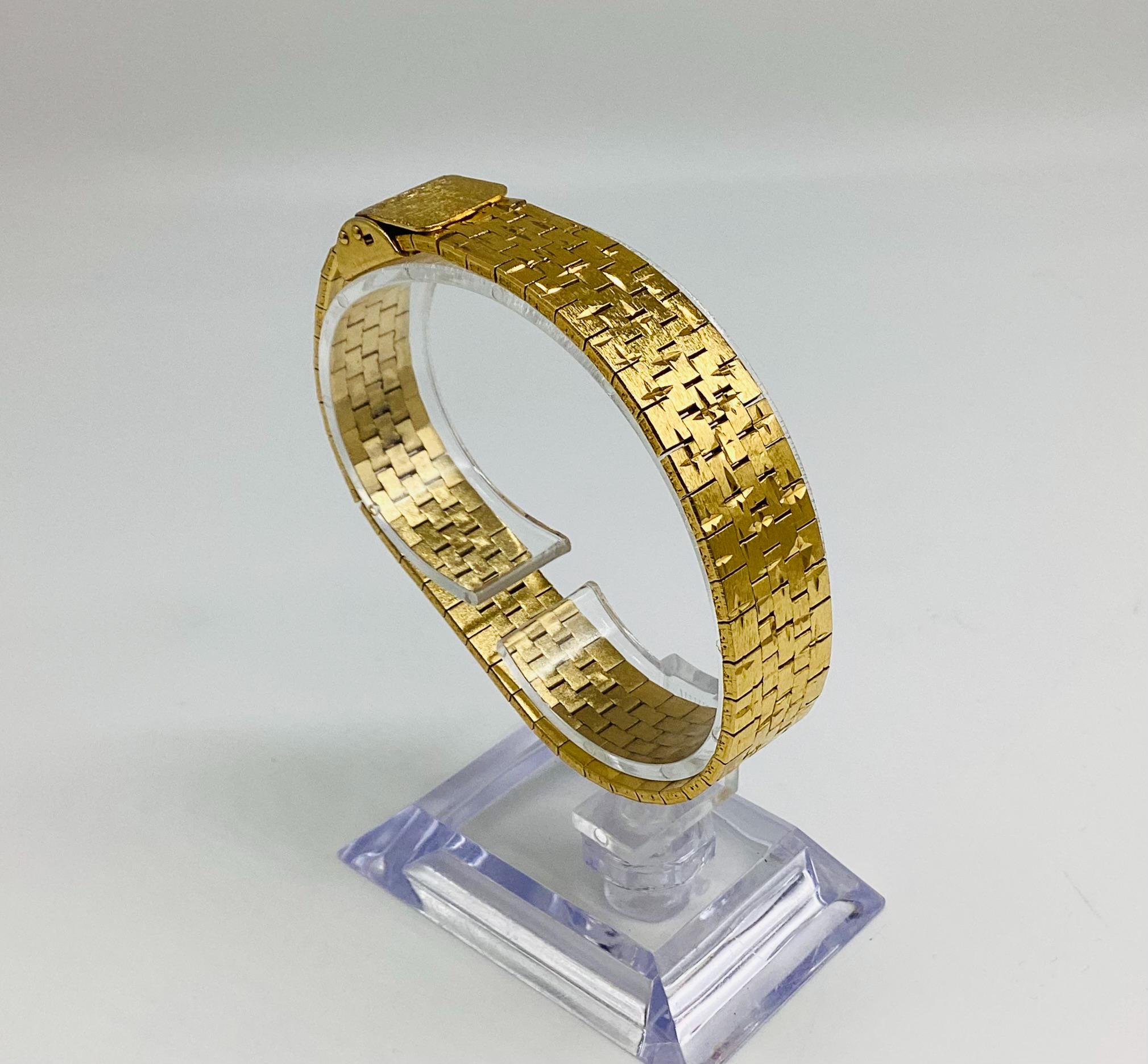 A lovely quality vintage bracelet. Graduated brick brutalist style, beautifully articulate and flexible. In excellent condition. Super belt and buckle clasp, adjustable. Looks good worn alone or with other bangles and chains. Nicely weighted.