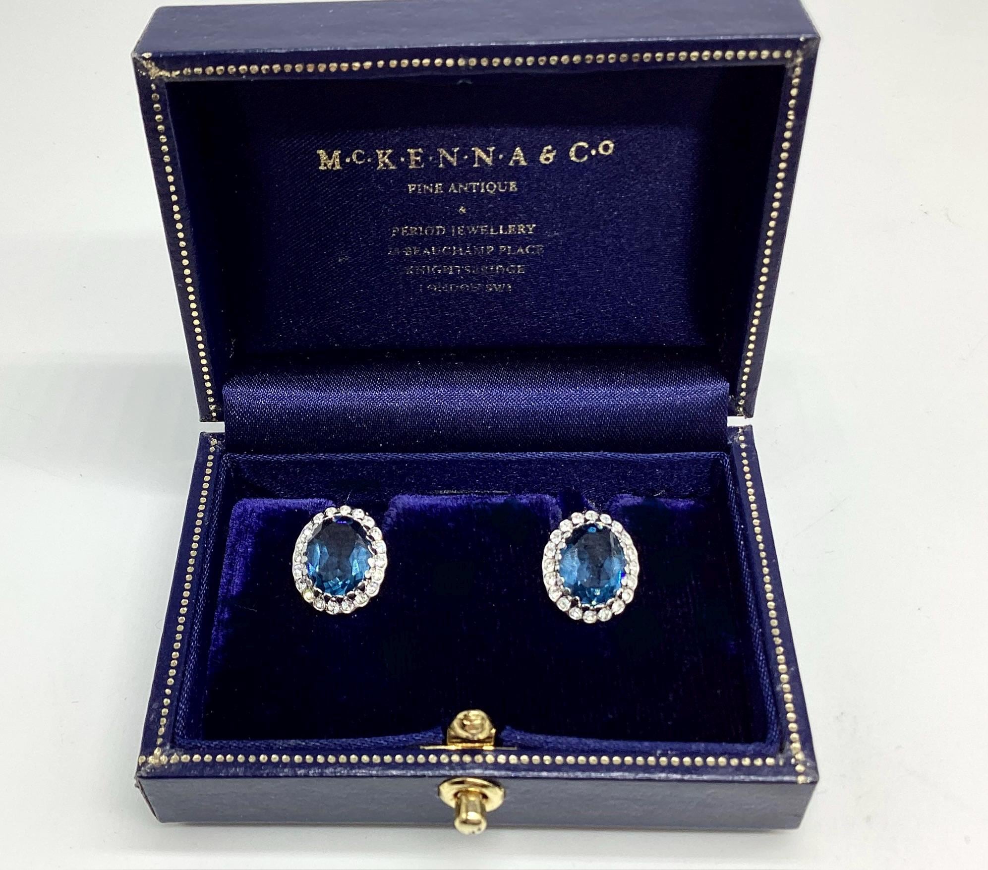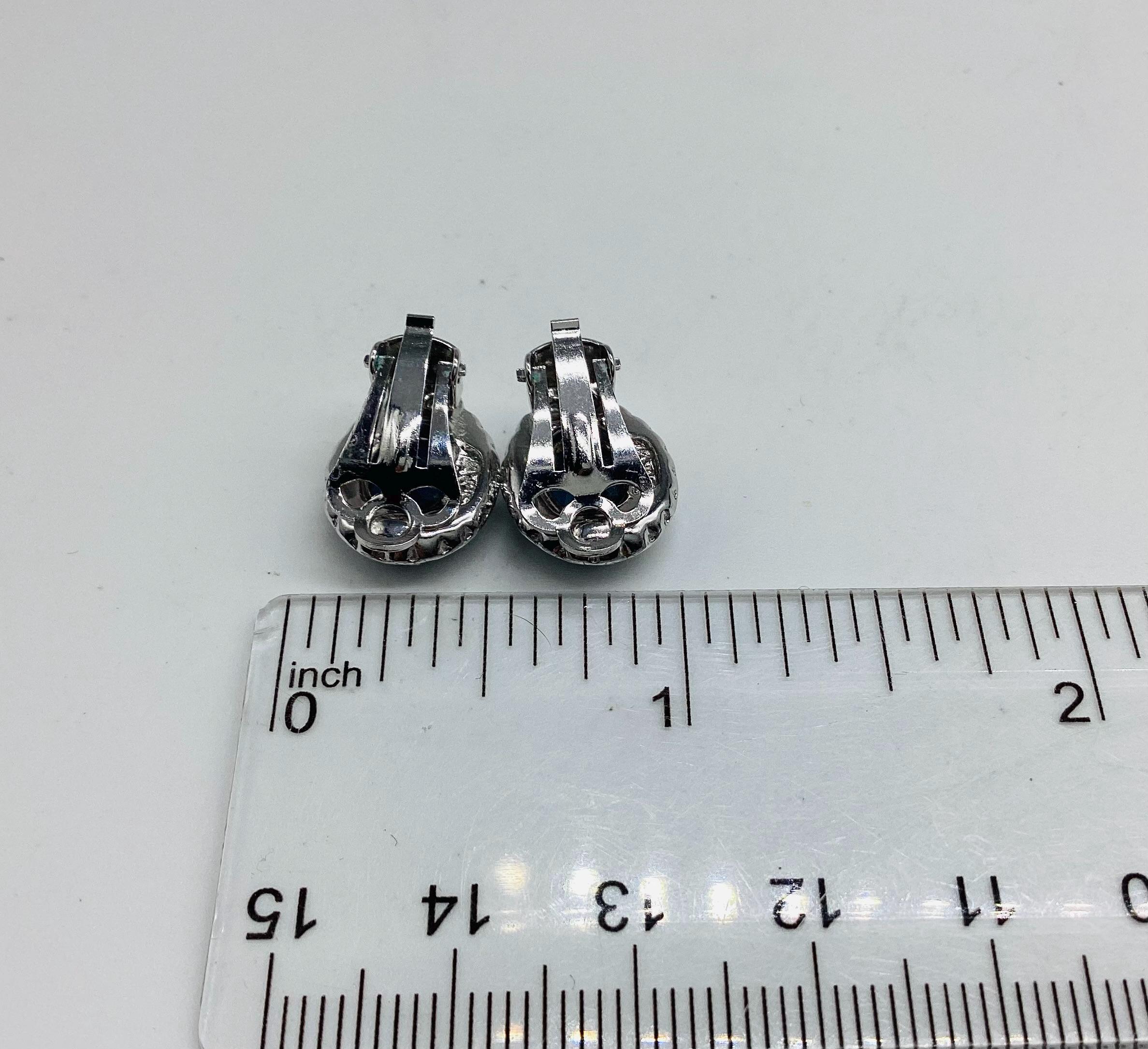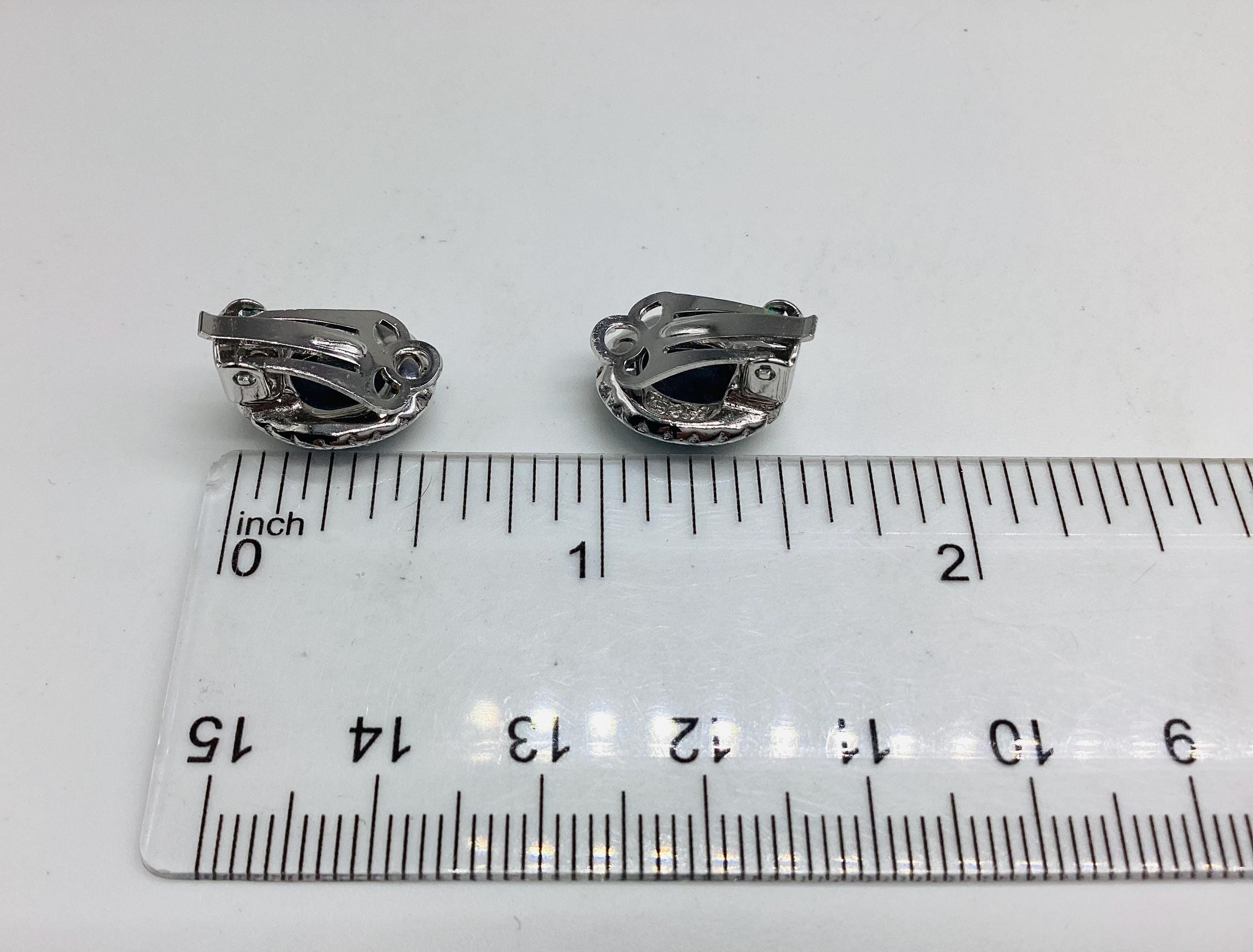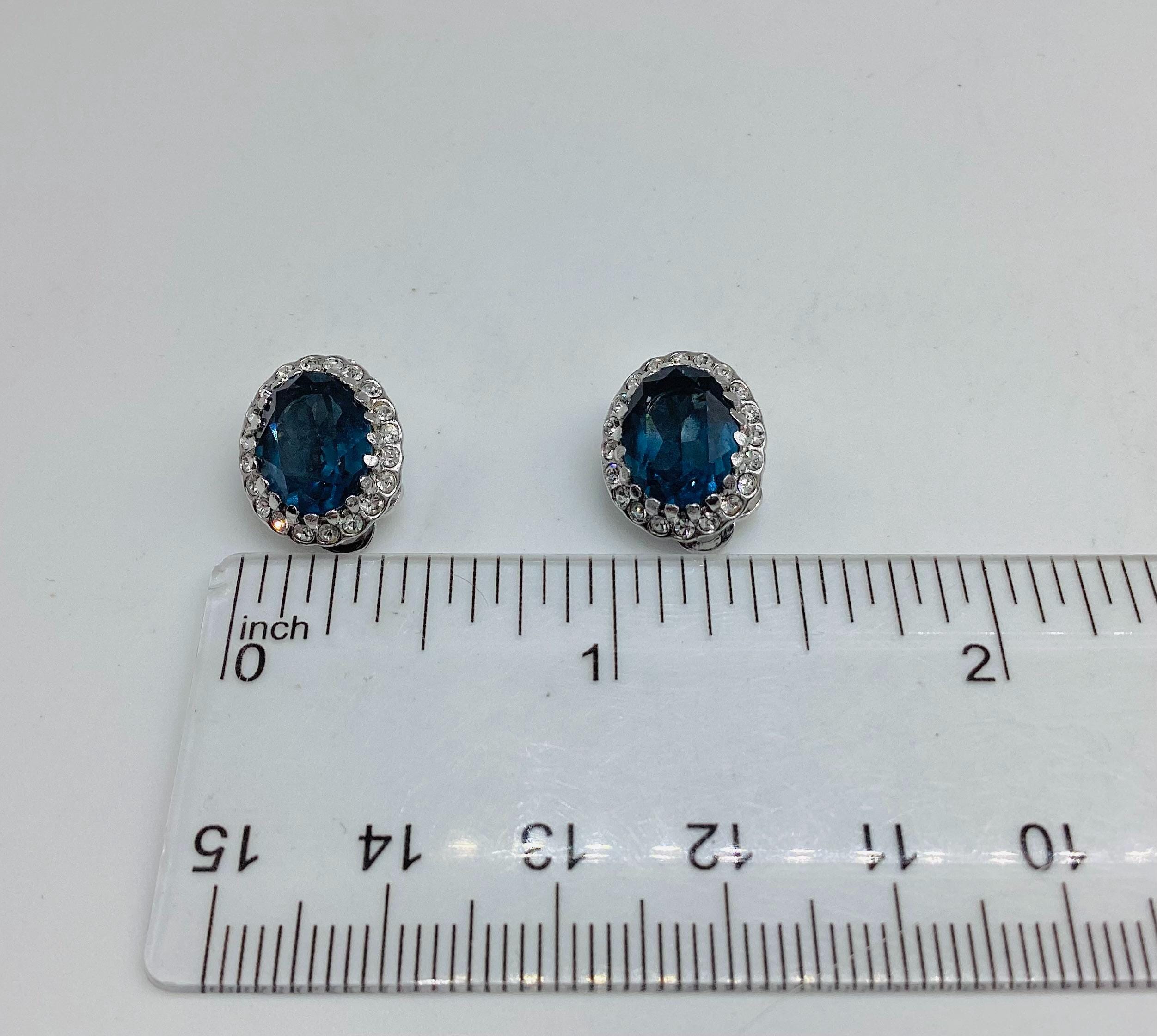 Lovely clip on earrings. Beautiful quality and condition. A sapphire blue faceted central crystal set with a Swarovski surround. I have a particular love for this maker, well known for the superb quality and attention to detail. Founded in Wales in 1956 by Horace Atwood, Atwood and Sawyer produced copies of precious ornaments from the 18th to 19th centuries. Many pieces were made for the television series “Dallas” and “Dynasty”, as well as exclusive compositions for the beauty contest “Miss World”. The firm produced high-end imitation jewellery and sold their decorations at prestigious retail outlets across the UK, Europe and other countries around the world, as well as on cruise ships and Airliners. A special recognition was given to their historical collection of exact copies of the jewellery of the Duchess of Windsor.